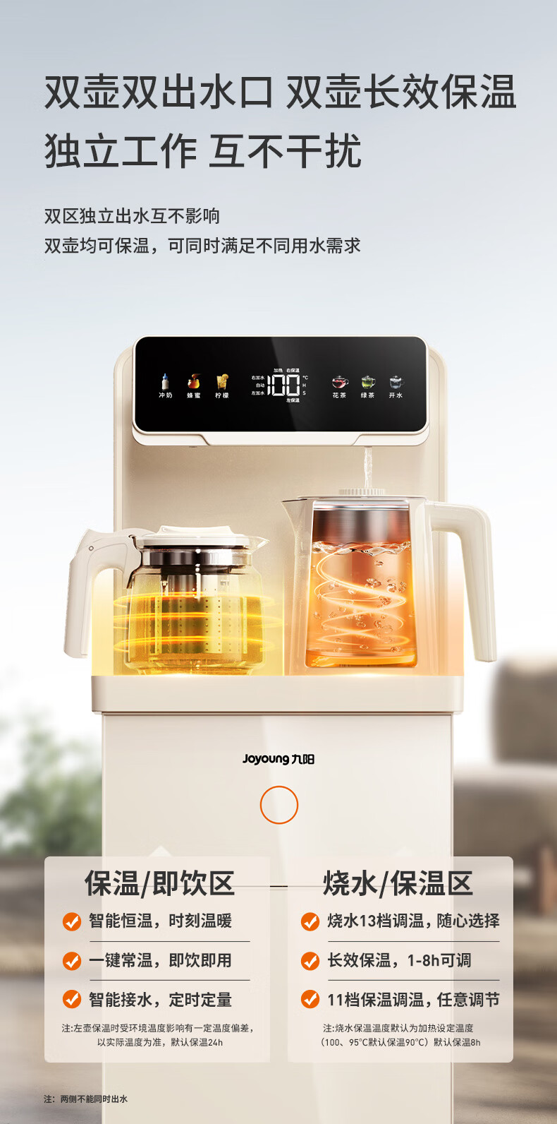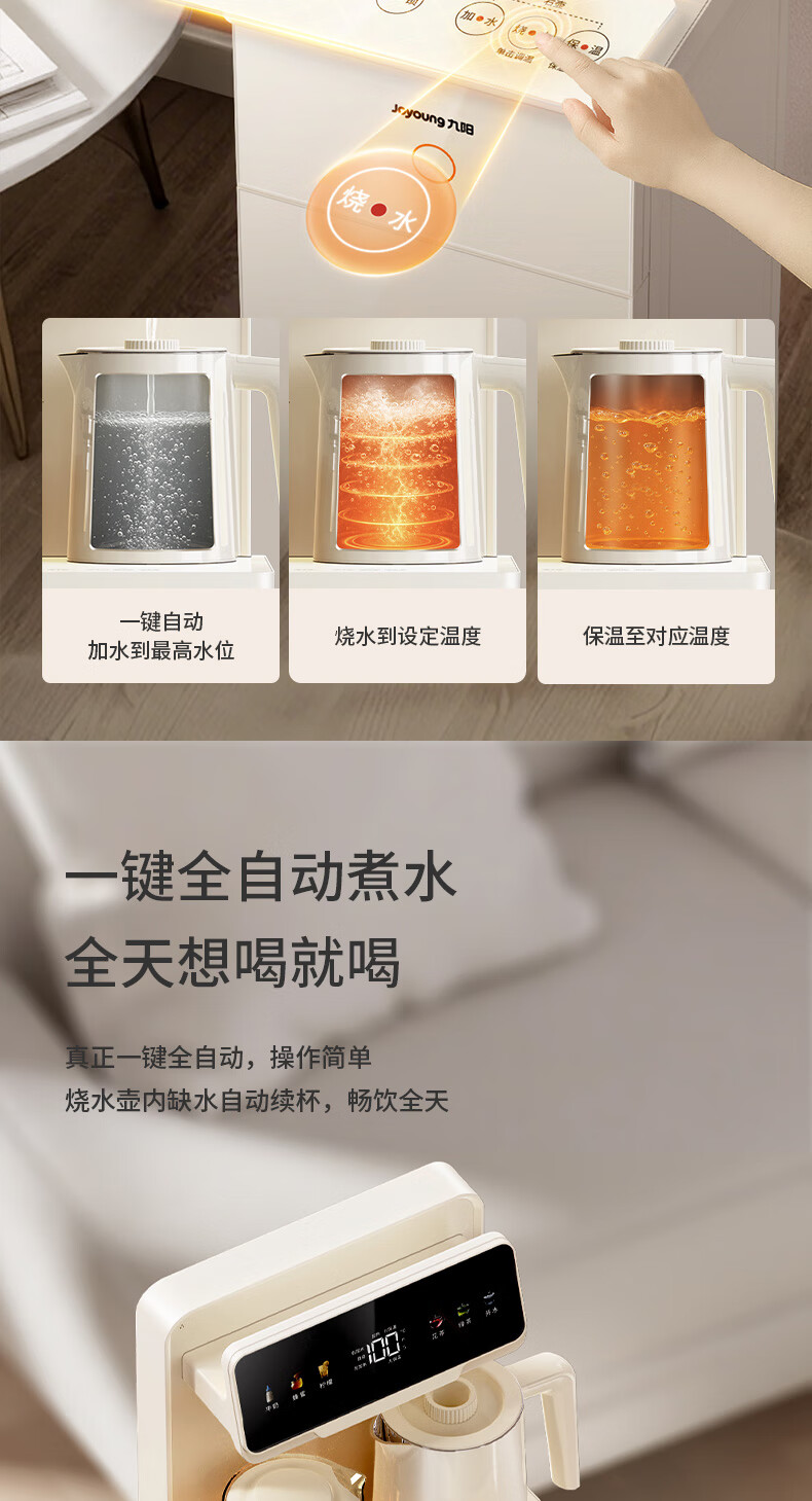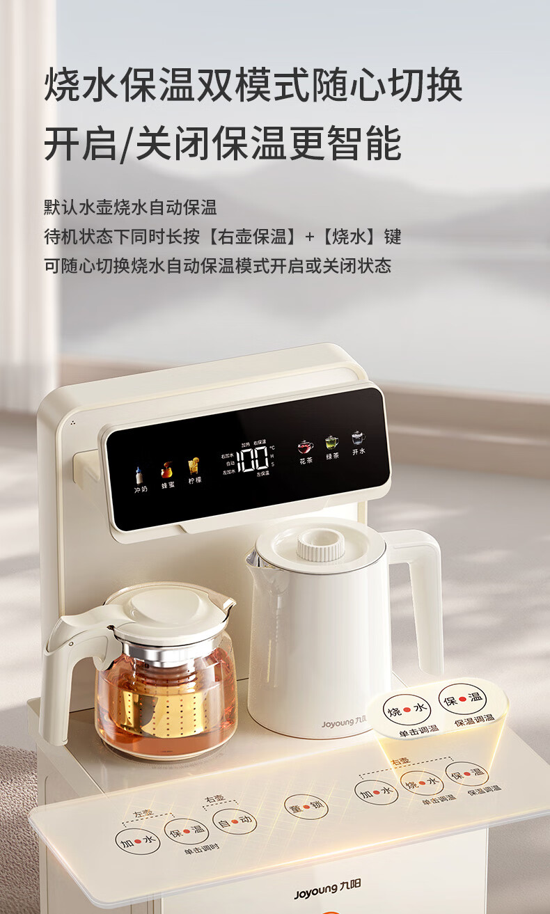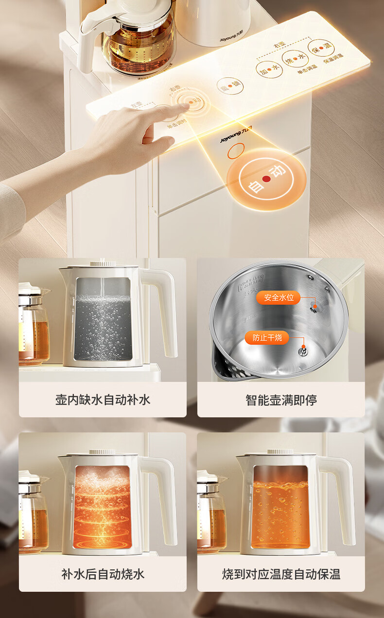 九阳茶吧机防溢水防干烧智能家用多功能茶吧柜饮水机一体316L不锈钢内胆烧水壶【政府补贴】JYW-AH1235 【防溢出丨防干烧丨自动续水煮水丨双出水】 温热型