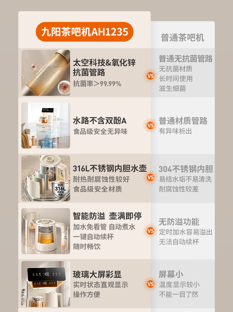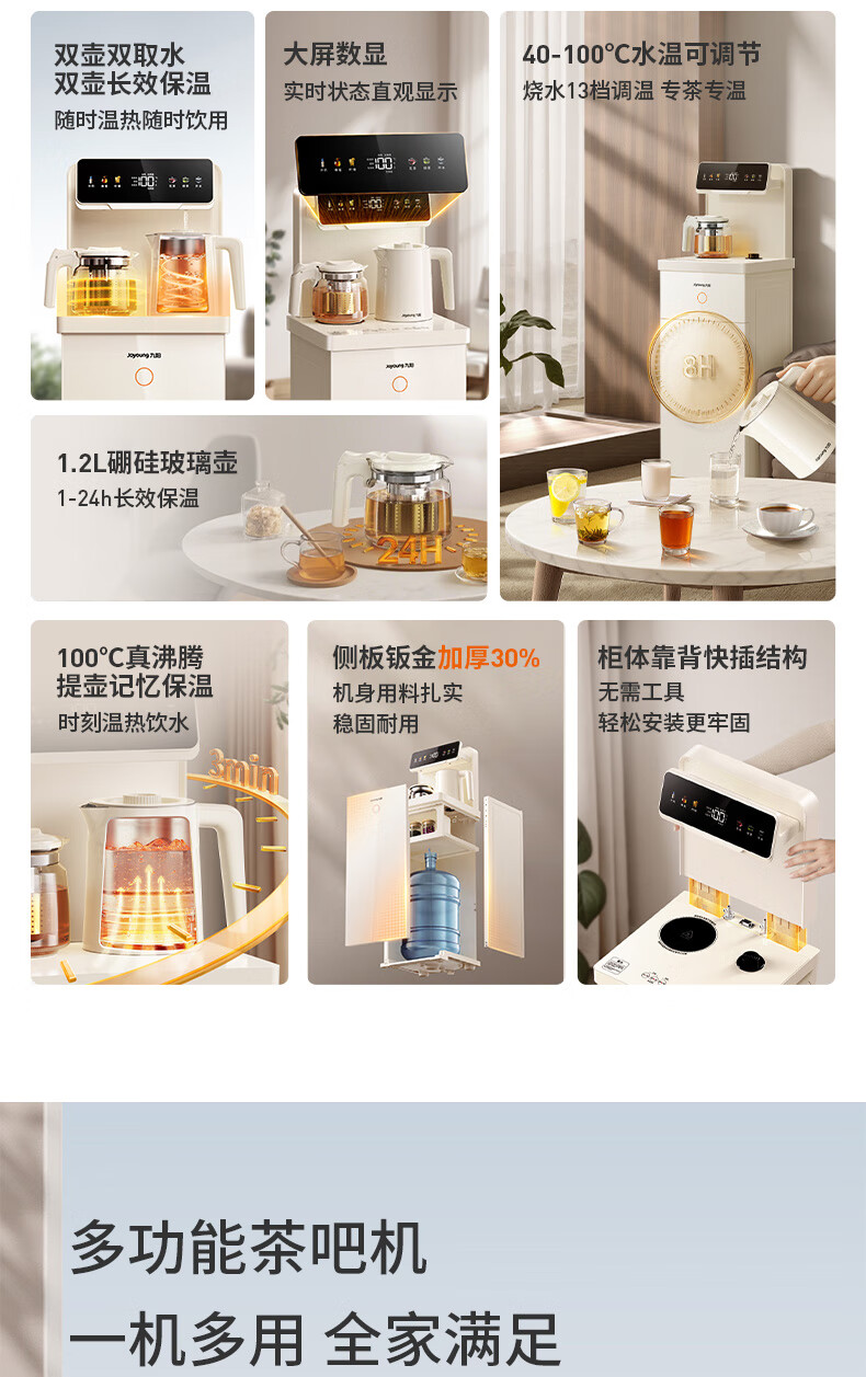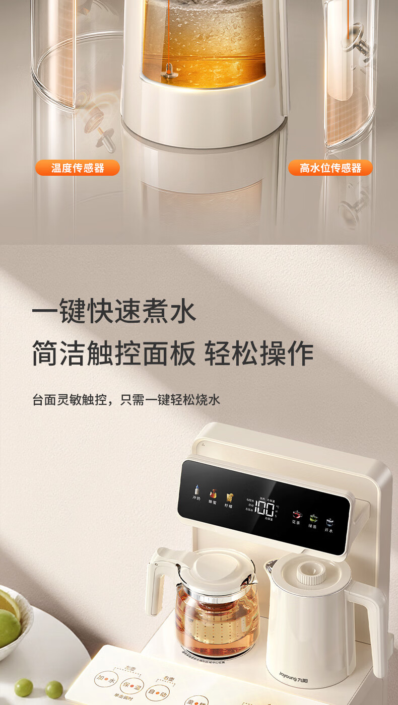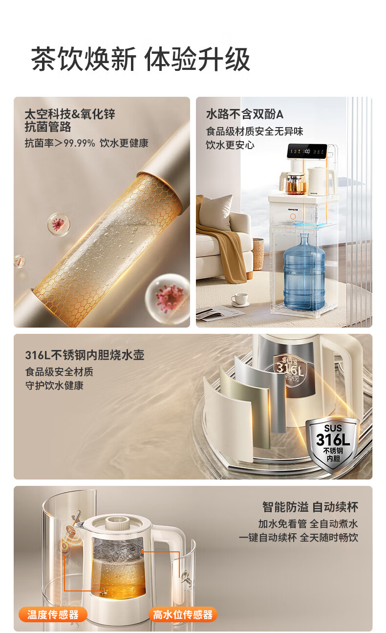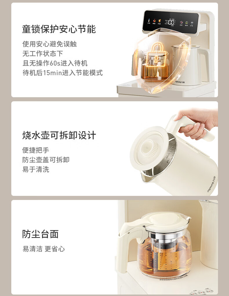 九阳茶吧机防溢水防干烧智能家用多功能茶吧柜饮水机一体316L不锈钢内胆烧水壶【政府补贴】JYW-AH1235 【防溢出丨防干烧丨自动续水煮水丨双出水】 温热型