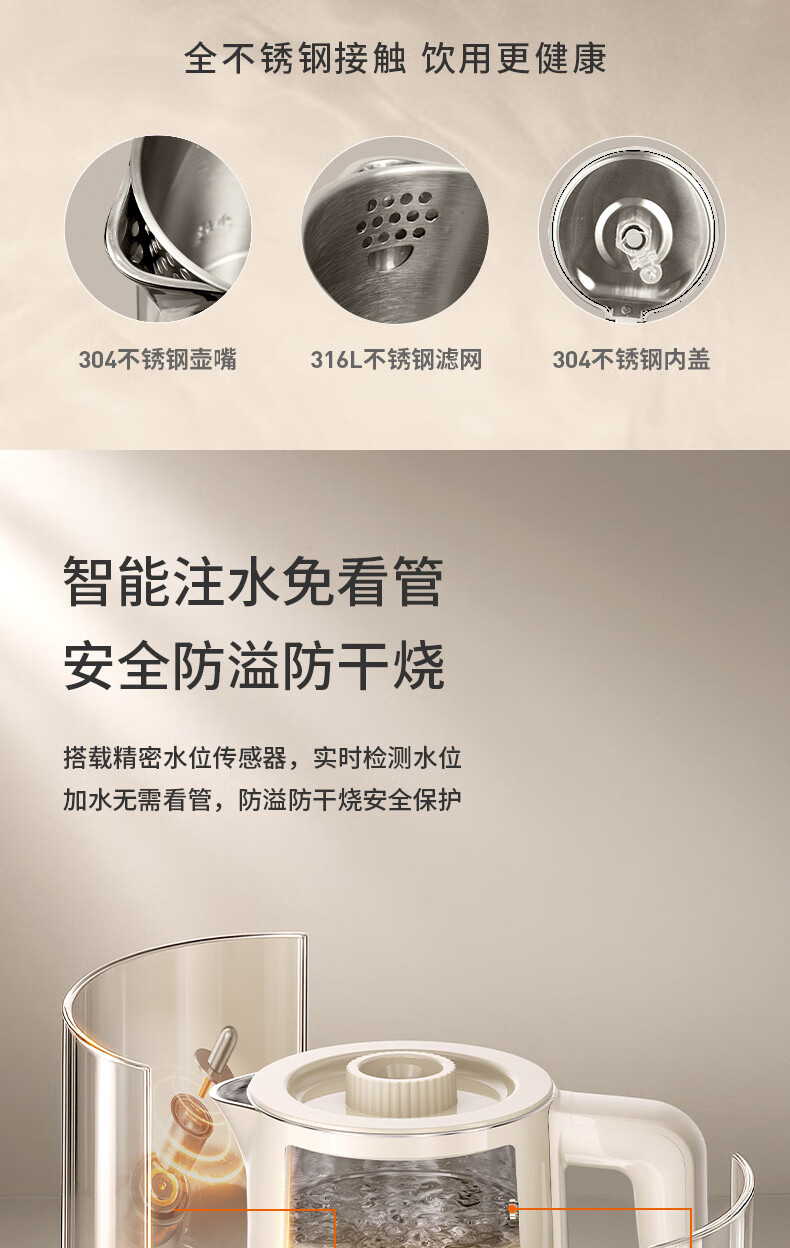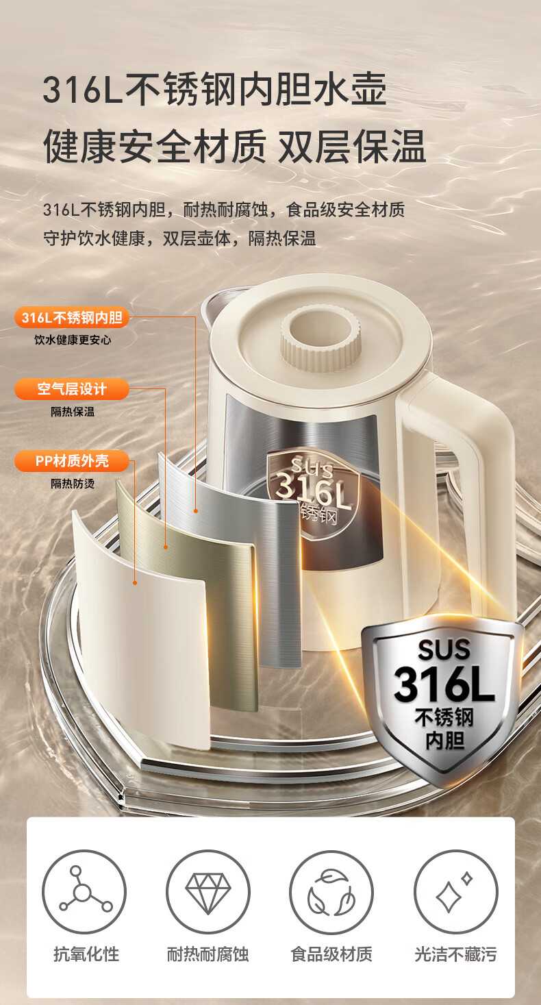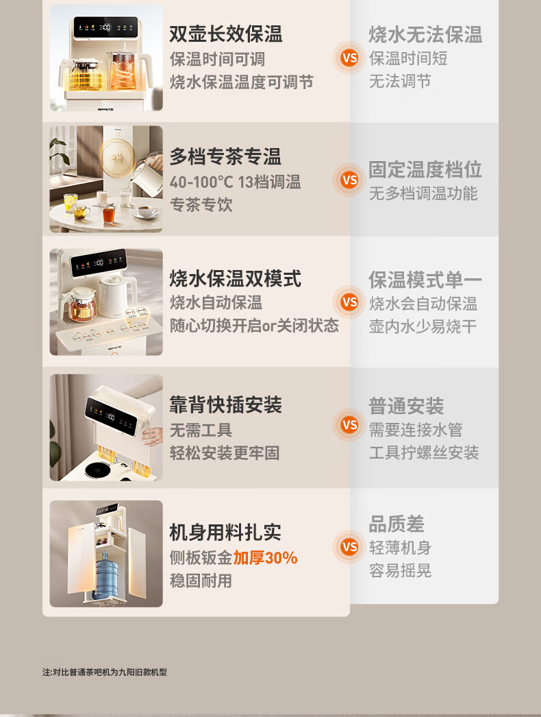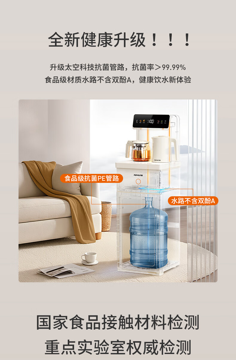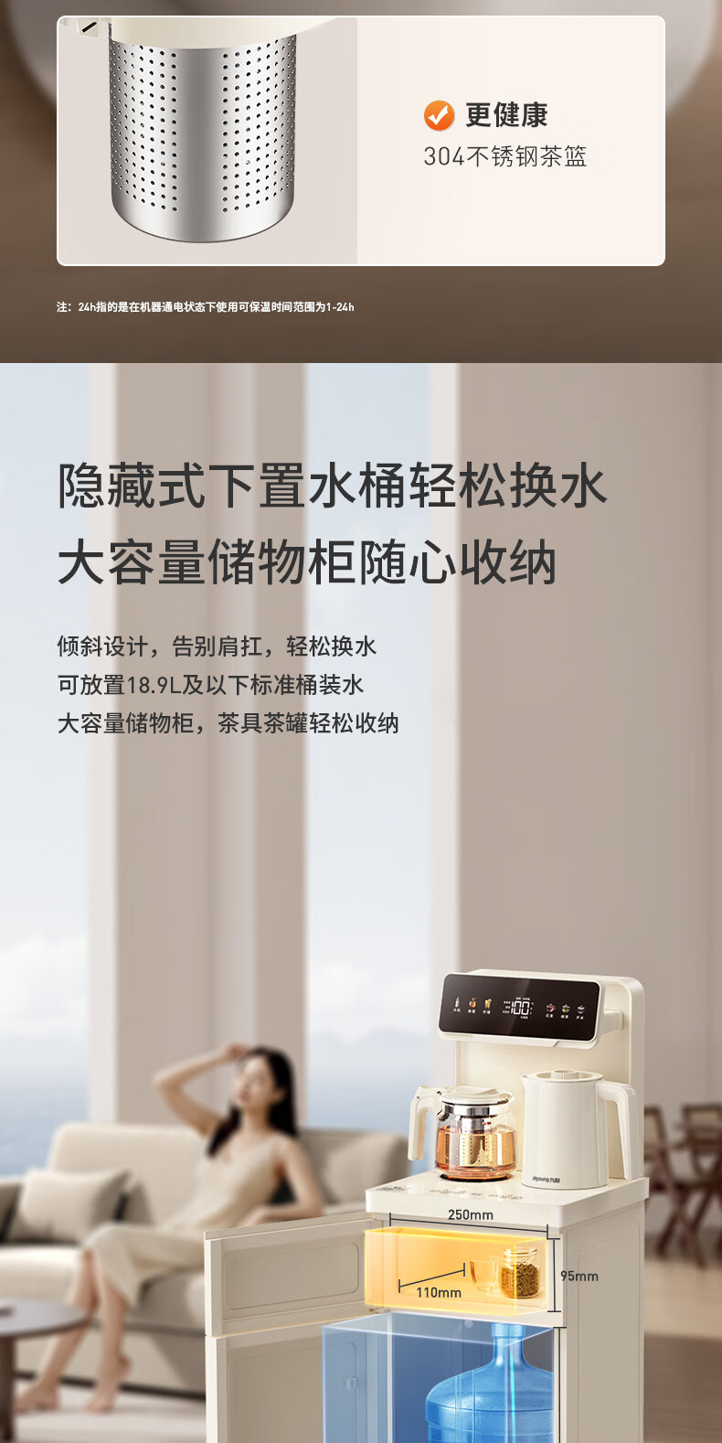 九阳茶吧机防溢水防干烧智能家用多功能茶吧柜饮水机一体316L不锈钢内胆烧水壶【政府补贴】JYW-AH1235 【防溢出丨防干烧丨自动续水煮水丨双出水】 温热型