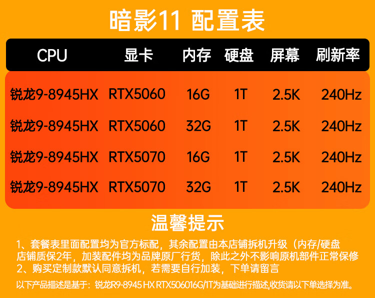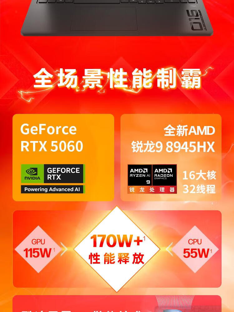 惠普暗影精灵11锐龙版AMD 补贴 新品16寸 高刷新满功耗独显RTX5060/5070高端电竞游戏本笔记本电脑 R9-8945HX 5060 2.5K 240HZ 1TB | 高速硬盘