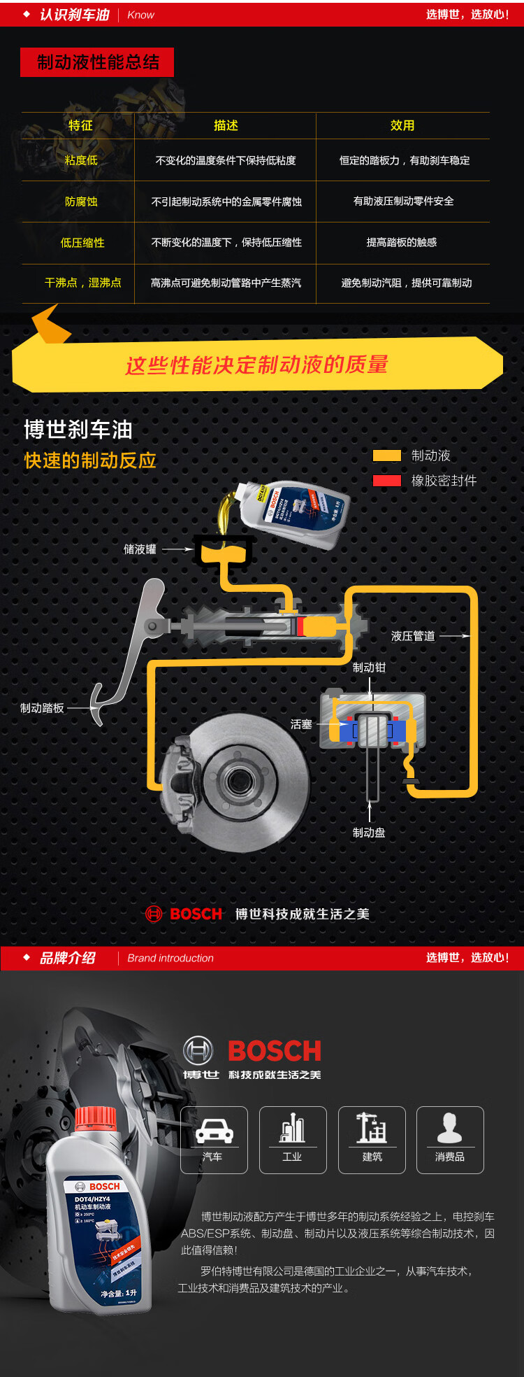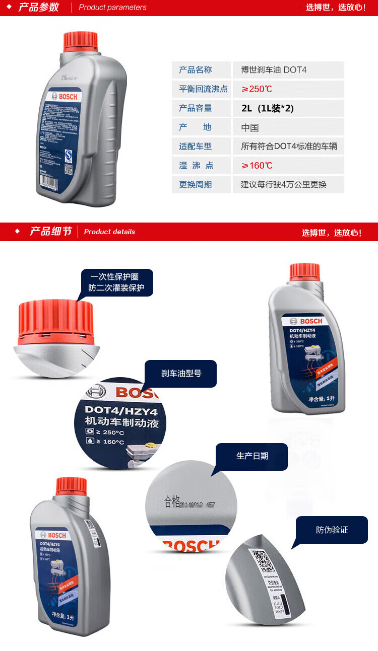 博世(BOSCH)DOT4 刹车油/制动液/离合器油 通用型2升装 (1L*2)