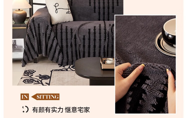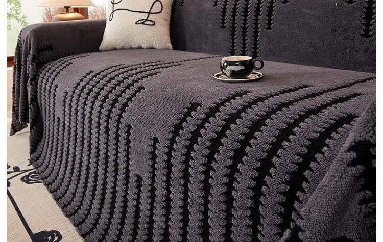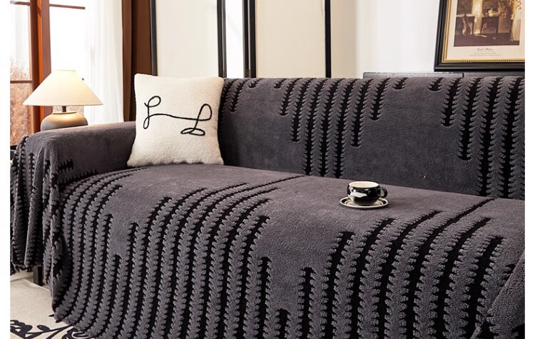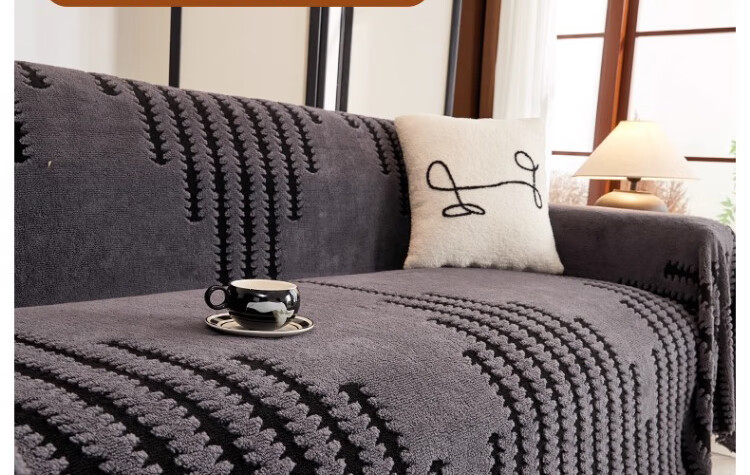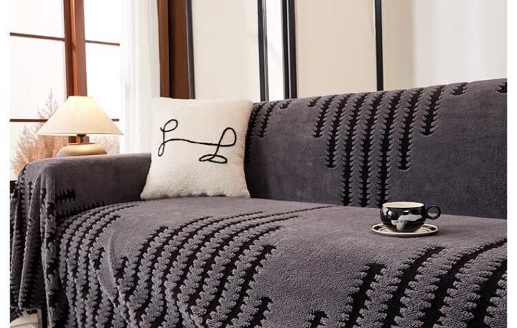 无印良品【超厚实】沙发盖布巾2025新款防滑防猫抓坐垫高级感秋冬毛绒套罩 【超厚实】节节大麦-夜空黑【加厚舒棉绒】 180*130cm 【小单人位适用】