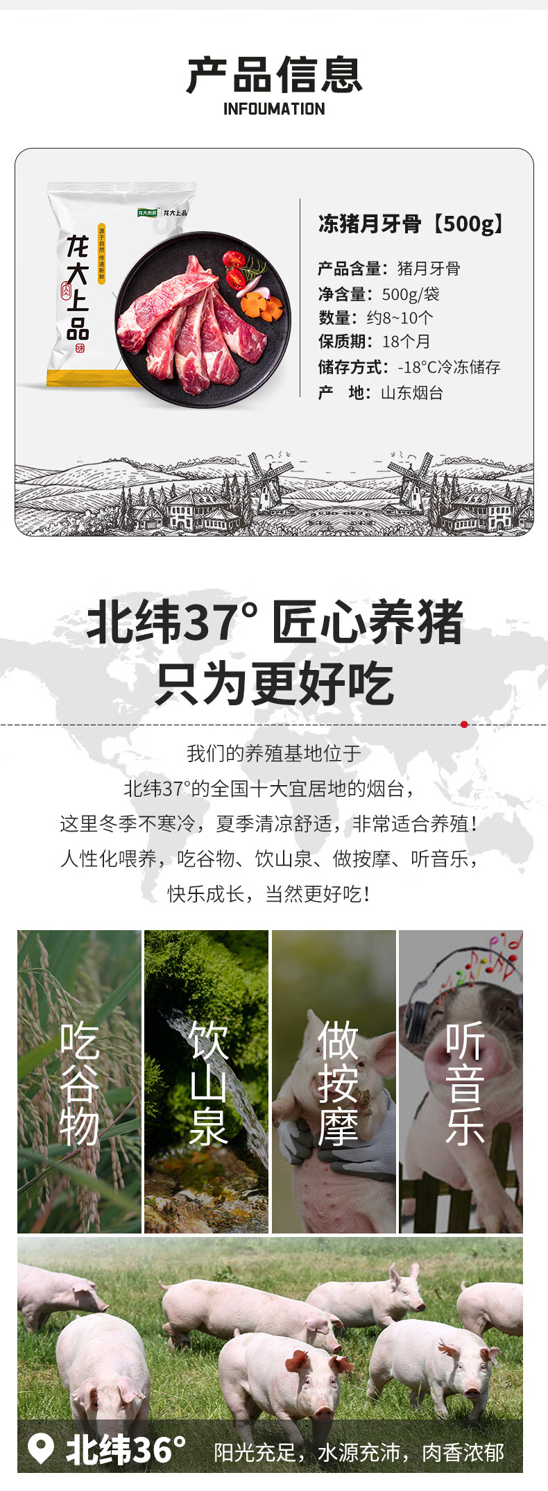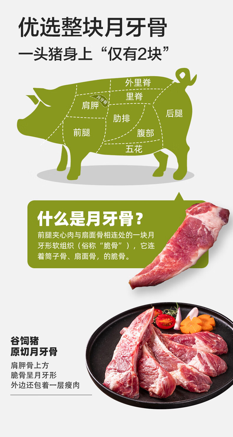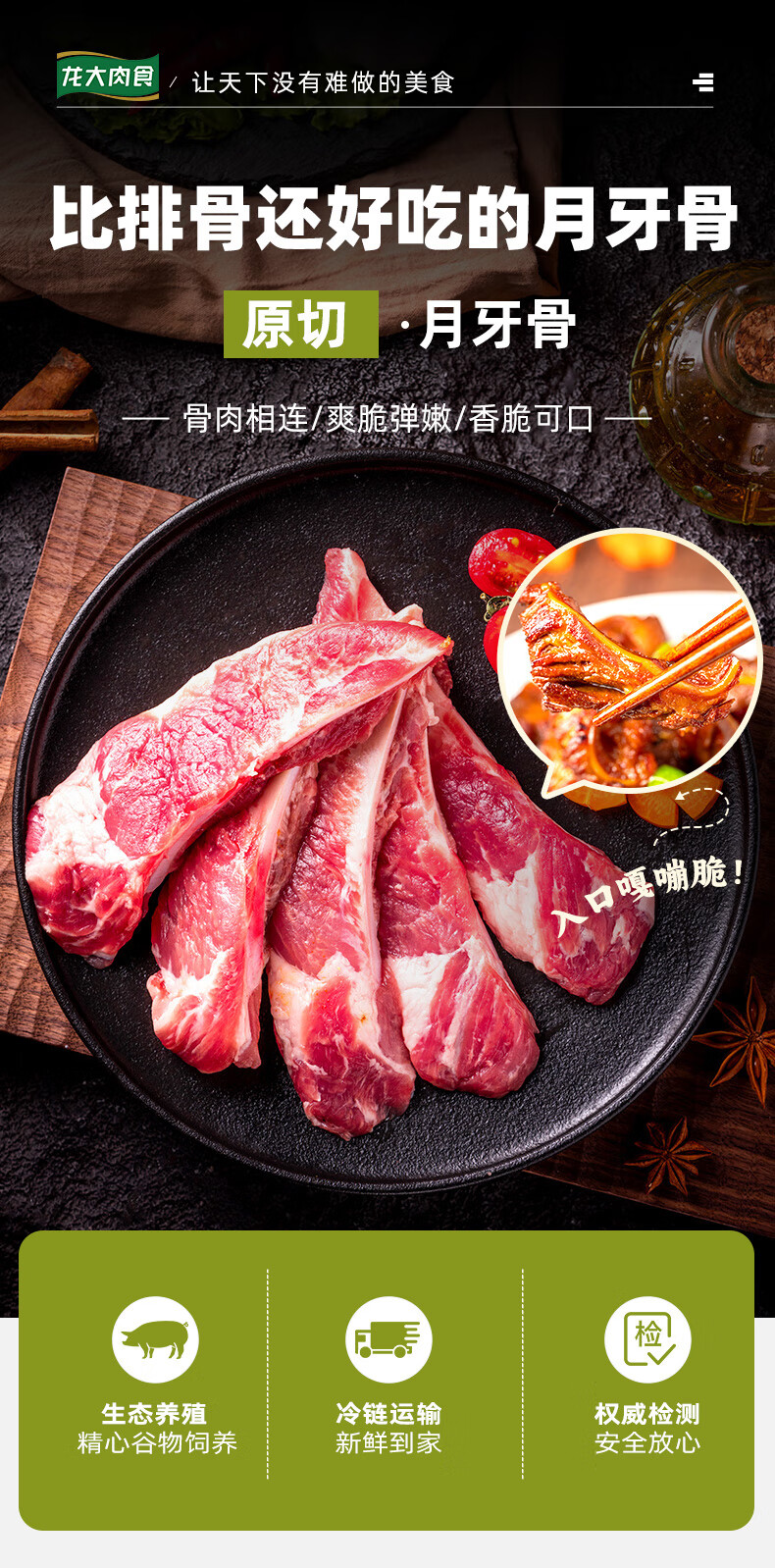 龙大肉食猪月牙骨1斤 带肉月亮骨 猪脆骨软骨 烤肉烧烤煲汤家常冷冻食材