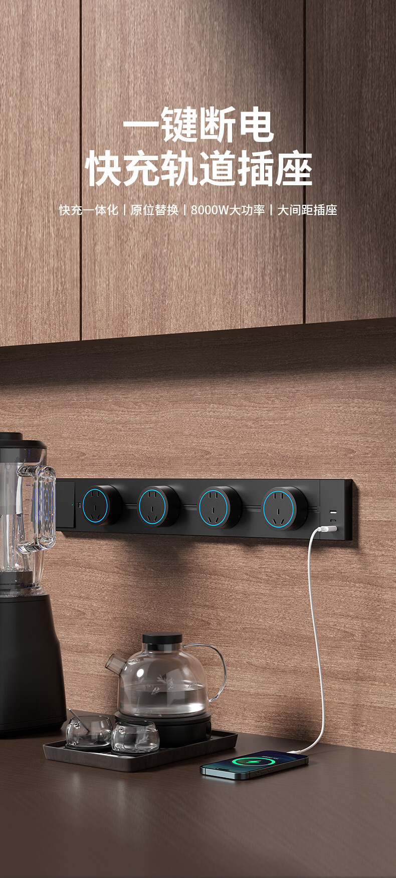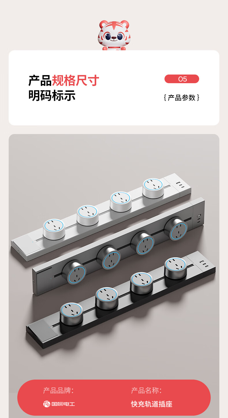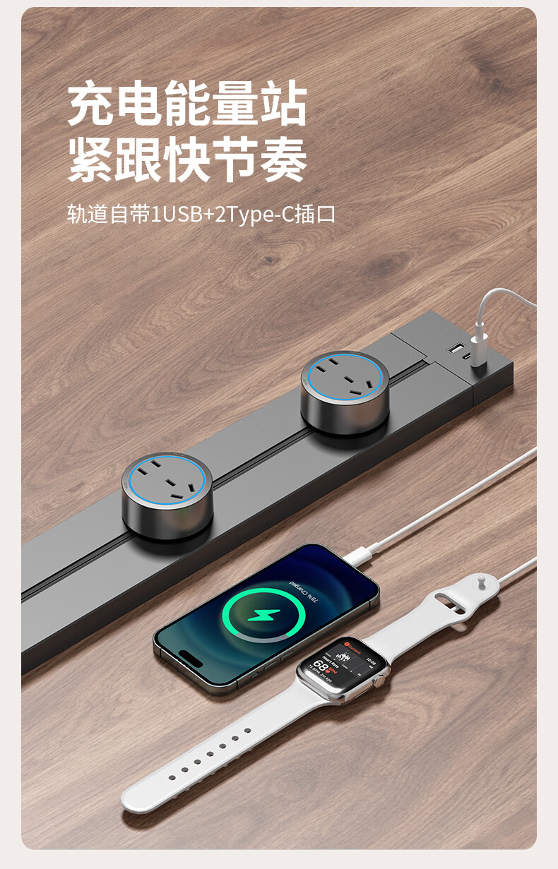 国际电工(FDD)USB一体式轨道插座可移动滑轨多功能排插厨房岛台带开关轨道插板 黑色【带开关U/C一体式轨道插座】 30厘米+2个大五孔