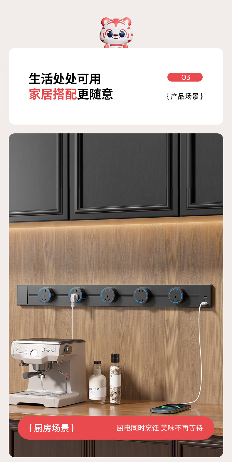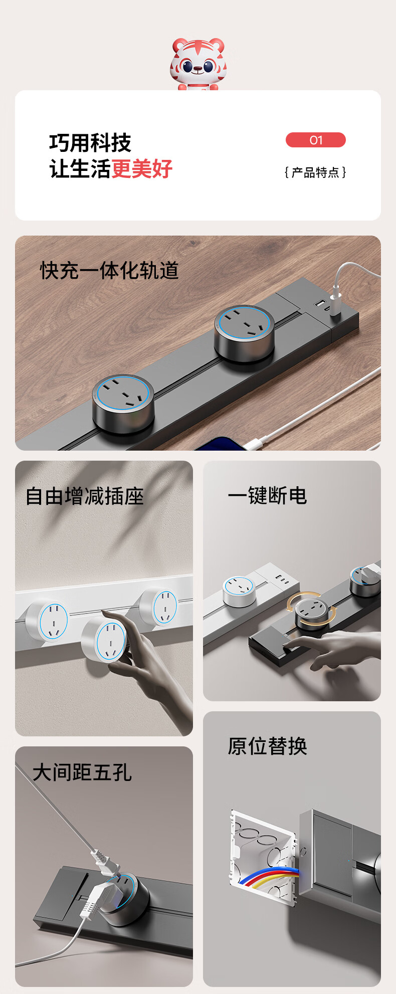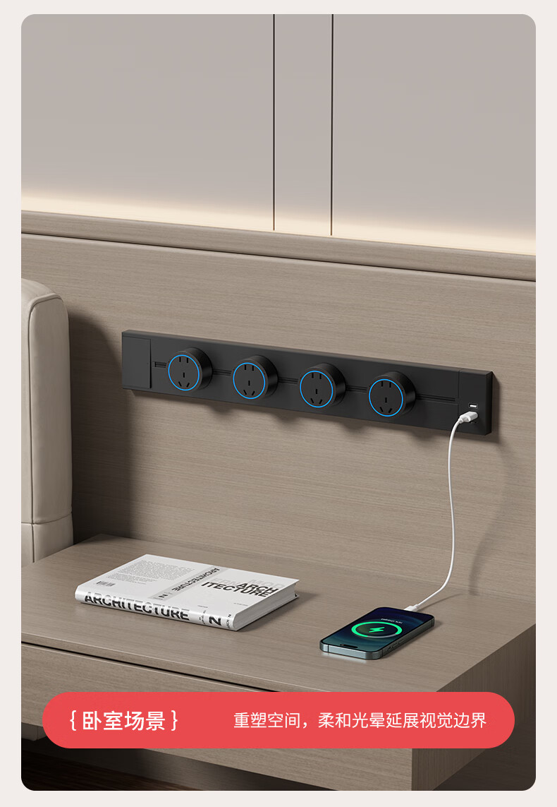 国际电工(FDD)USB一体式轨道插座可移动滑轨多功能排插厨房岛台带开关轨道插板 黑色【带开关U/C一体式轨道插座】 30厘米+2个大五孔