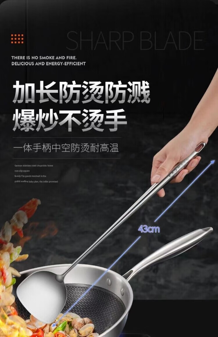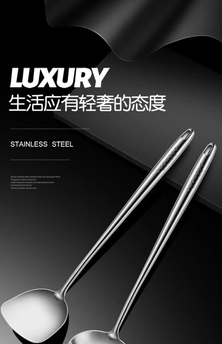 简漾不锈钢锅铲炒菜铲子一体加厚家用粥汤勺漏勺炒勺厨具套装 锅铲【全钢加长款防烫材质加厚】