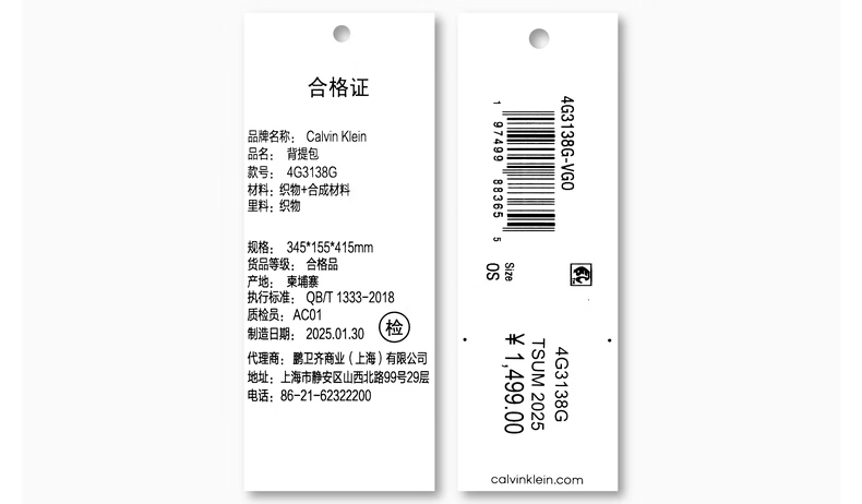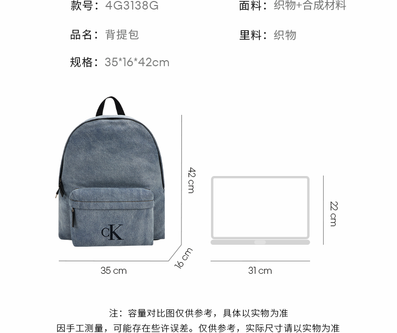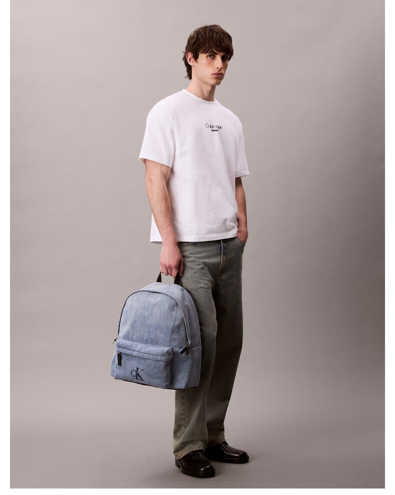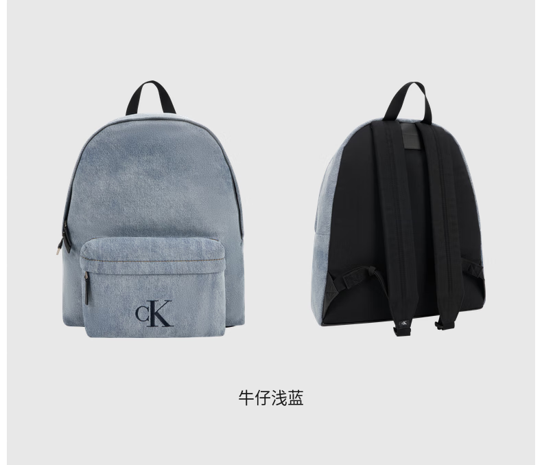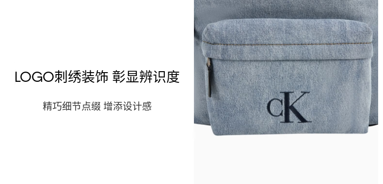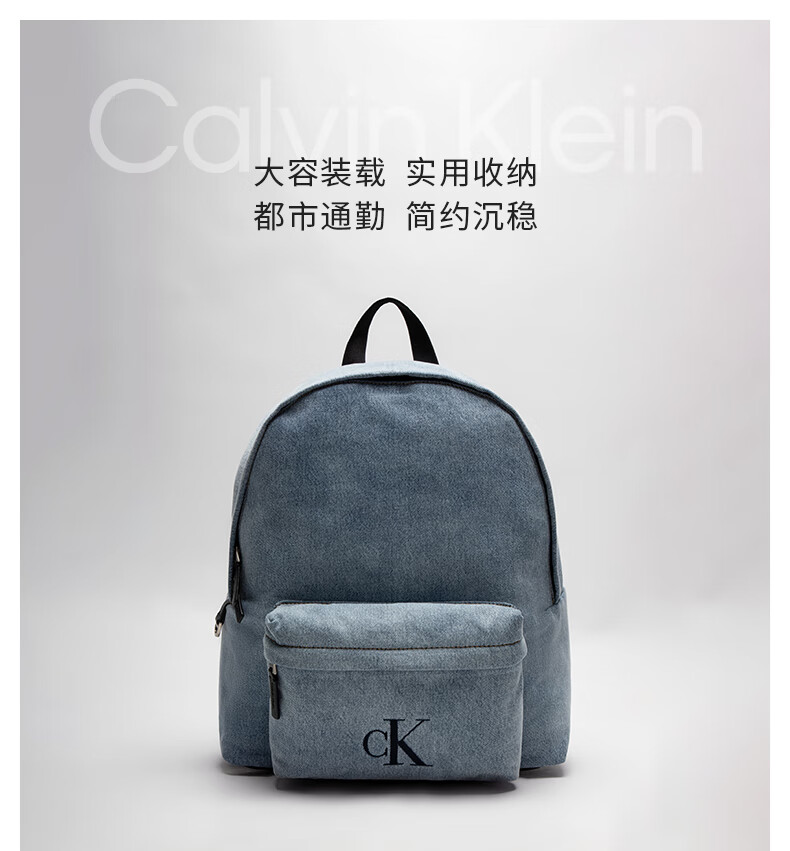 Calvin KleinJeans【圣诞礼物】25男士美式休闲校园风ck字母大容量牛仔双肩包