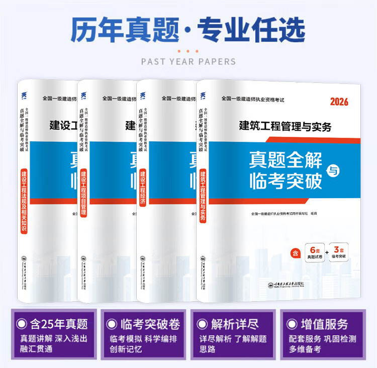 26正版现货】一建教材2026全套考试书一级建造师2026教材含2025历年真题模拟试卷建筑法规管理经济市政机电公路水利 ②【真题自测】真题全解与临考突破试卷+题库+押题 全4科】建筑实务+法规+管理