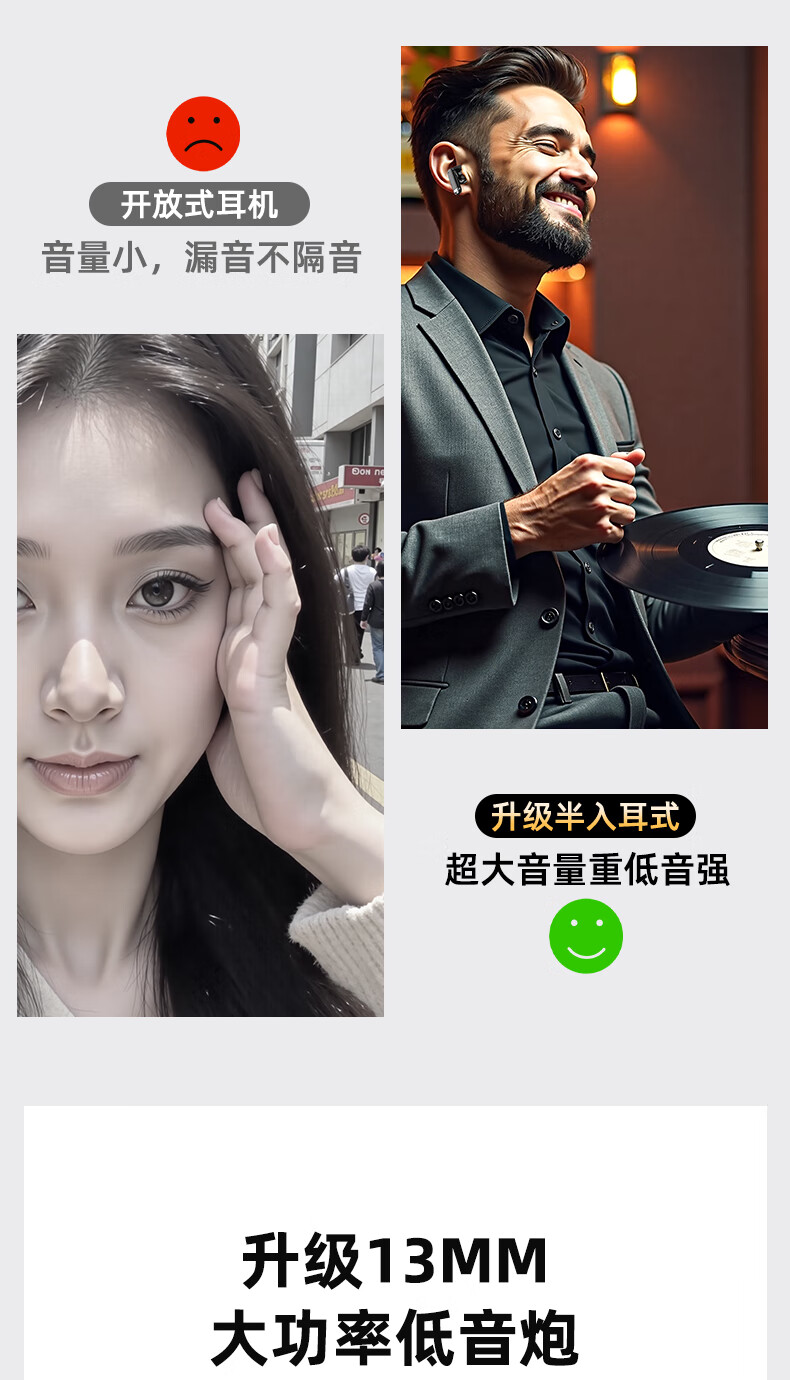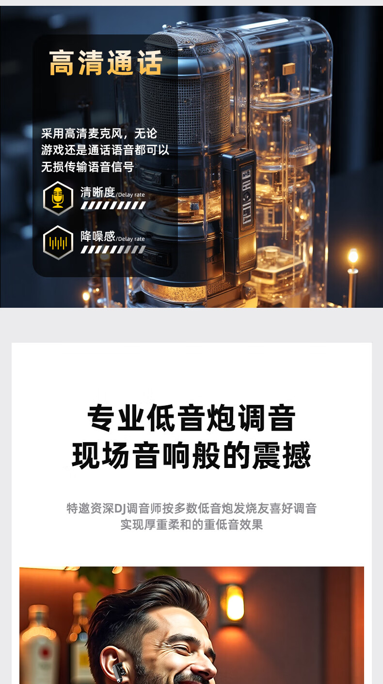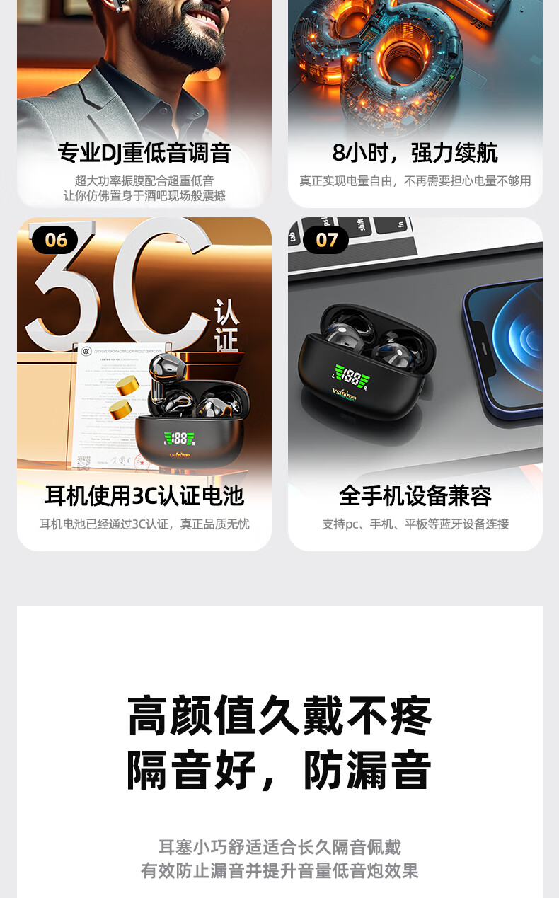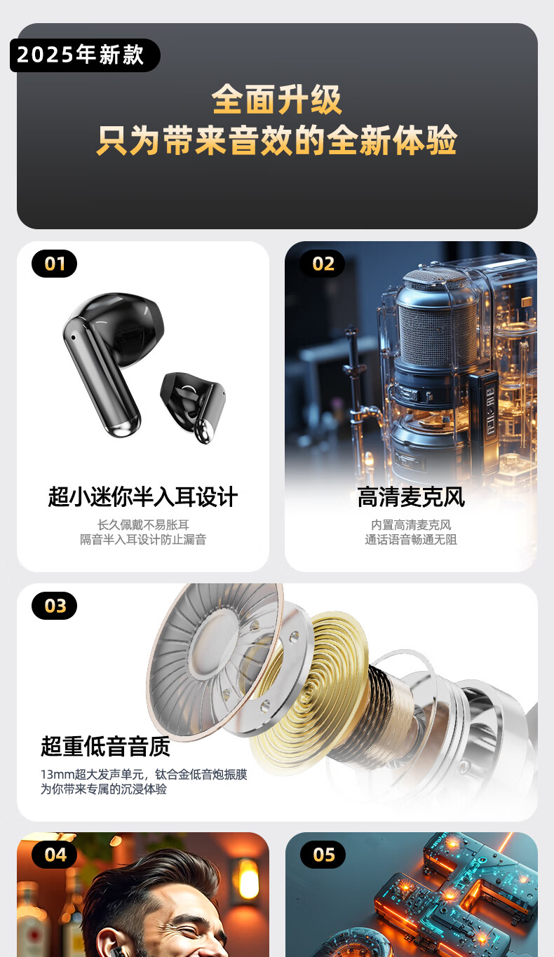 vsidea超重低音炮无线耳机蓝牙迷你半入耳式HIFI立体声环绕大音量长续航超小可爱定制版 黑色(有数显) 超大音量重低音
