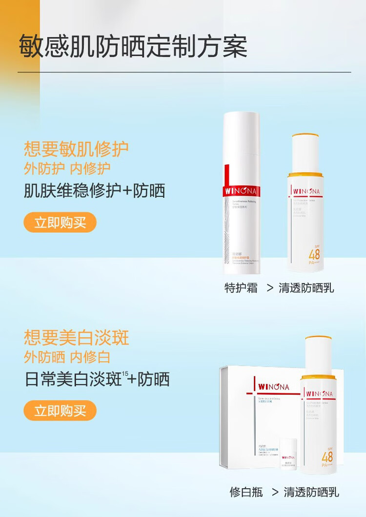 薇诺娜清透防晒乳SPF48 PA+++ 50G 防晒霜隔离紫外线护肤品 魏大勋同款 清透防晒乳15G*2支