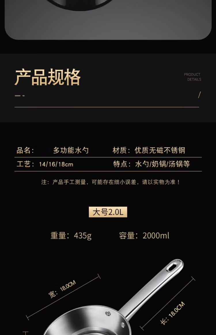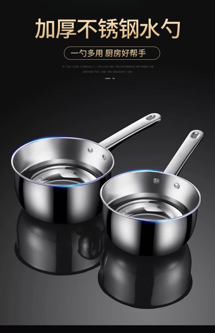 花乐集316不锈钢水瓢加厚不锈钢水勺家用厨房水瓢舀水瓢水舀子商用短柄 不锈钢水勺14cm