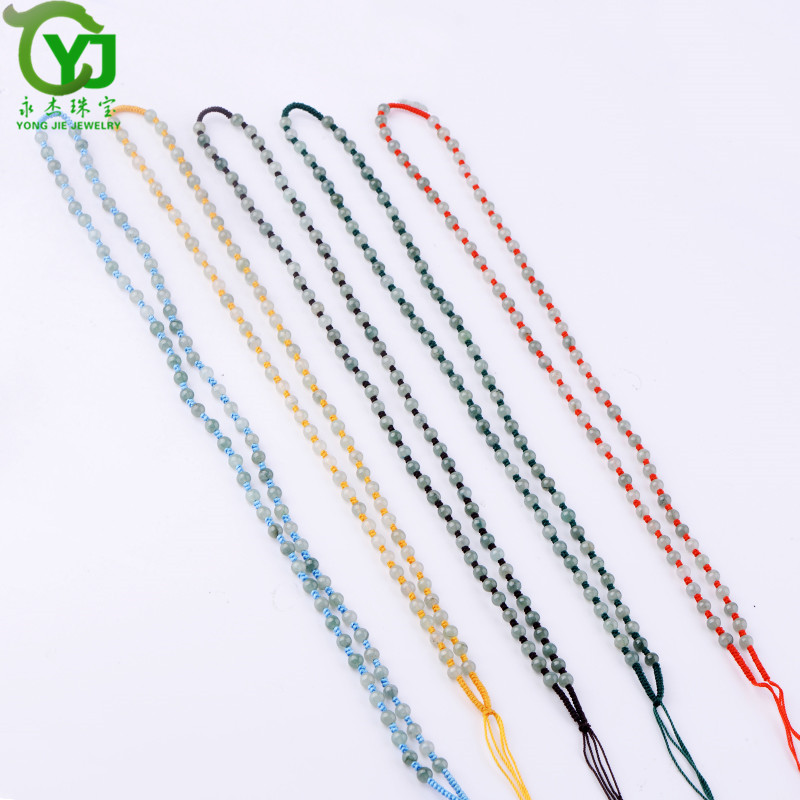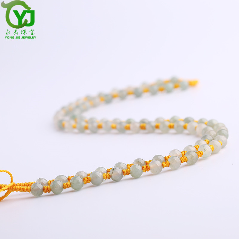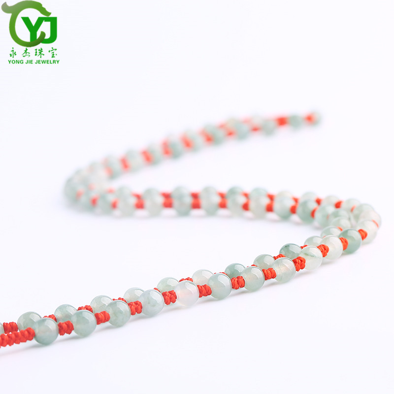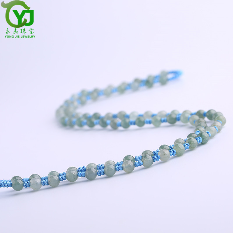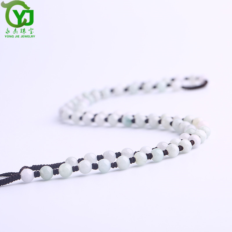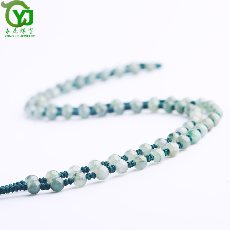 永杰珠宝 手工编织油青翡翠圆珠项链挂绳玉珠子串珠吊坠绳子男女款带证书 翡翠油青项链直径6毫米