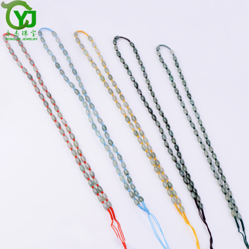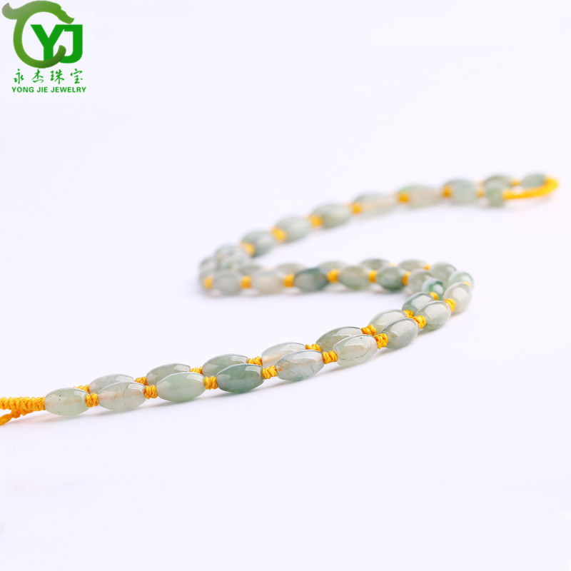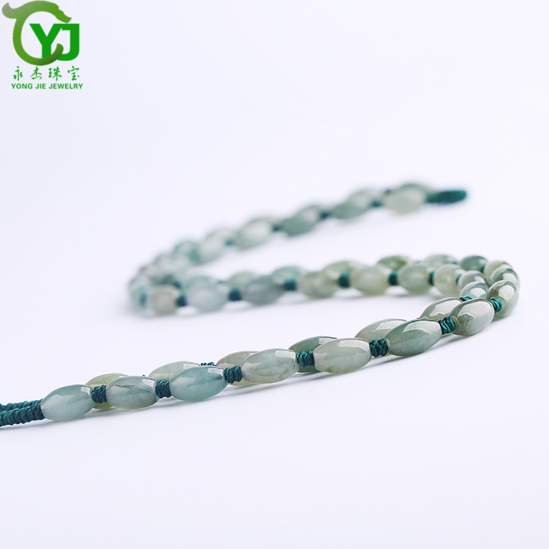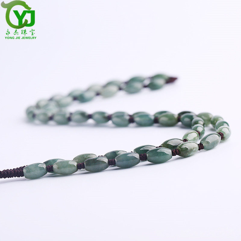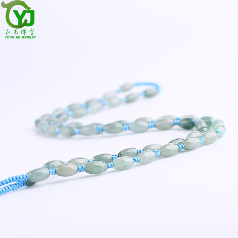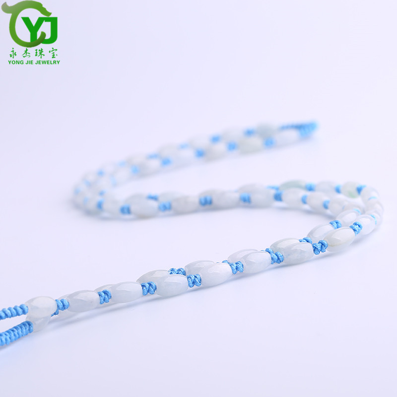 永杰珠宝 【七夕情人节礼物】翡翠玉石玉项链玉珠挂绳手工编织挂链玉器玉挂绳毛衣链男女款礼物带证书 翡翠米珠油青蓝绳