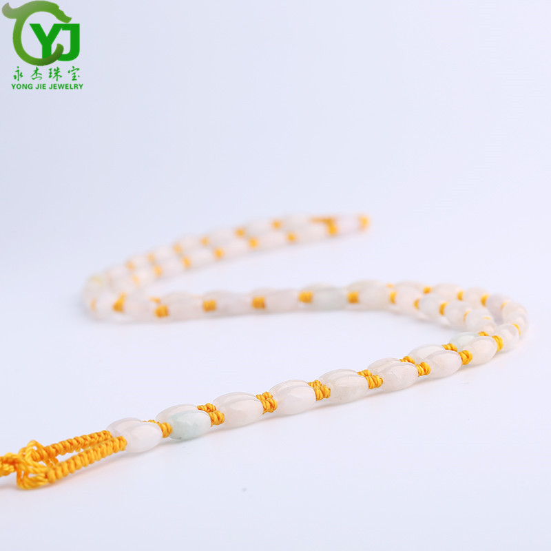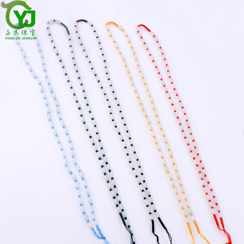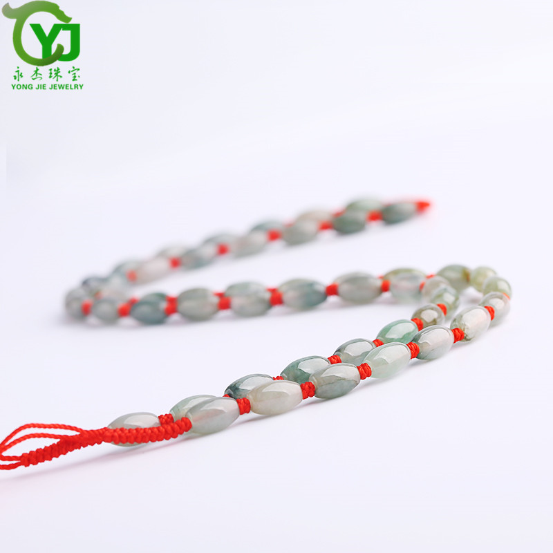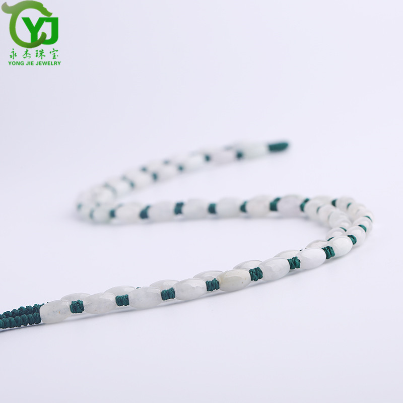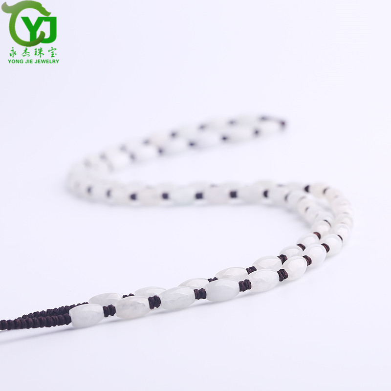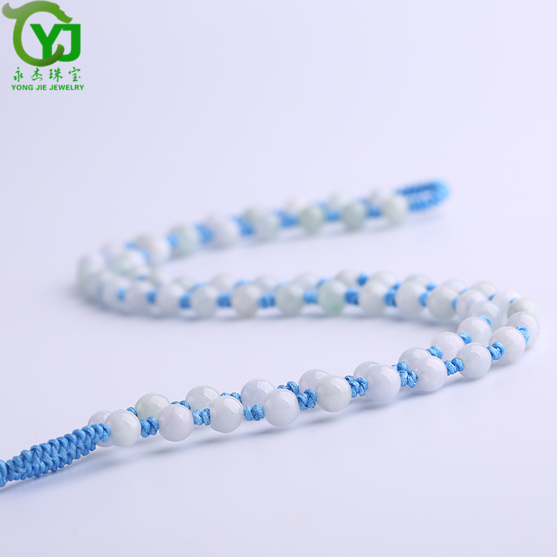 永杰珠宝 【七夕情人节礼物】翡翠玉石玉项链玉珠挂绳手工编织挂链玉器玉挂绳毛衣链男女款礼物带证书 翡翠米珠油青蓝绳