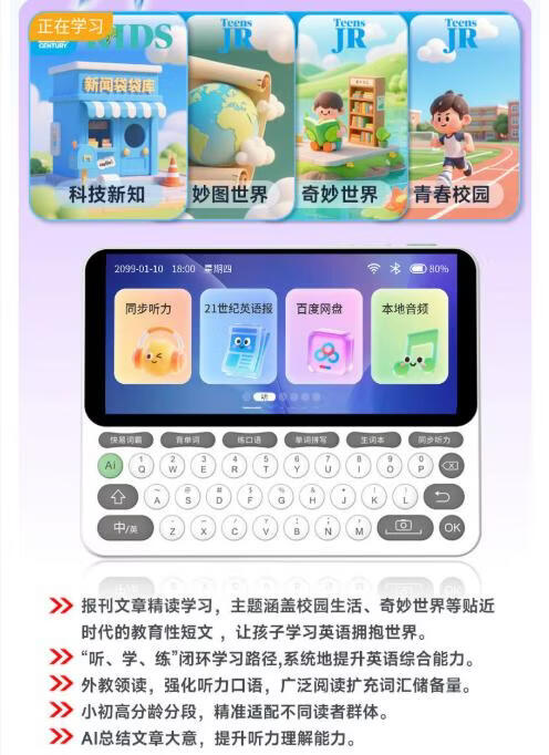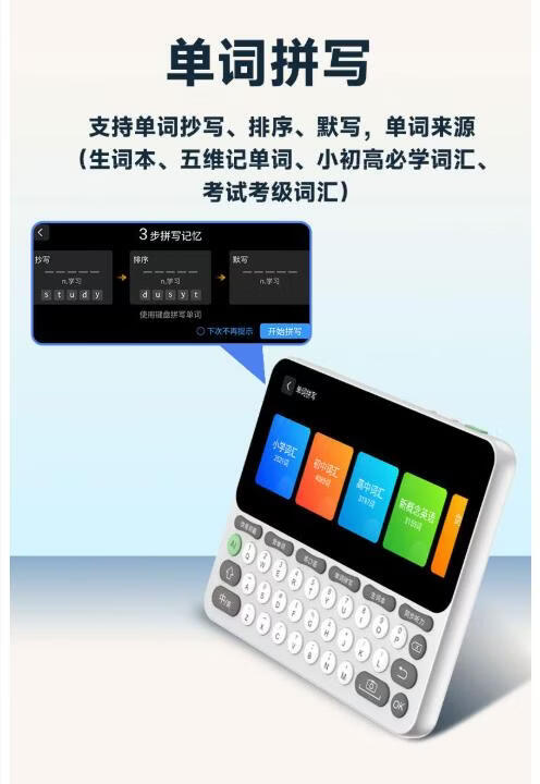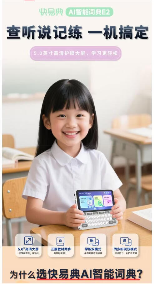 快易典(Koridy)AI电子词典E2英语学习机小学初中高中通词典四六级英语过级考试教材同步单词机 【全新升级】E2 128GB