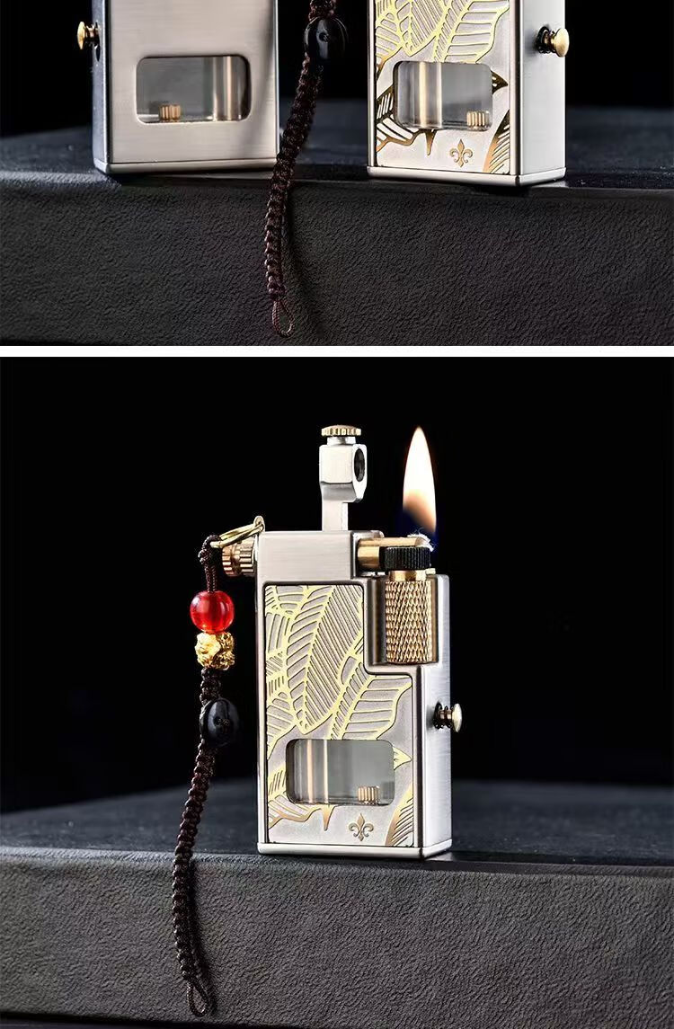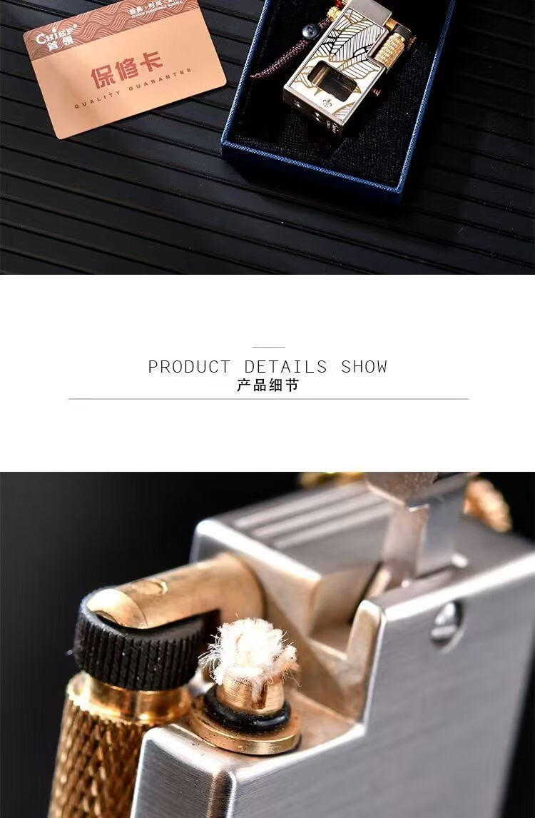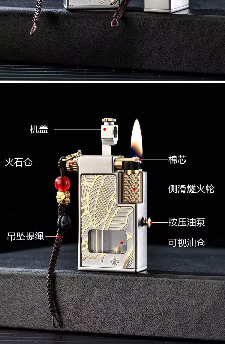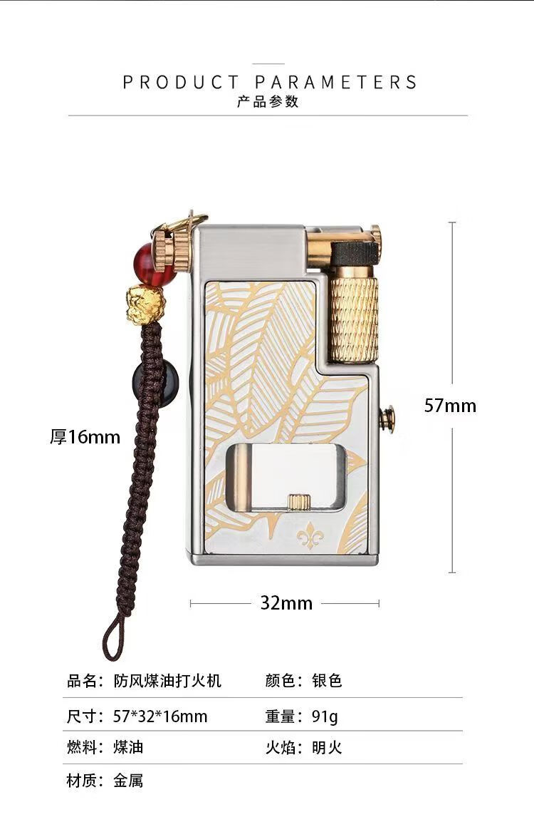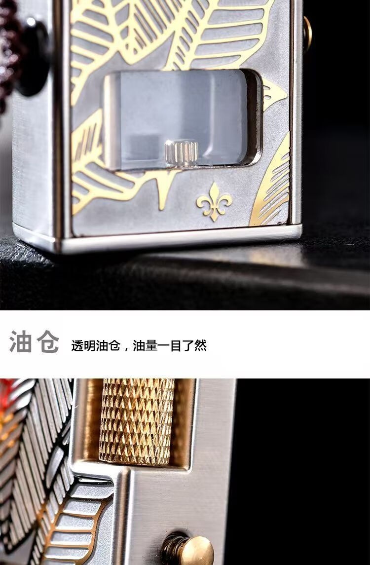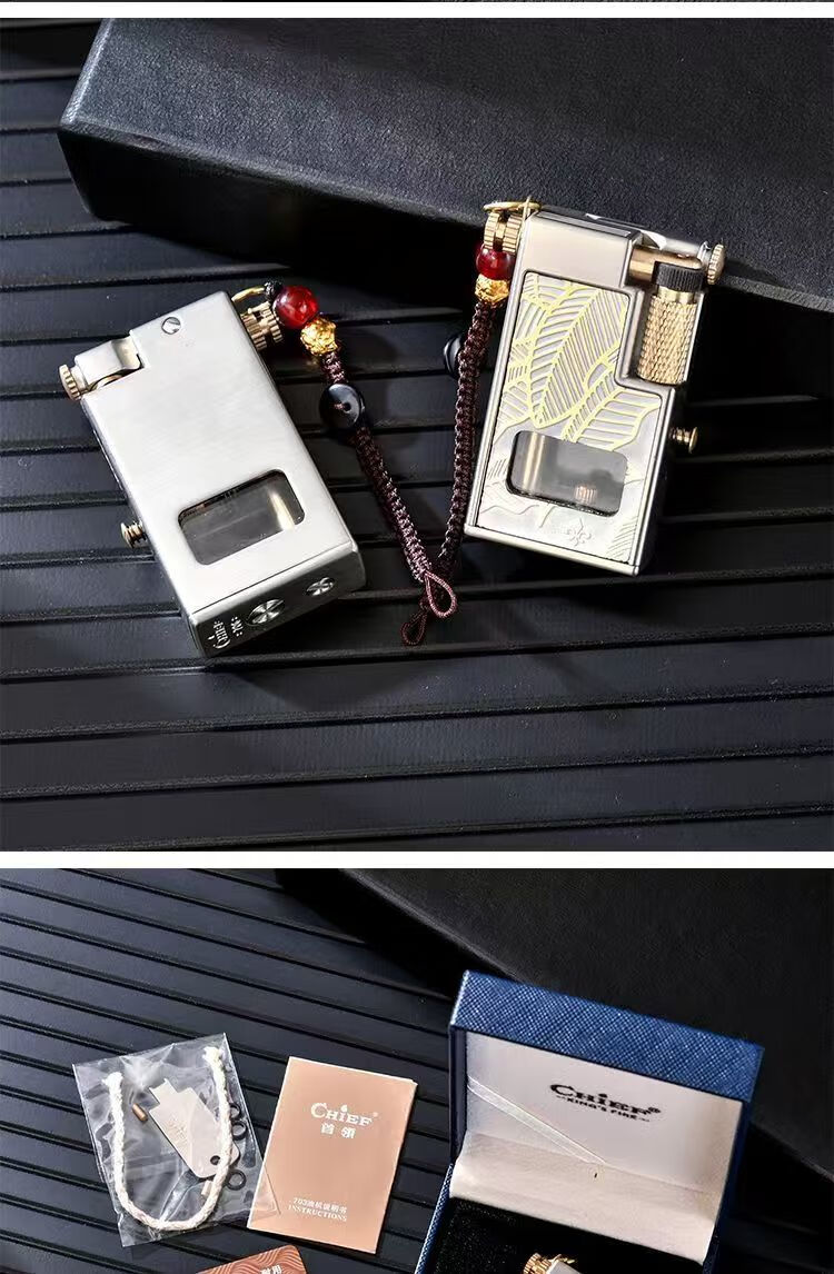 首领升级款CHIEF小钢炮拾臂煤油打火机创意双油仓待机王高档男士礼物 镀镍黄金叶【礼盒装】 标准版【送火石棉芯+40毫升煤油】