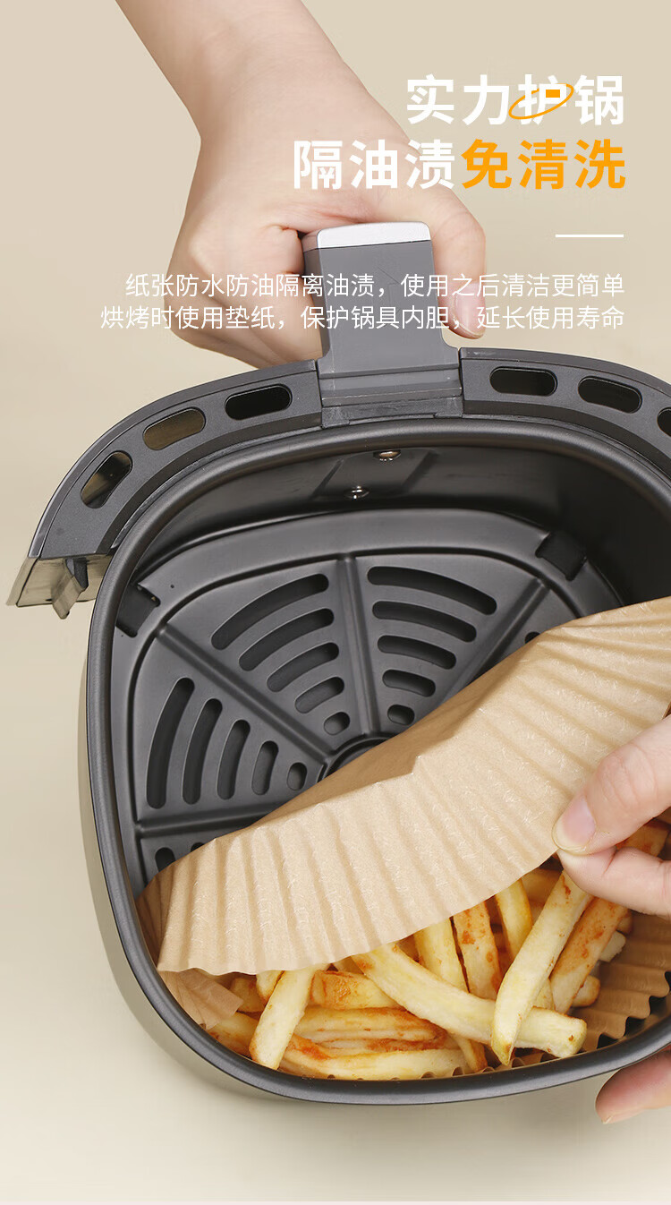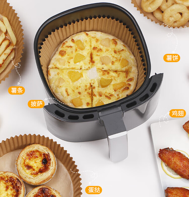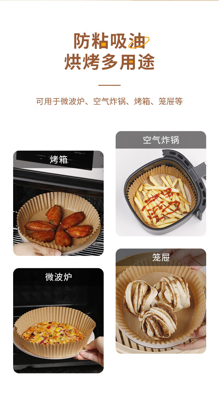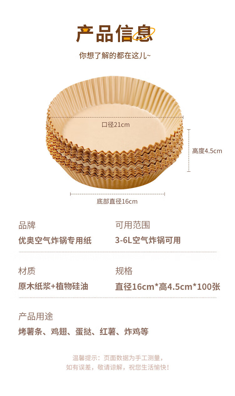 优奥(YOUAO)空气炸锅专用纸硅油纸盘纸托圆形吸油纸食物垫纸家用烤肉烘焙 100张(直径16cm适合3L以上)