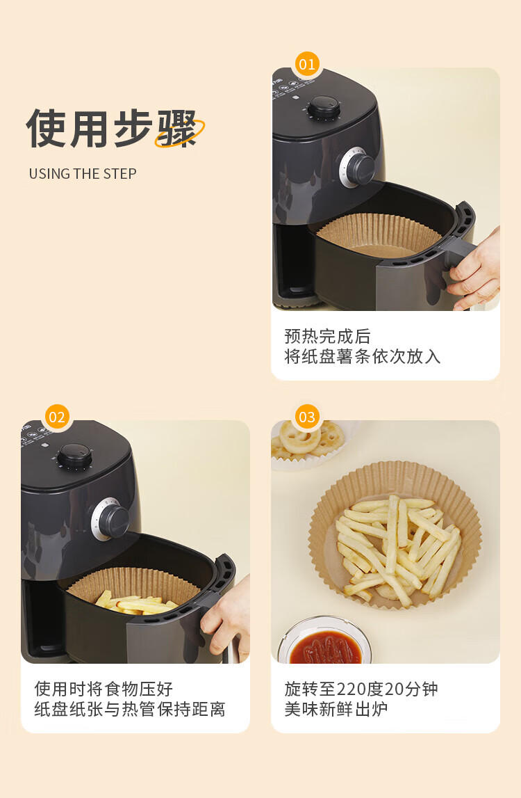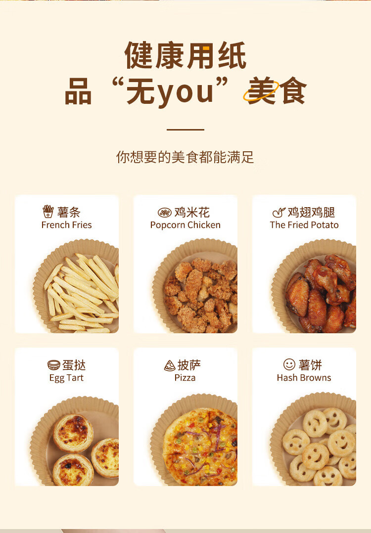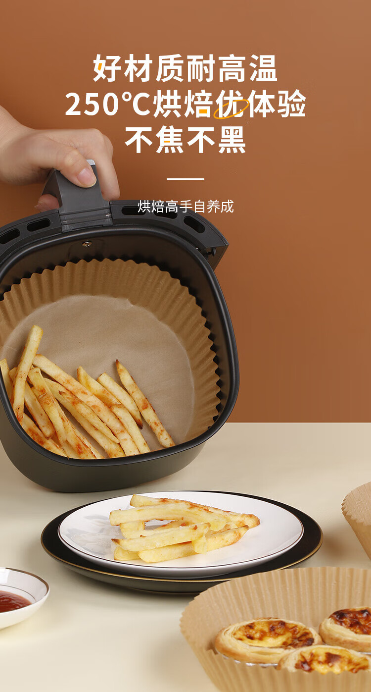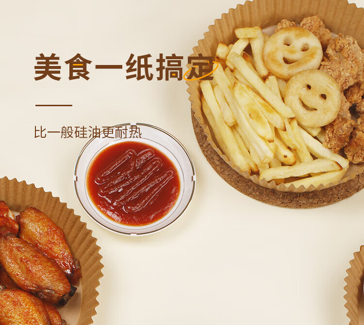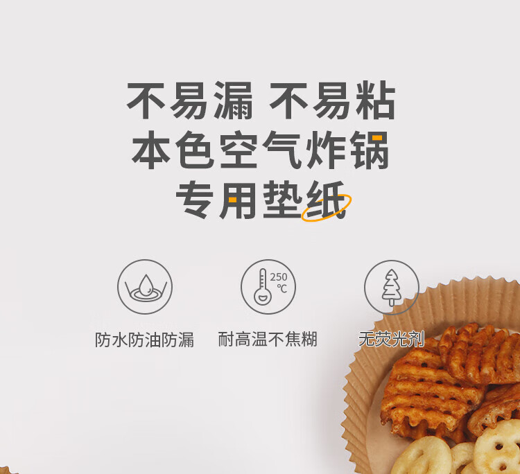 优奥(YOUAO)空气炸锅专用纸硅油纸盘纸托圆形吸油纸食物垫纸家用烤肉烘焙 100张(直径16cm适合3L以上)