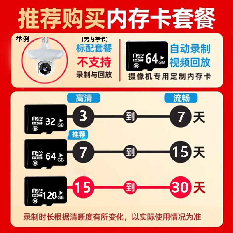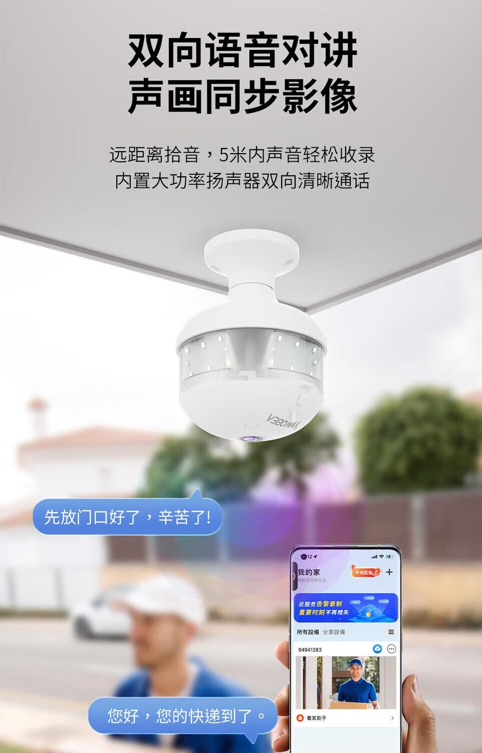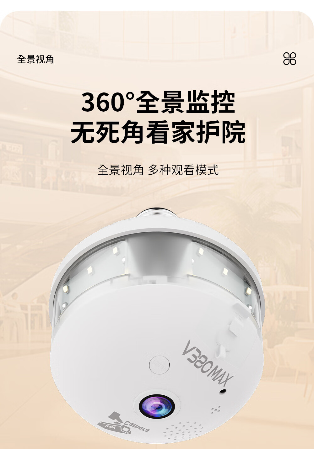 DIDSETH全景E27灯泡摄像头无线wifi手机远程双光夜视高清照明监控4G无网可用灯光监控 【4G免流量】全景监控+LED灯+32G