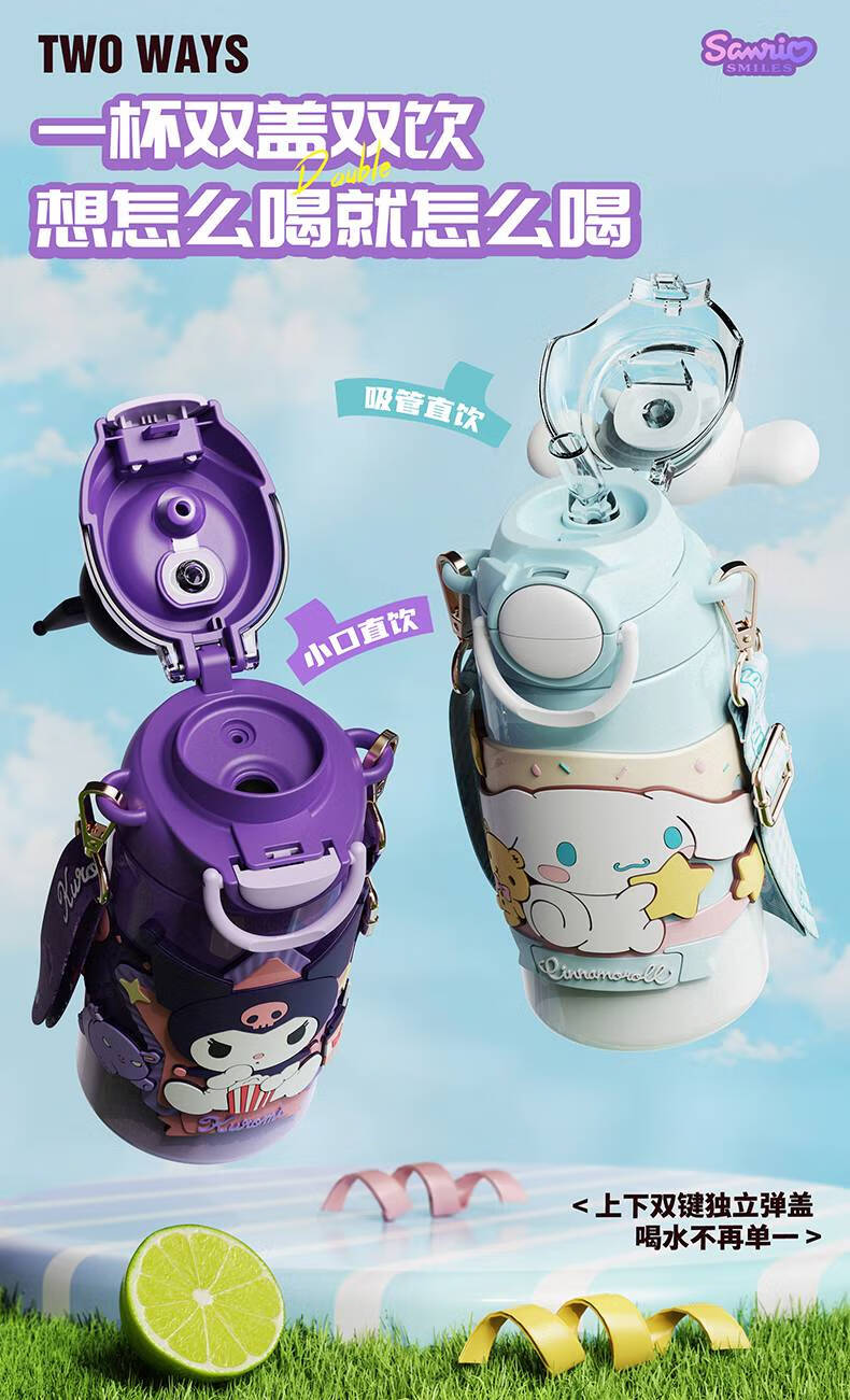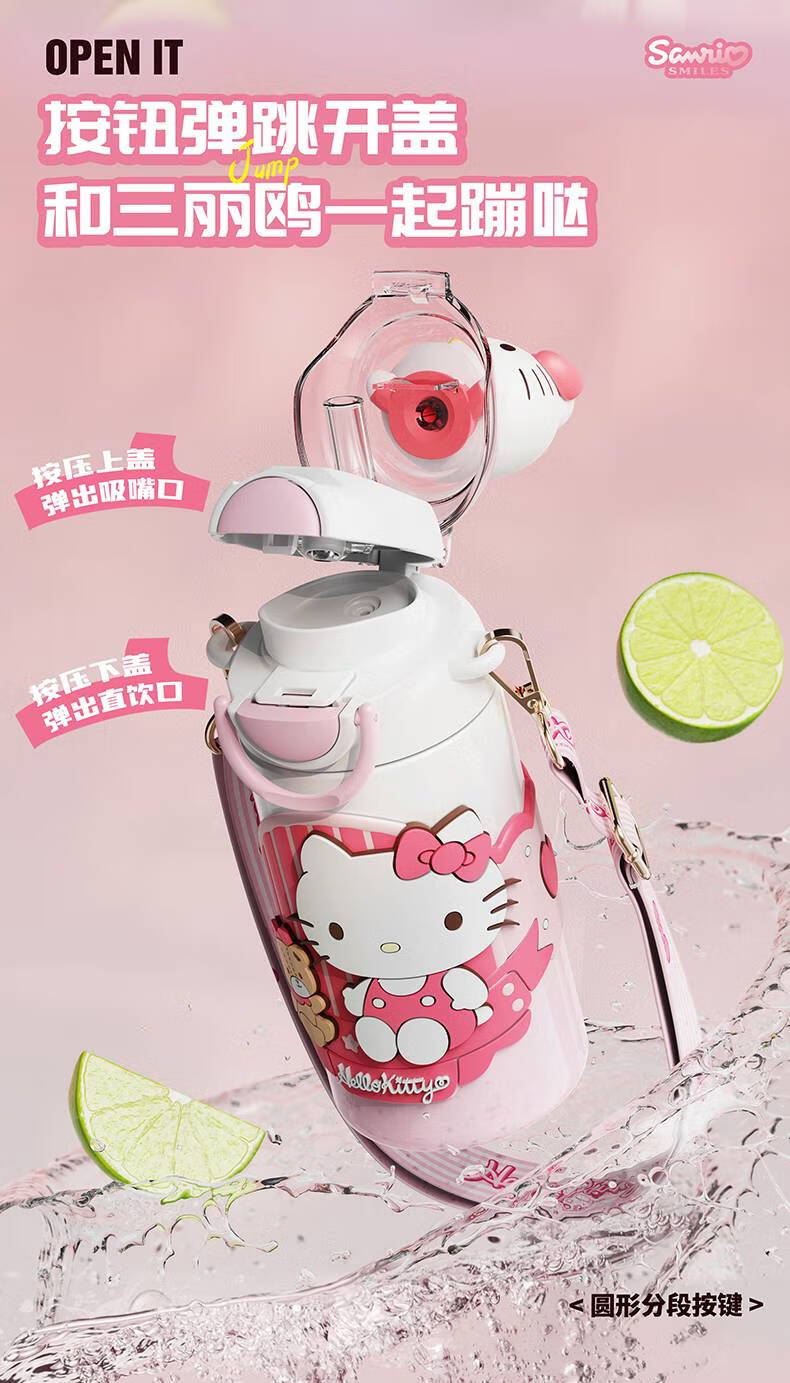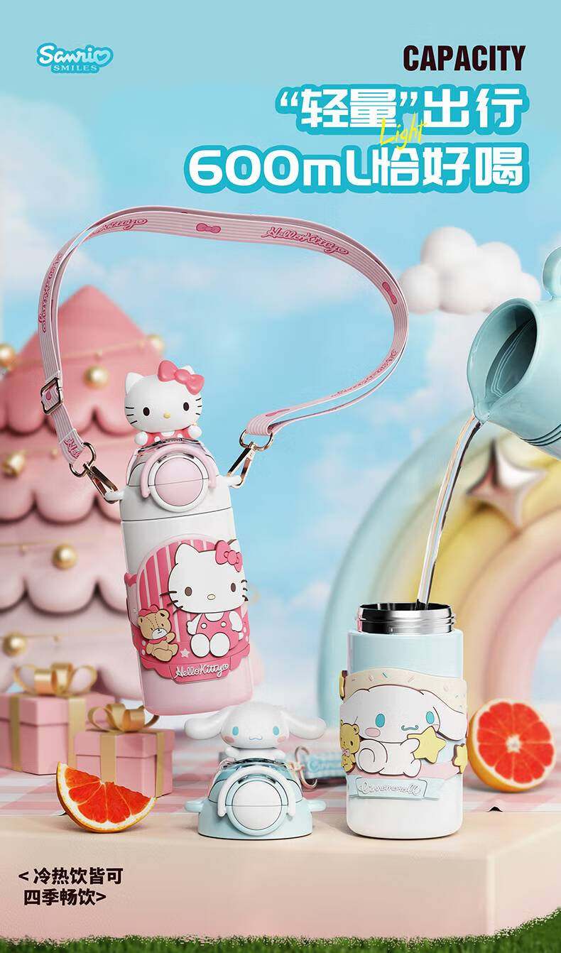 迪士尼(Disney)hellokitty水杯儿童保温杯学生上学专用女孩水壶三丽鸥吸管杯2025 【升级两饮】凯蒂猫600ml【抗菌316内胆/免费