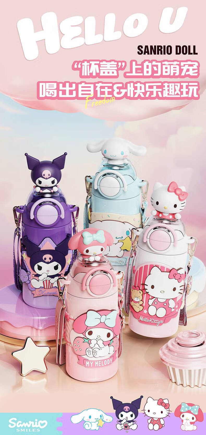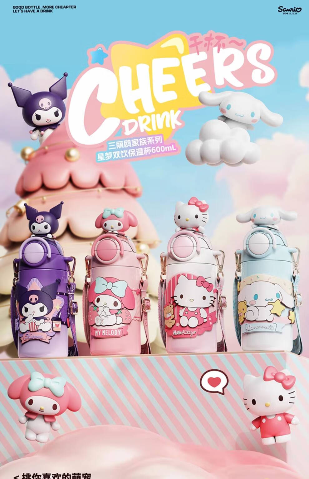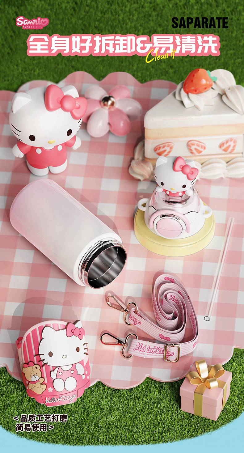 迪士尼(Disney)hellokitty水杯儿童保温杯学生上学专用女孩水壶三丽鸥吸管杯2025 【升级两饮】凯蒂猫600ml【抗菌316内胆/免费