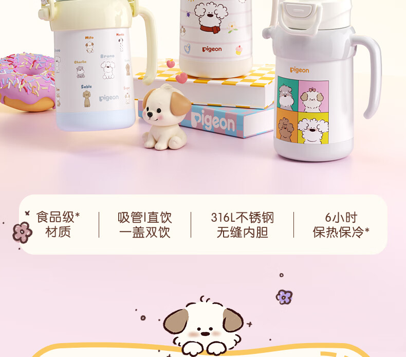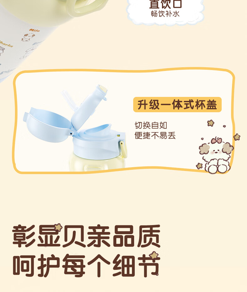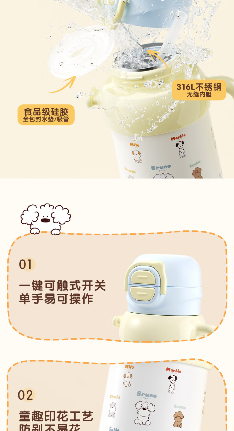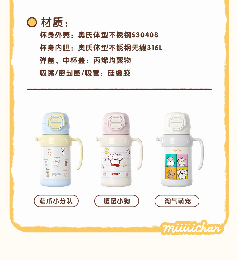 贝亲儿童保温杯 水杯上学吸管杯 316不锈钢保温杯儿童 miiiiichan联名 3岁+双饮头(蓝色萌爪小分队) 450ml