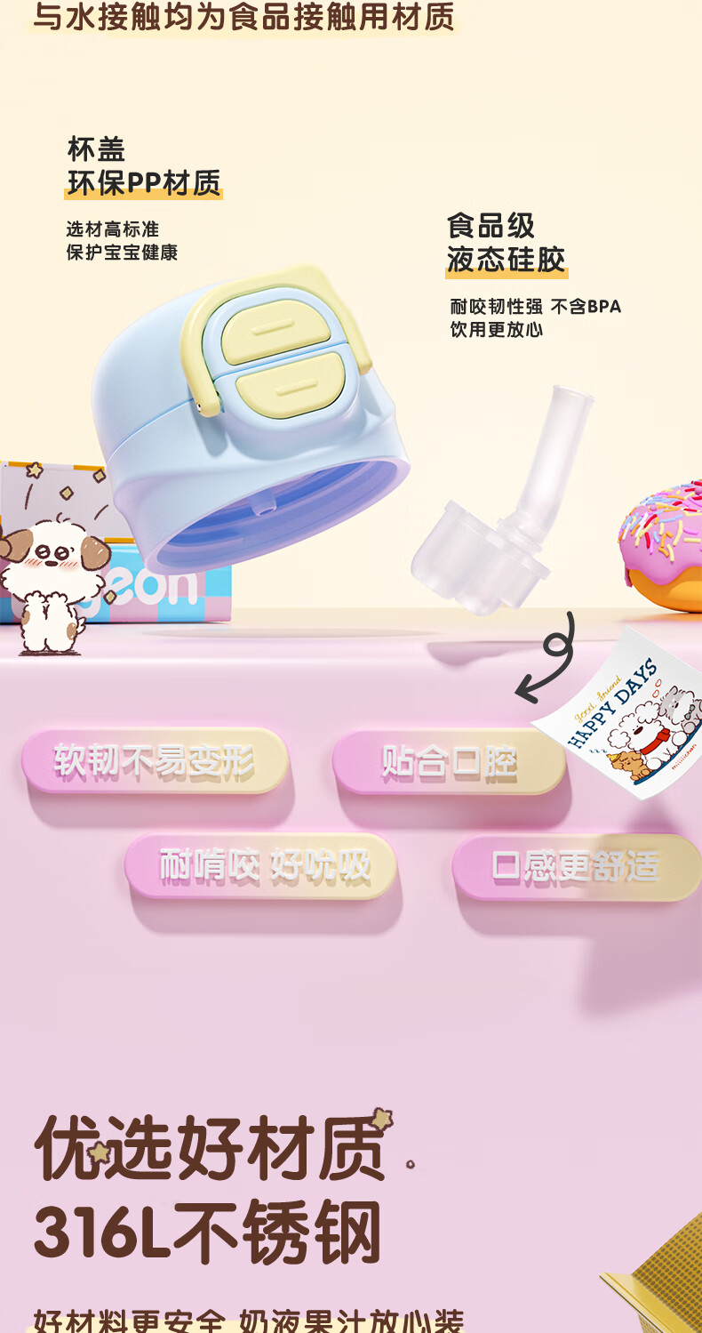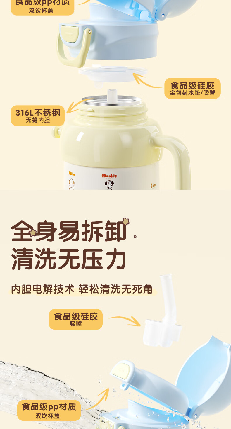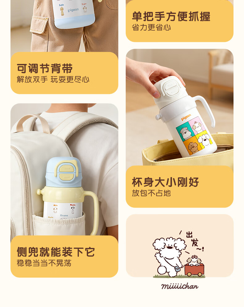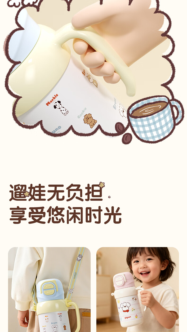 贝亲儿童保温杯 水杯上学吸管杯 316不锈钢保温杯儿童 miiiiichan联名 3岁+双饮头(蓝色萌爪小分队) 450ml