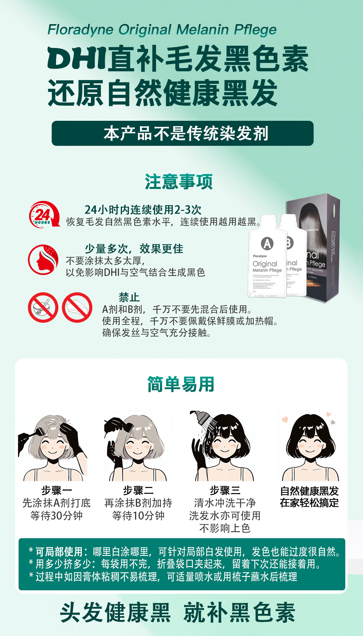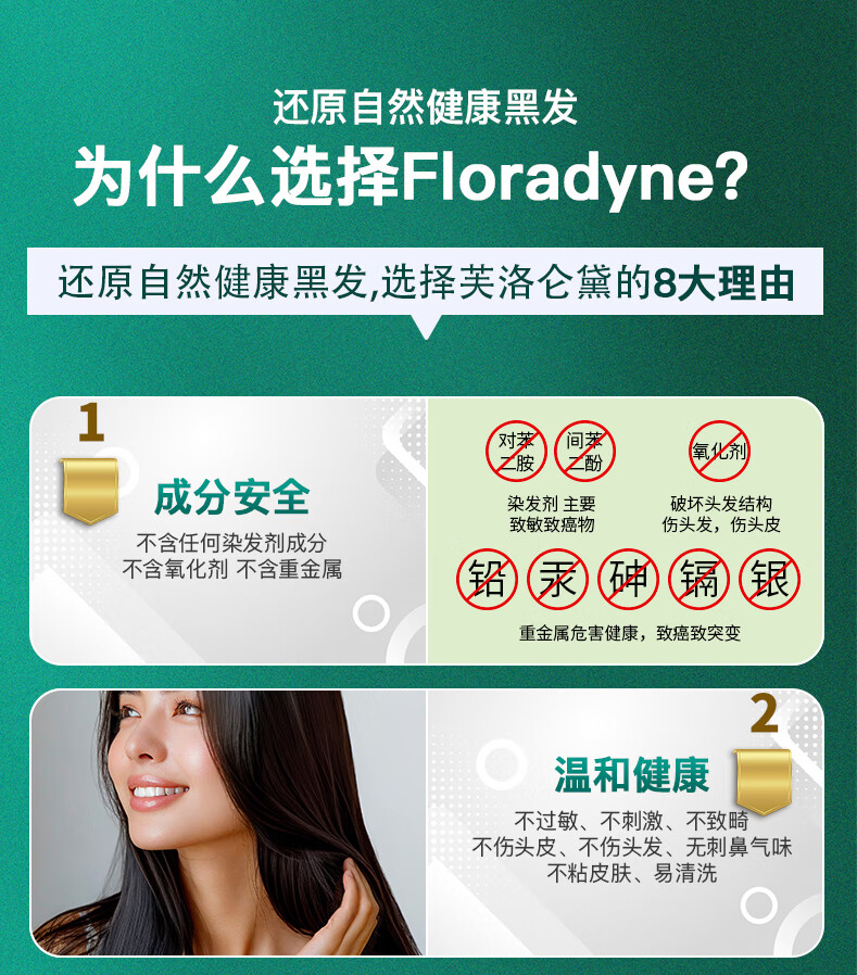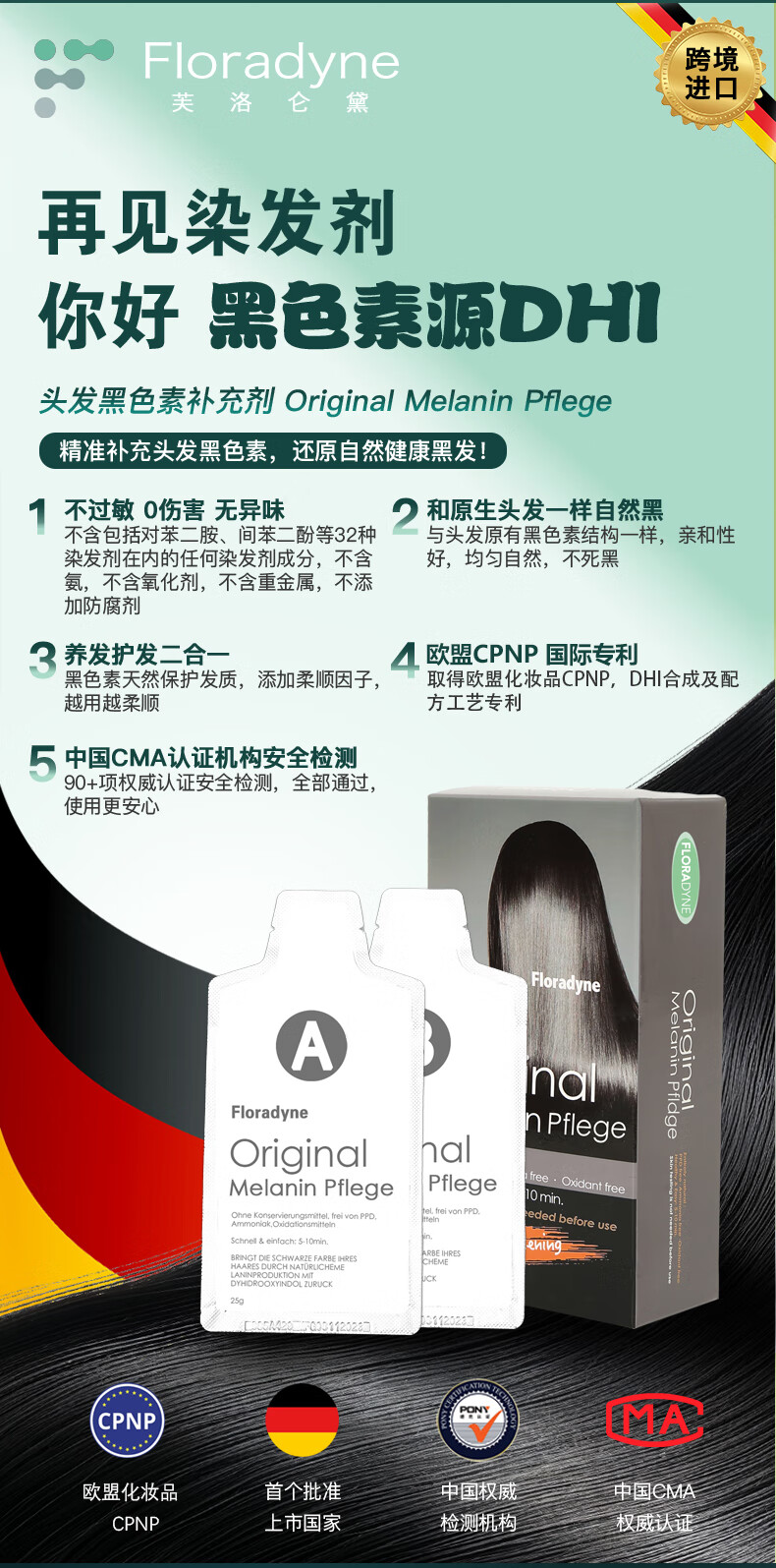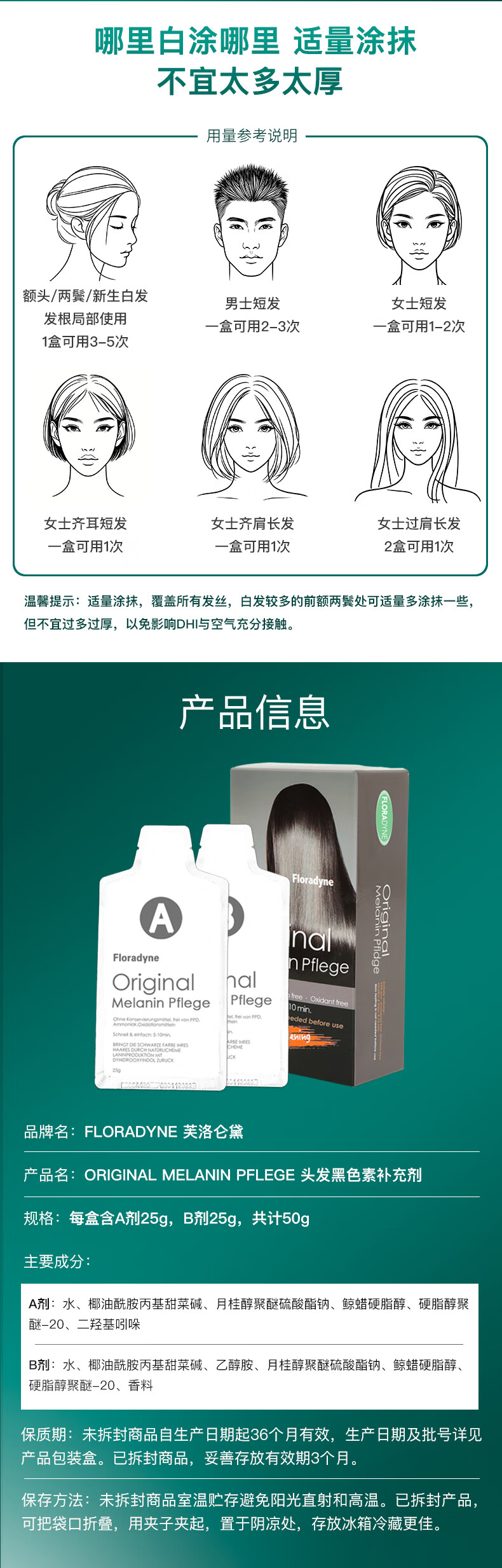 FLORADYNE芙洛仑黛盖白染发膏黑色素补充剂盖白发染发剂遮白染发霜自然黑 【自然黑】三盒装 25g+25g/盒