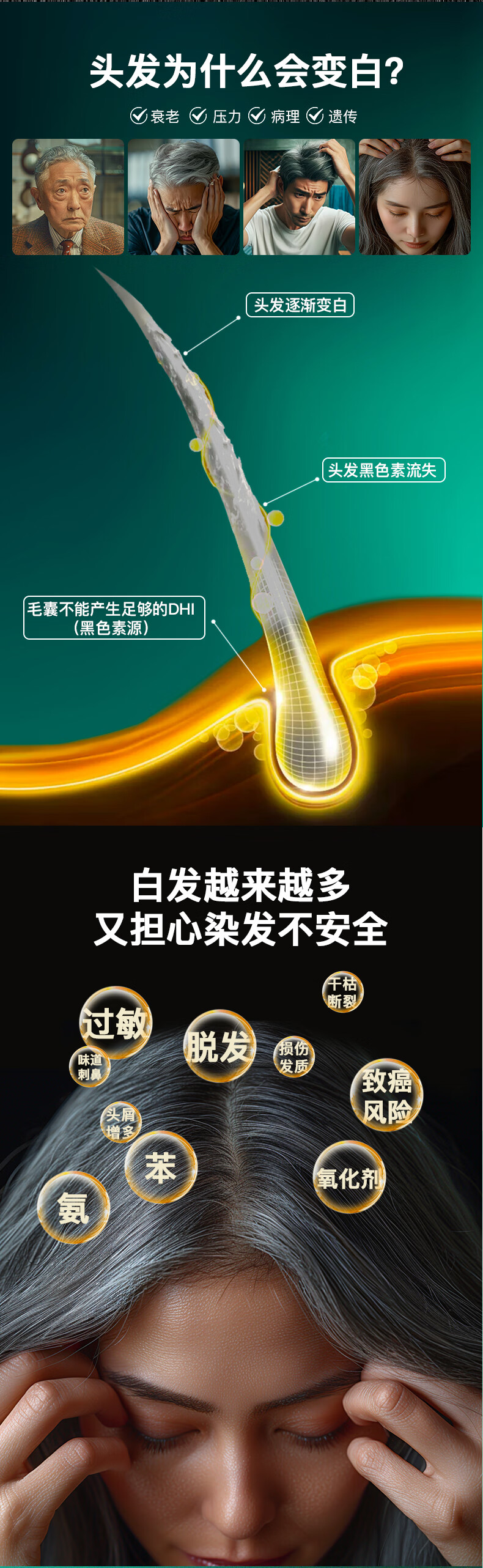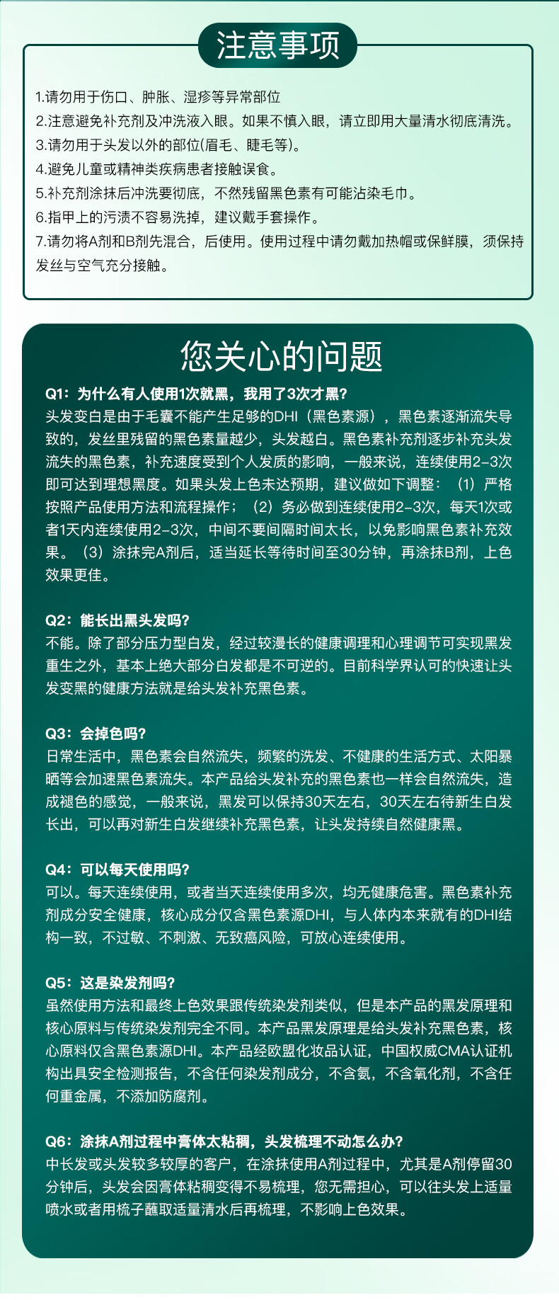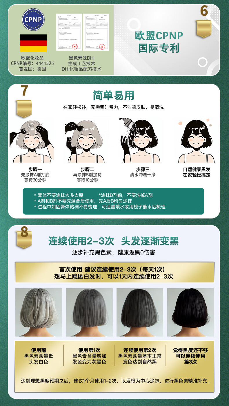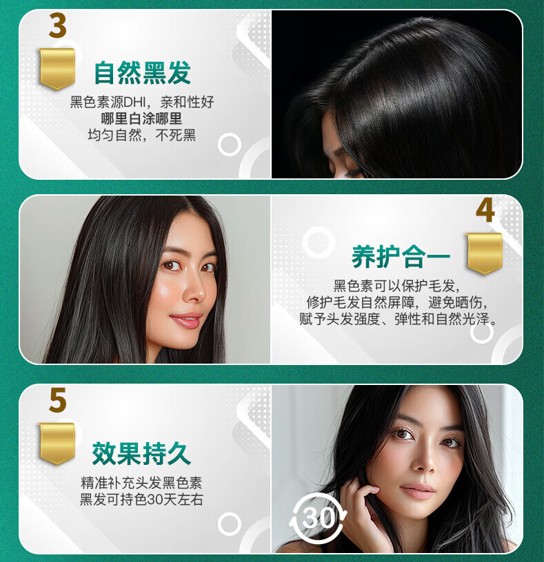 FLORADYNE芙洛仑黛盖白染发膏黑色素补充剂盖白发染发剂遮白染发霜自然黑 【自然黑】三盒装 25g+25g/盒