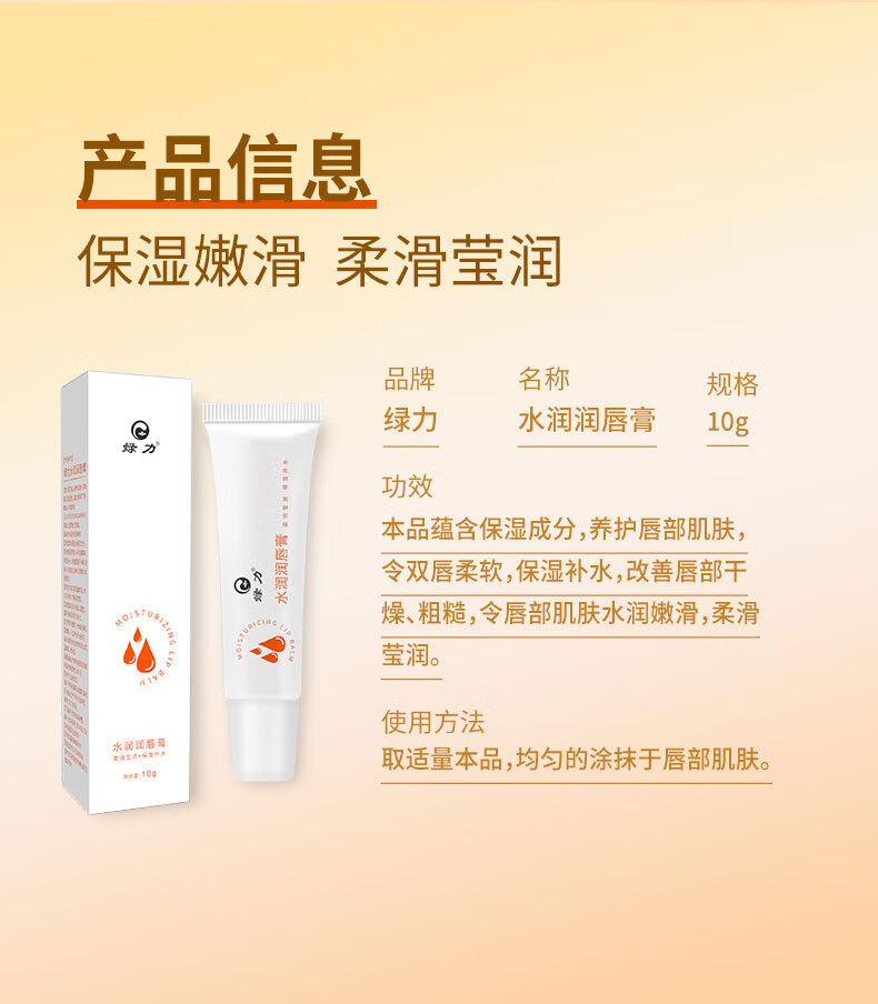 绿力水润润唇膏补水保湿唇部缓解干燥男女通用 水润润唇膏*2支