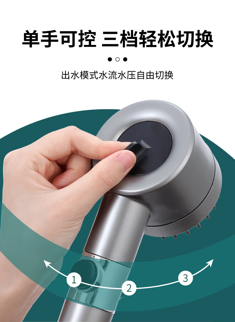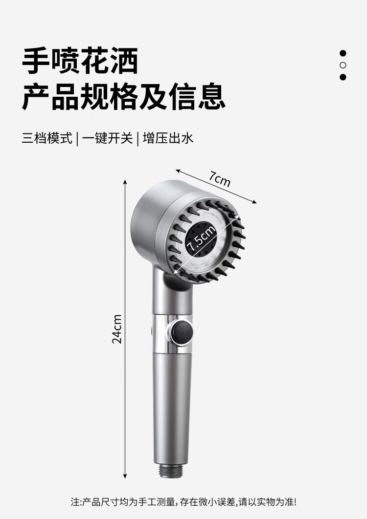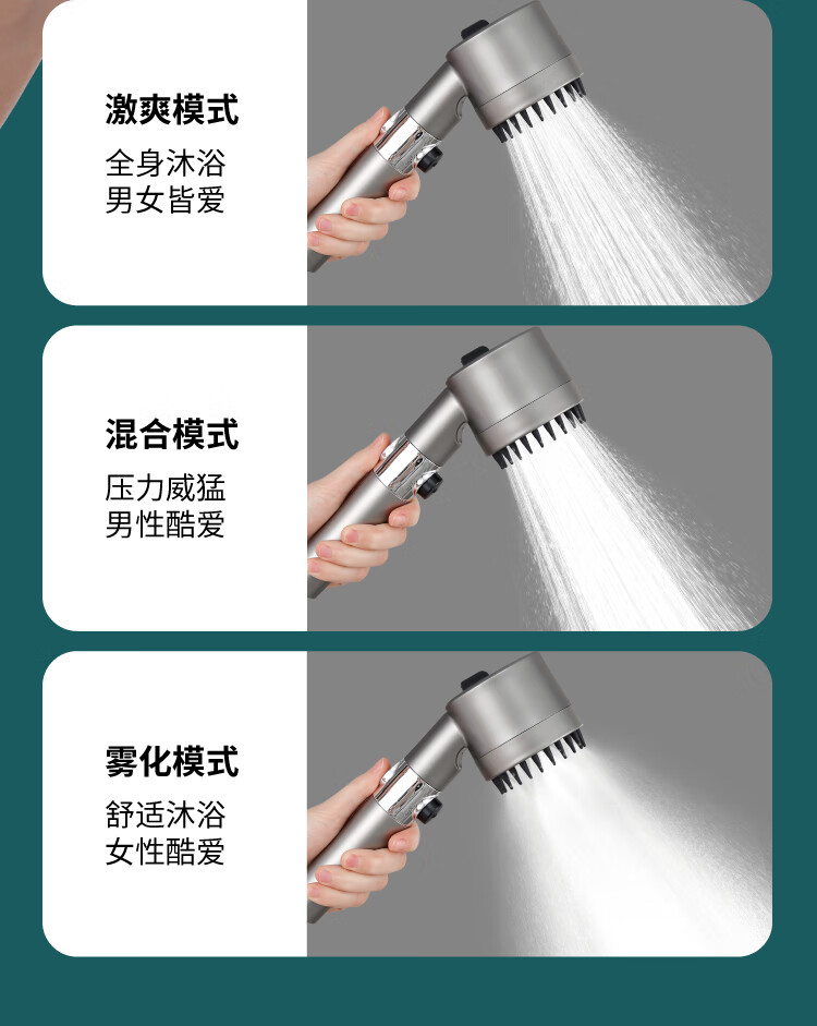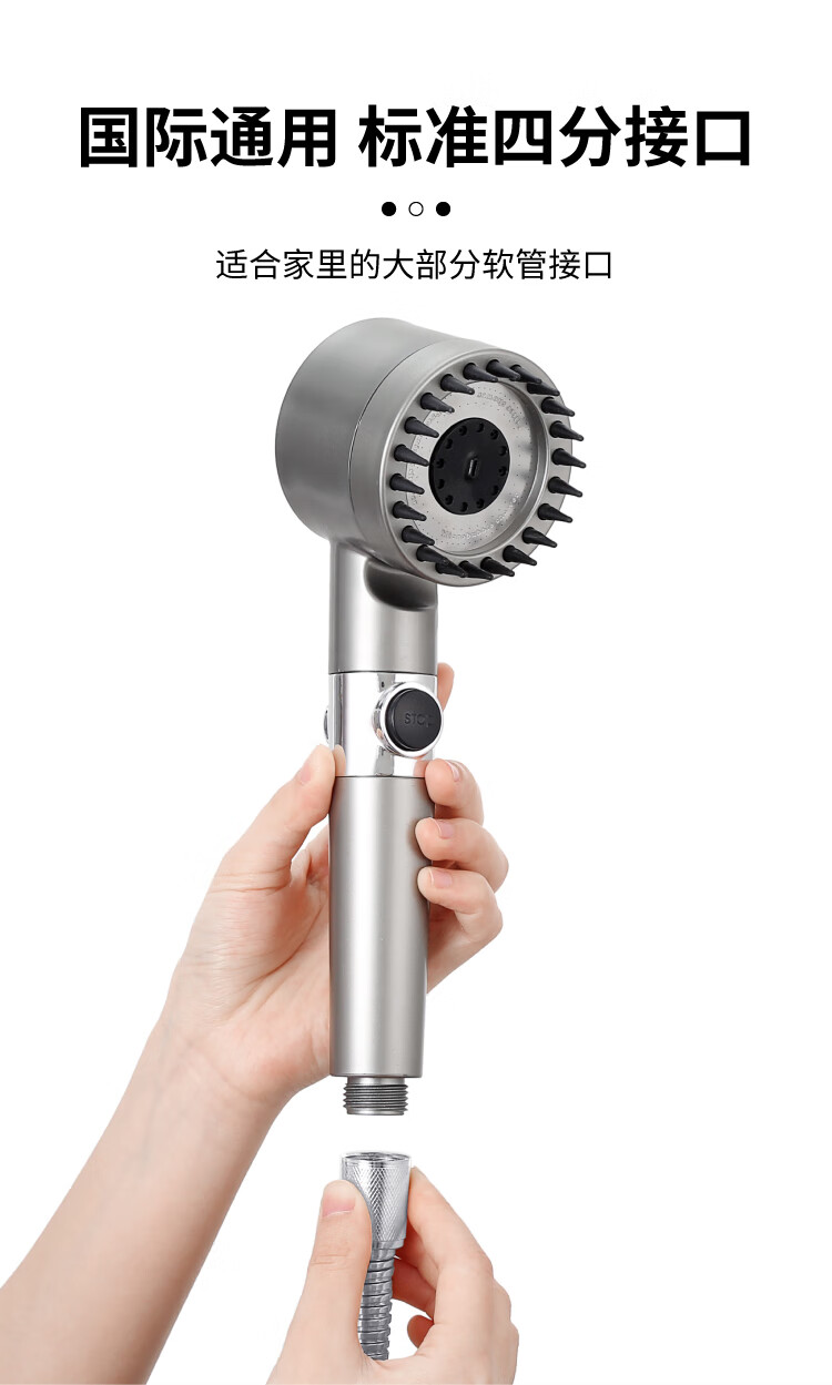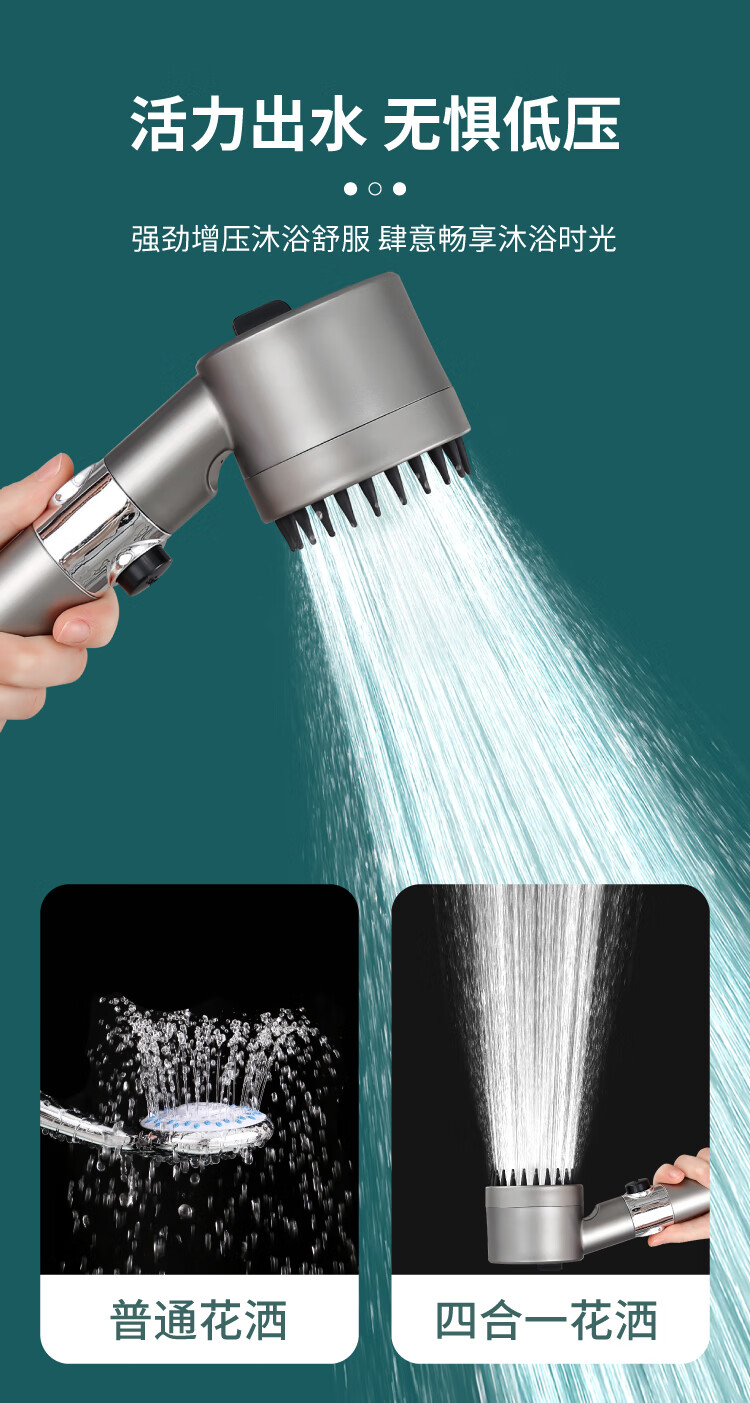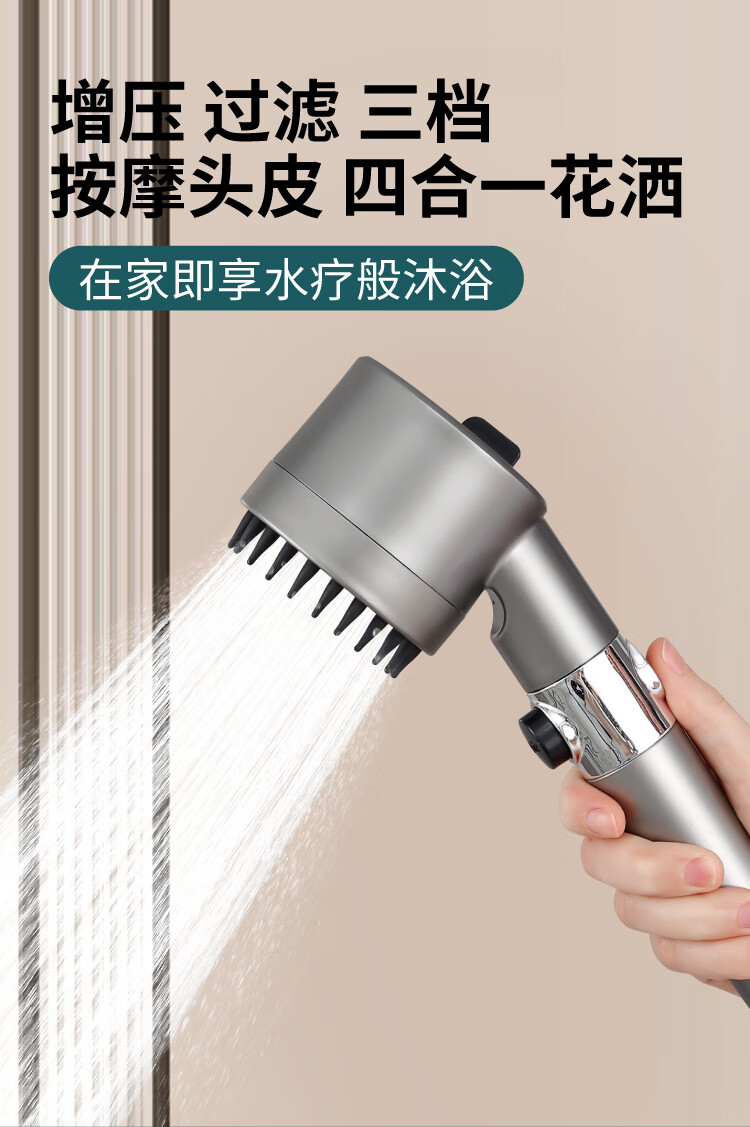 增压花洒喷头超强淋浴洗澡热水器水龙头浴室淋雨手持式加压莲蓬头 枪灰色花洒