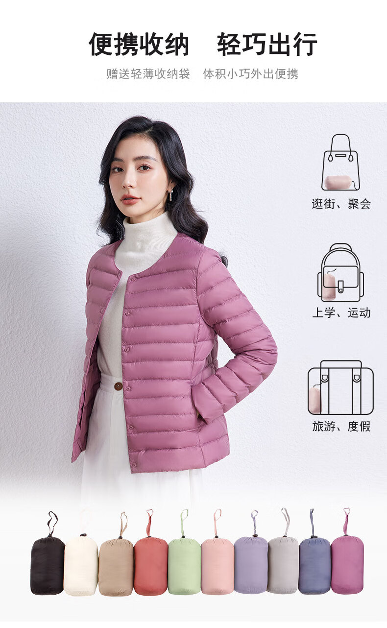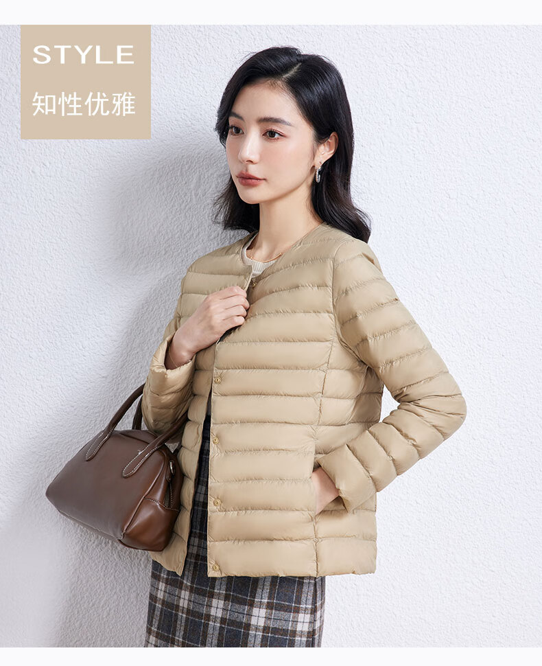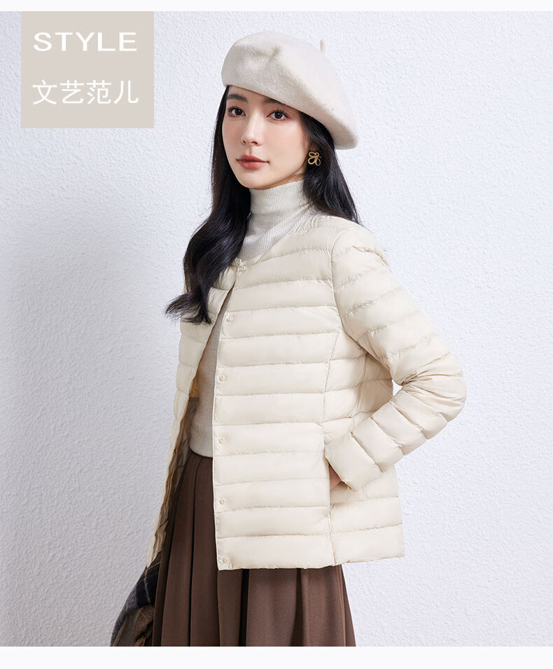 鸭鸭(YAYA)佟丽娅同款轻薄羽绒服女短款韩版休闲保暖羽绒内胆轻便排骨外套男 米白色 L