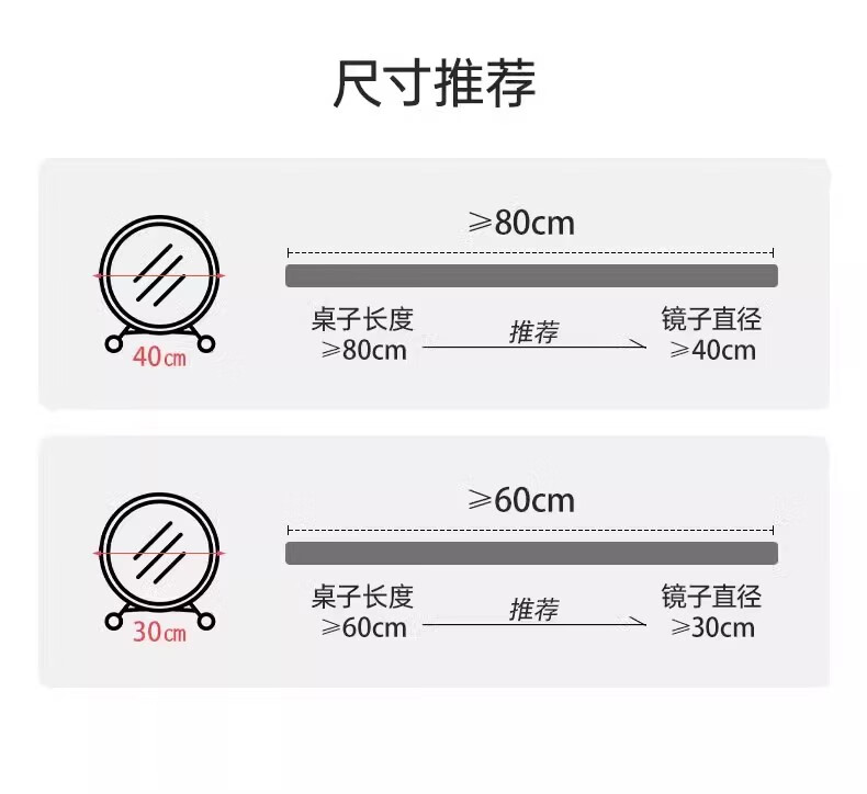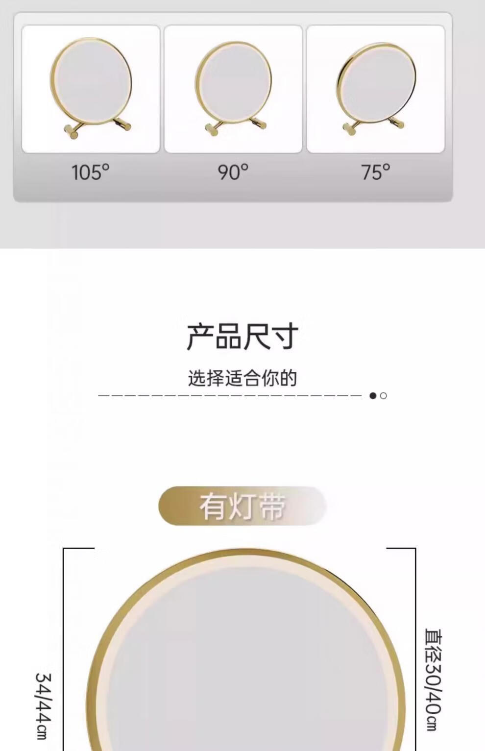 迈途森台式智能led化妆镜带灯女生卧室梳妆台镜子学生宿舍桌面ins梳妆镜 超大屏-珍珠白30cm【可调节-无灯款】