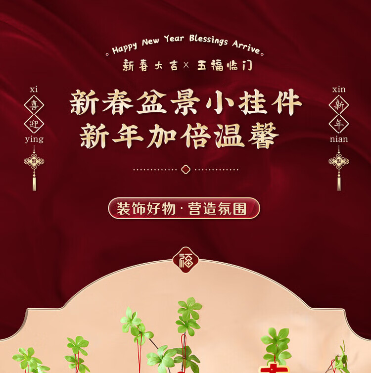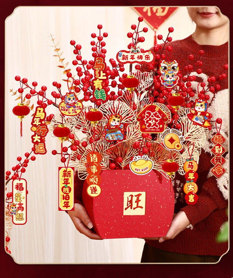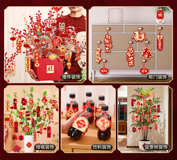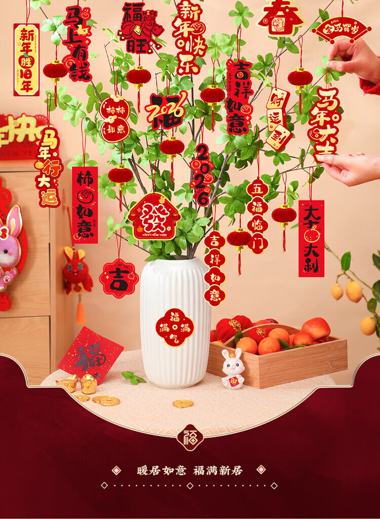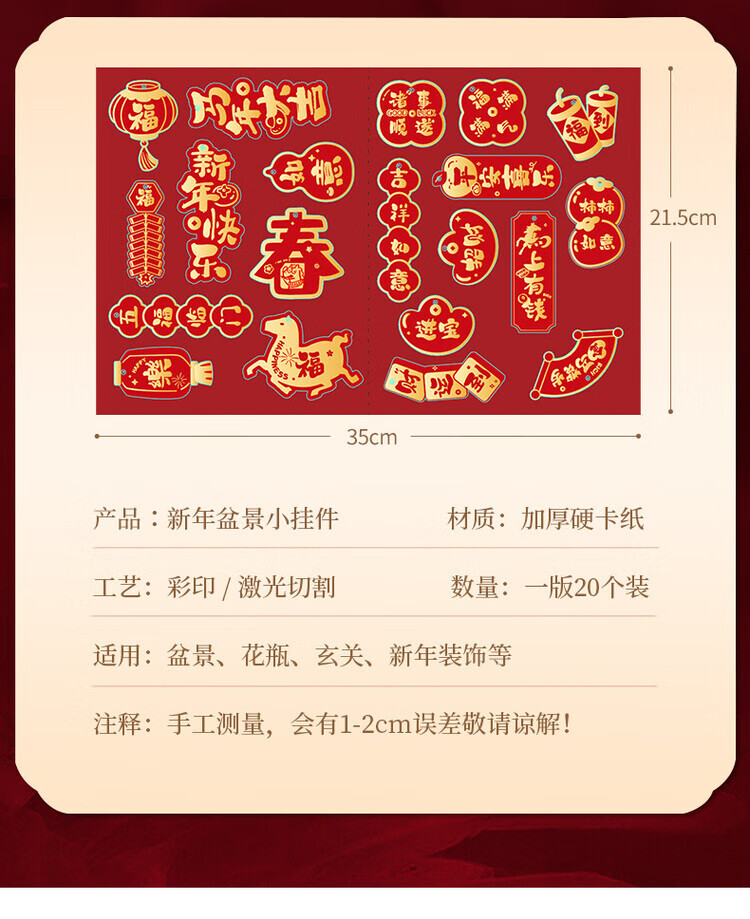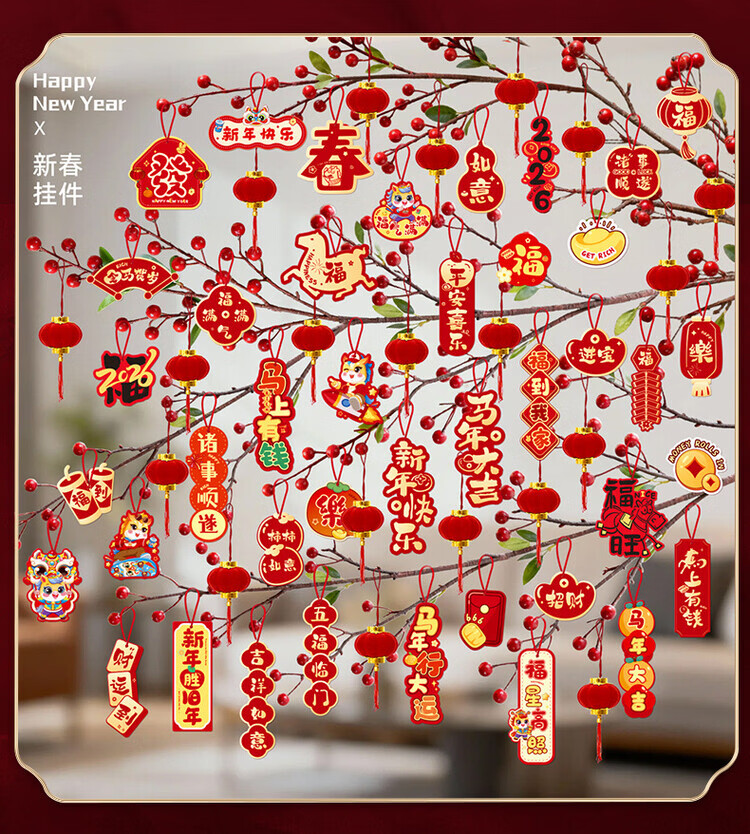 OYKTN2026马年新年挂件过年树上盆栽盆景绿植小红灯笼挂饰氛围布置用品 金马贺岁-小吊卡【20拼】