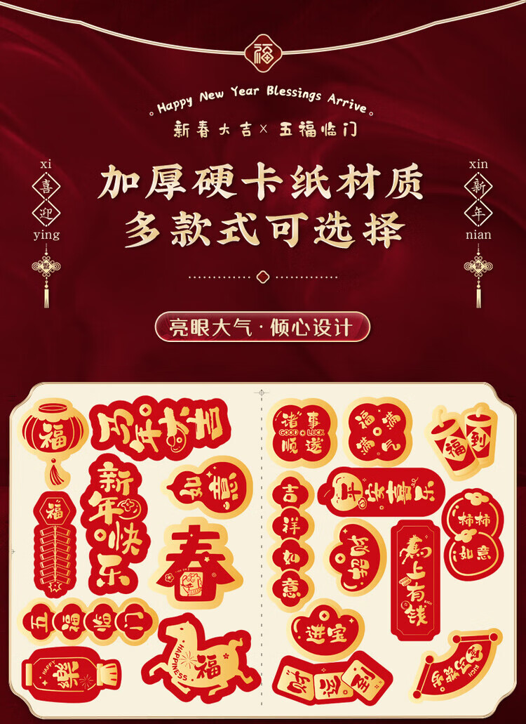 2026卡纸款马年对联大礼包春节用品入户门贴福字大门装饰套装春联 福到我家【25件套】春节大礼包