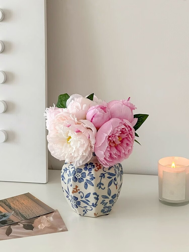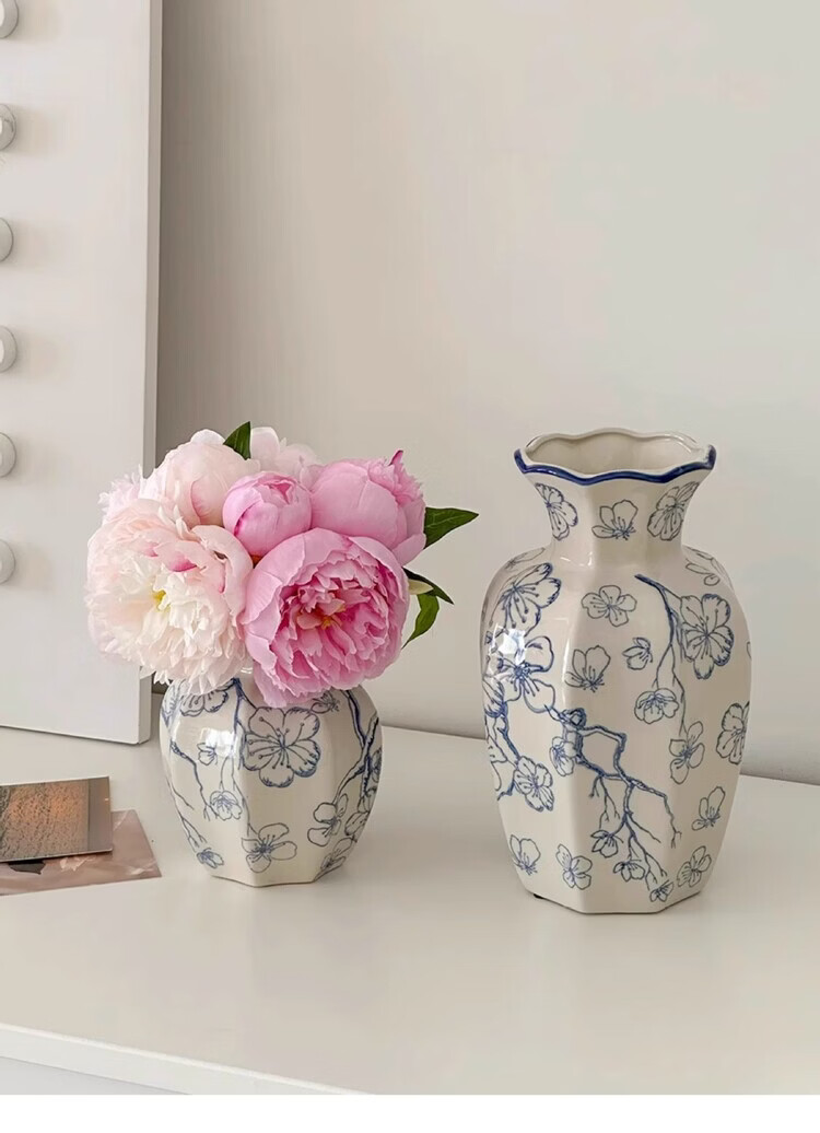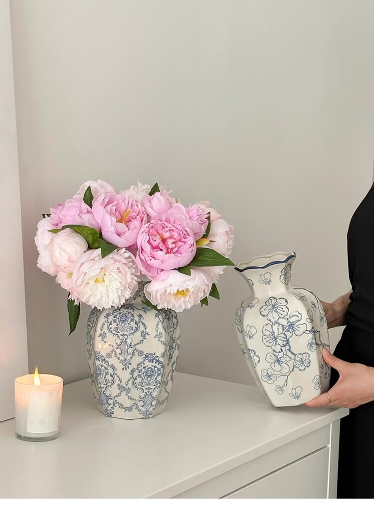 OYKTN创意青花瓷陶瓷花瓶侘寂风富贵竹艺术花瓶客厅摆件房间轻奢装饰品 釉知春-小号