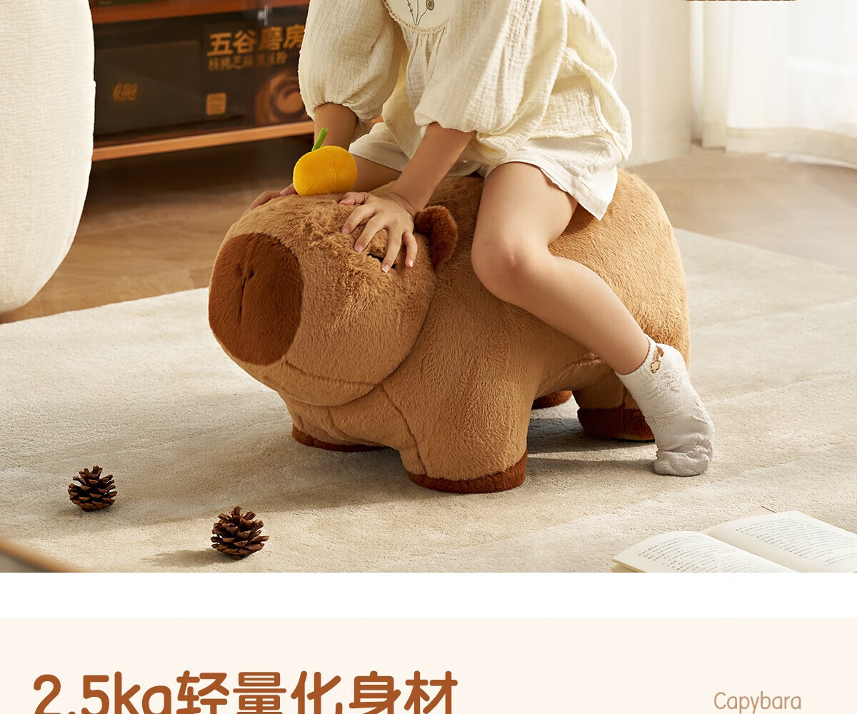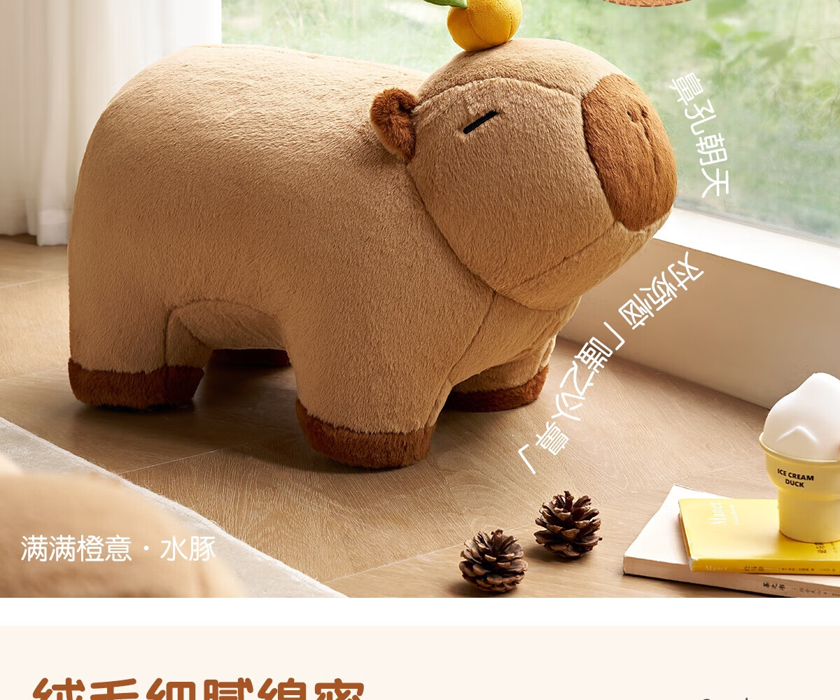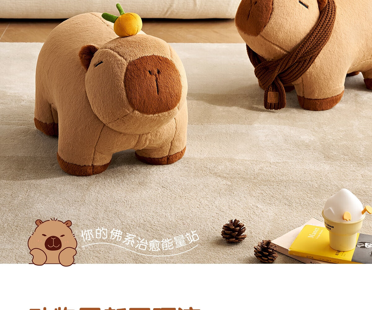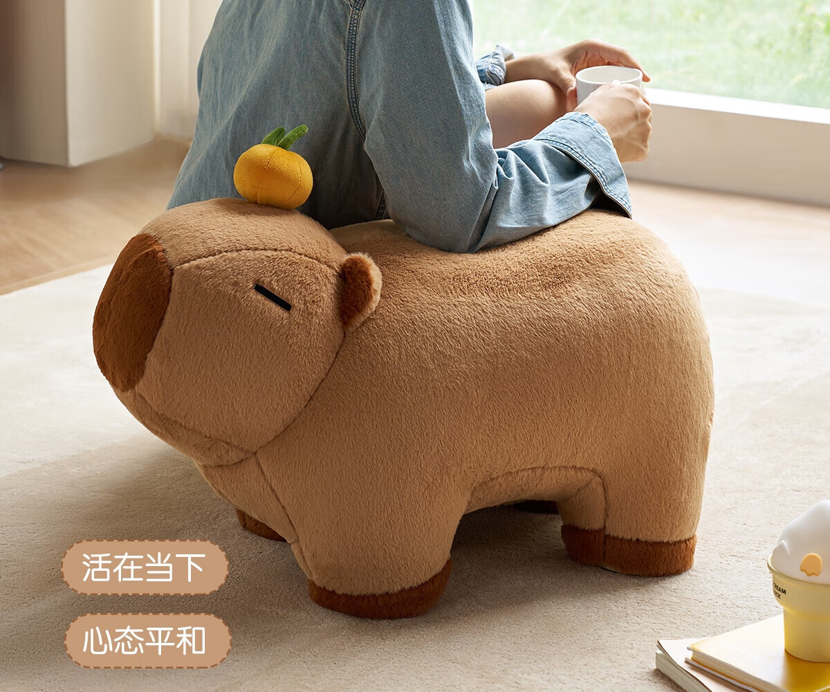 LINSY KIDS小凳子家用矮凳布艺脚踏客厅门口换鞋凳儿童玩具卡皮巴拉TB064 【慵懒棕+橘子】猫抓布脚踏