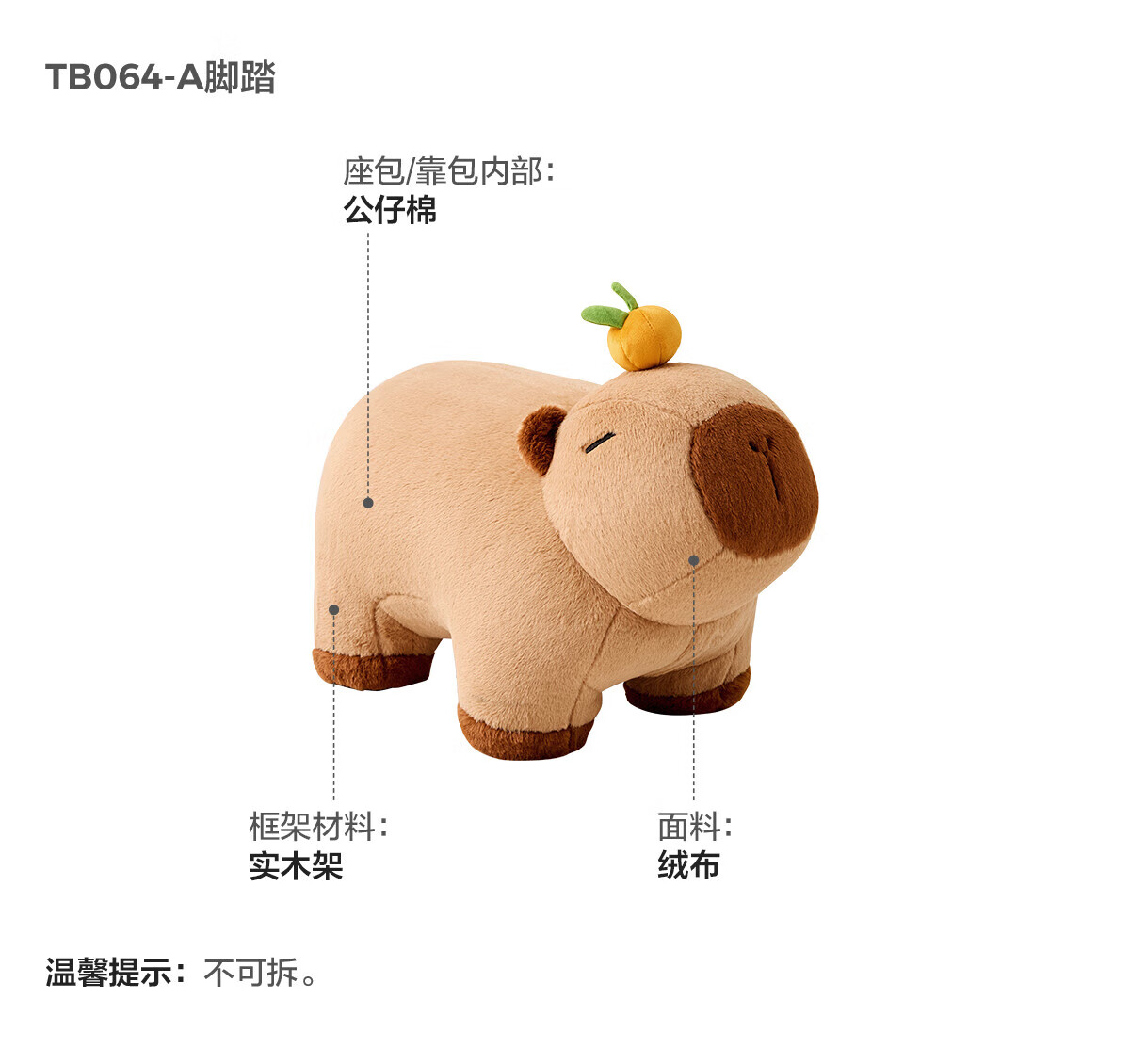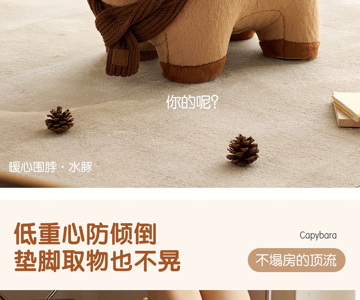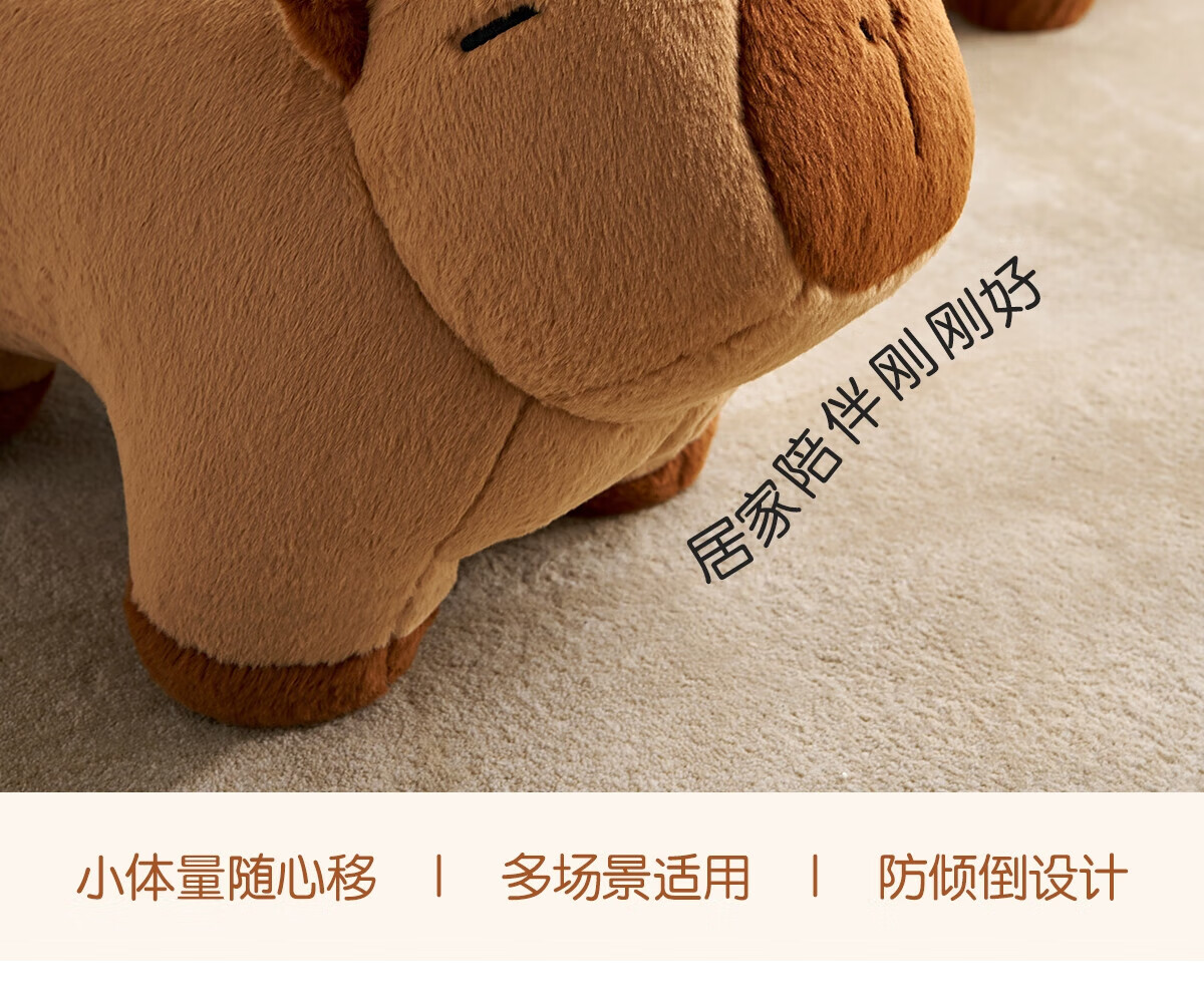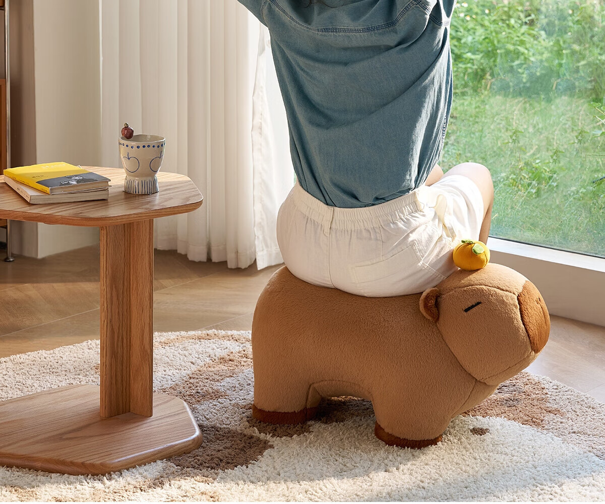 LINSY KIDS小凳子家用矮凳布艺脚踏客厅门口换鞋凳儿童玩具卡皮巴拉TB064 【慵懒棕+橘子】猫抓布脚踏