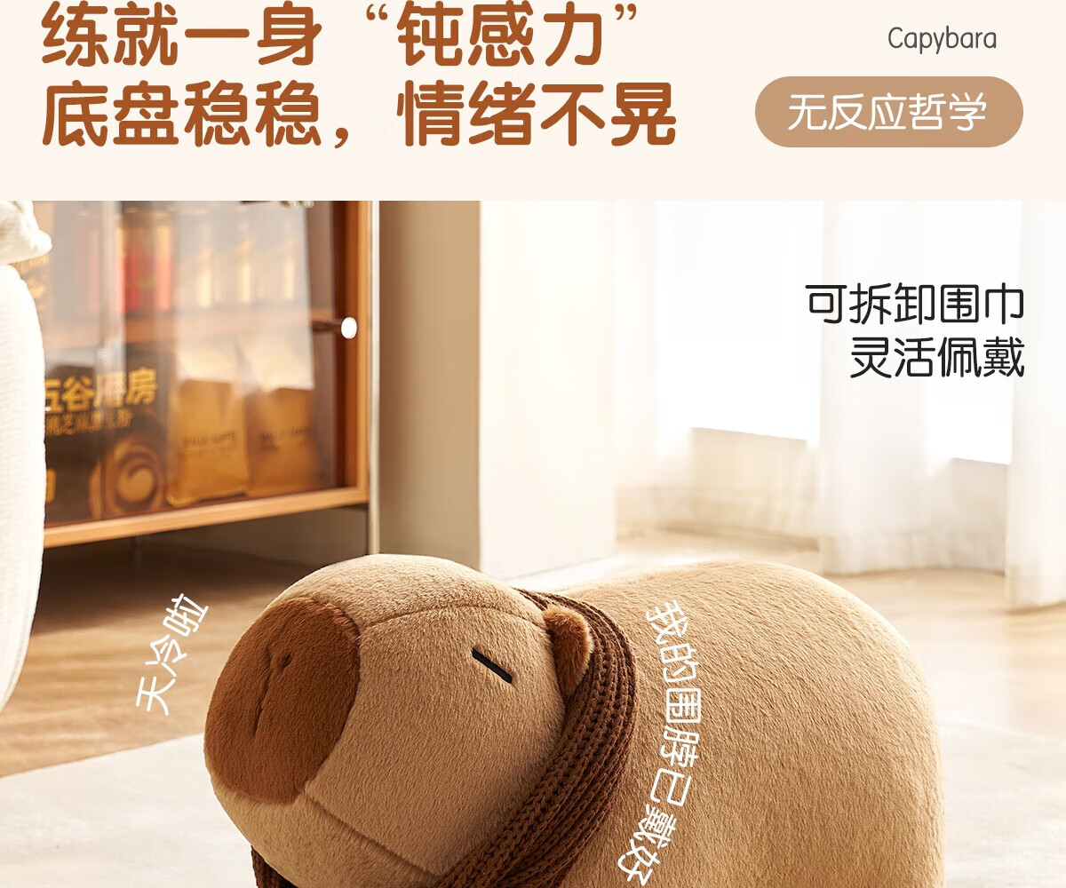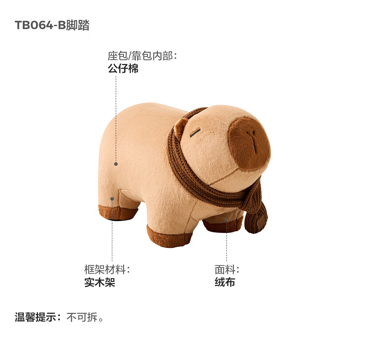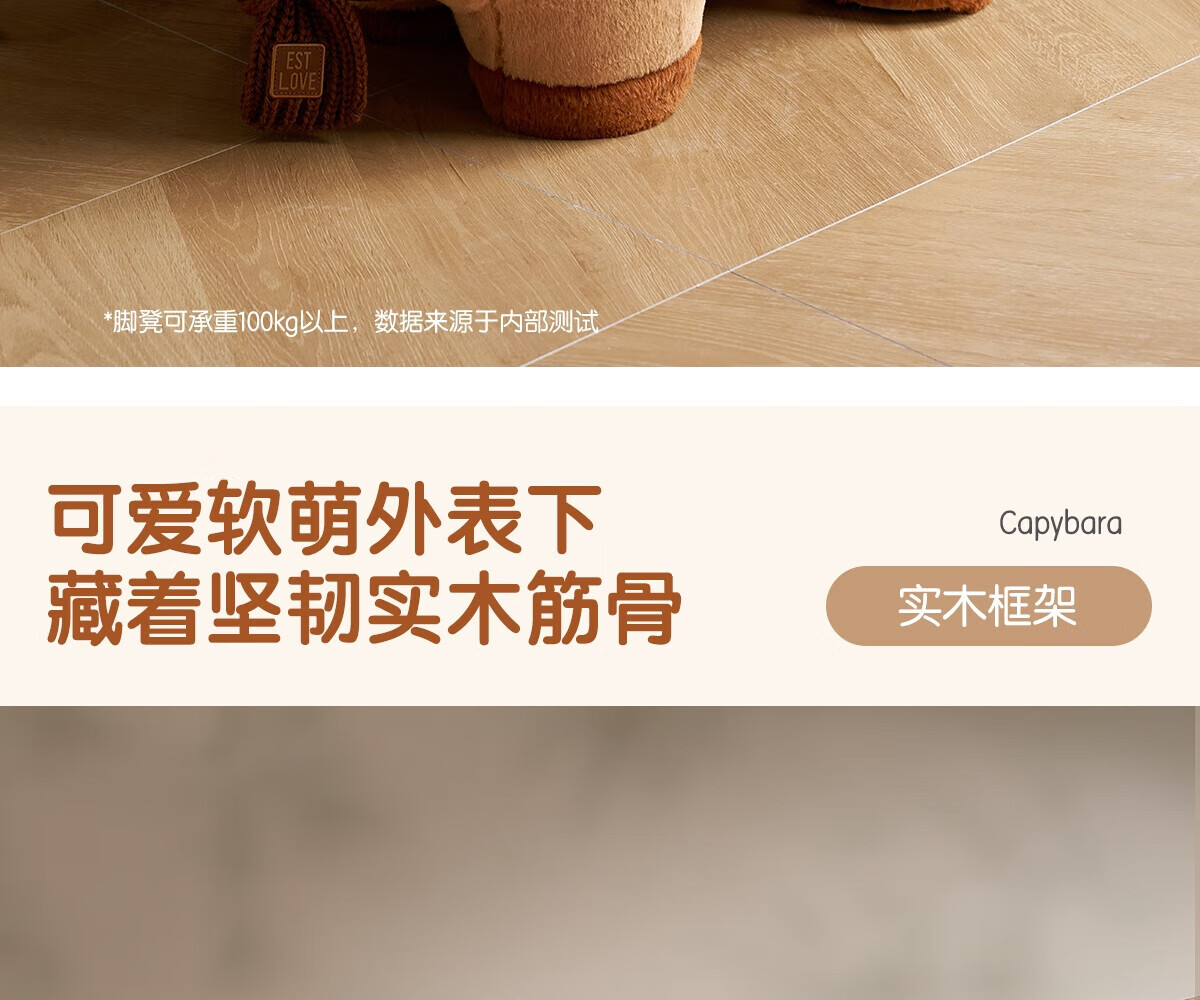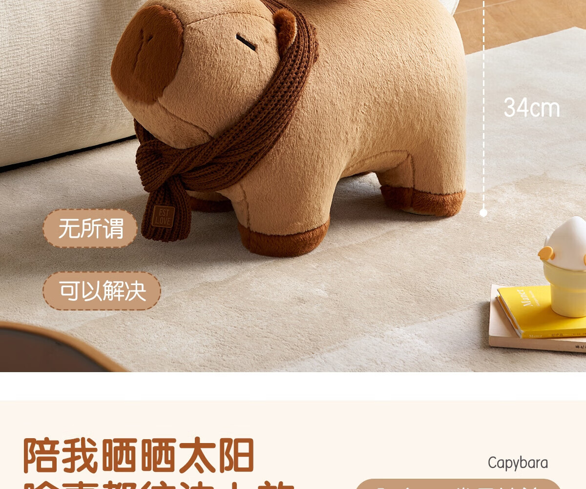 LINSY KIDS小凳子家用矮凳布艺脚踏客厅门口换鞋凳儿童玩具卡皮巴拉TB064 【慵懒棕+橘子】猫抓布脚踏