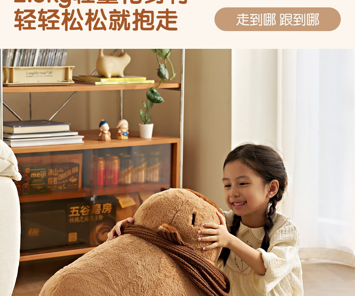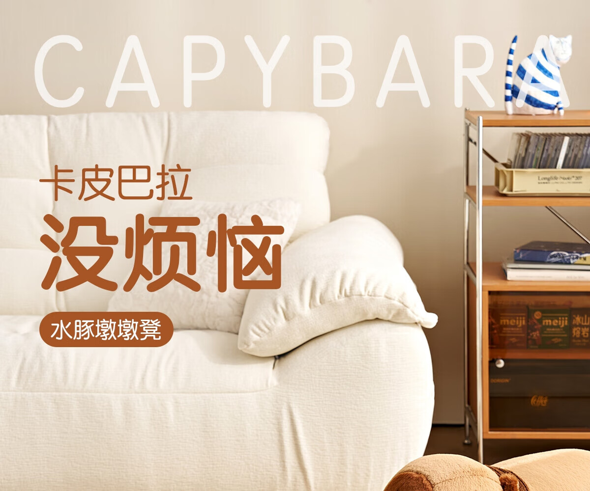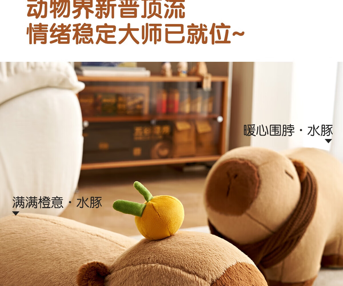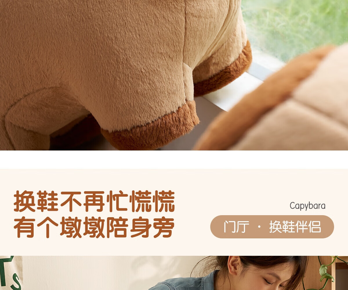 LINSY KIDS小凳子家用矮凳布艺脚踏客厅门口换鞋凳儿童玩具卡皮巴拉TB064 【慵懒棕+橘子】猫抓布脚踏