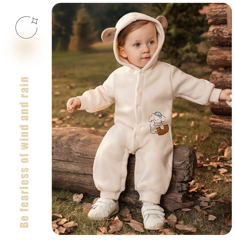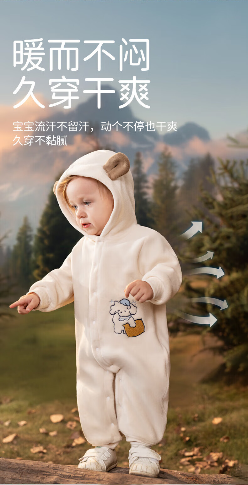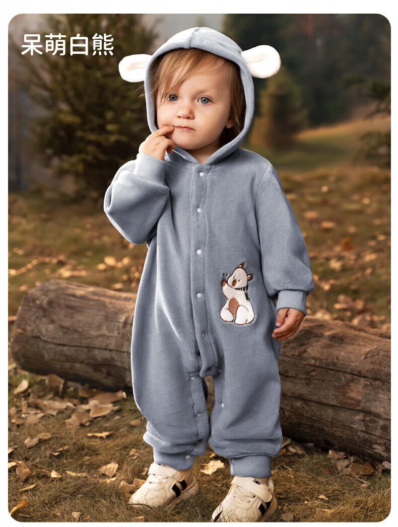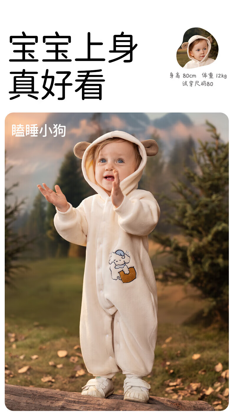 欧孕(OUYUN)宝宝秋装保暖加绒连体衣男女宝宝冬季外出服哈衣撸猫绒爬爬服 瞌睡小狗【软糯撸猫绒】 100cm
