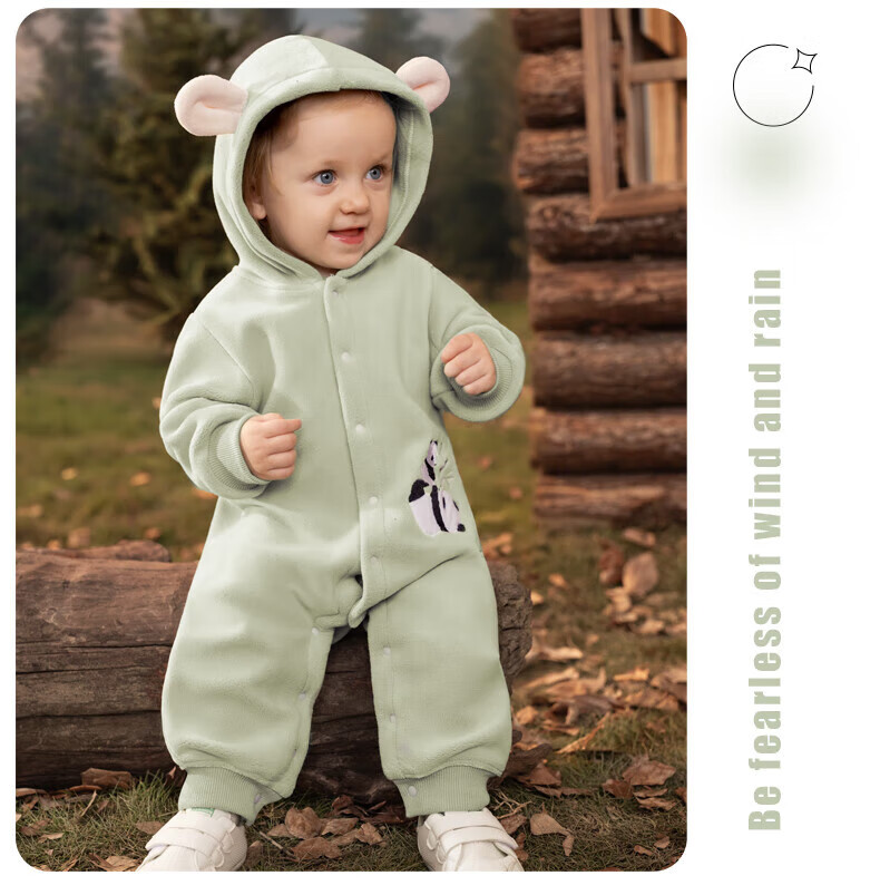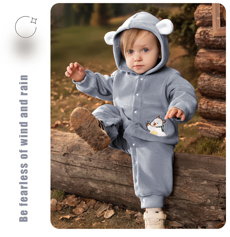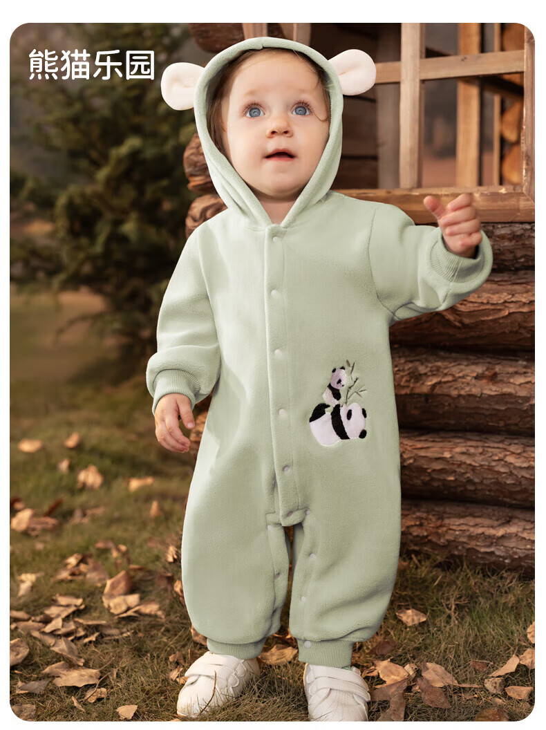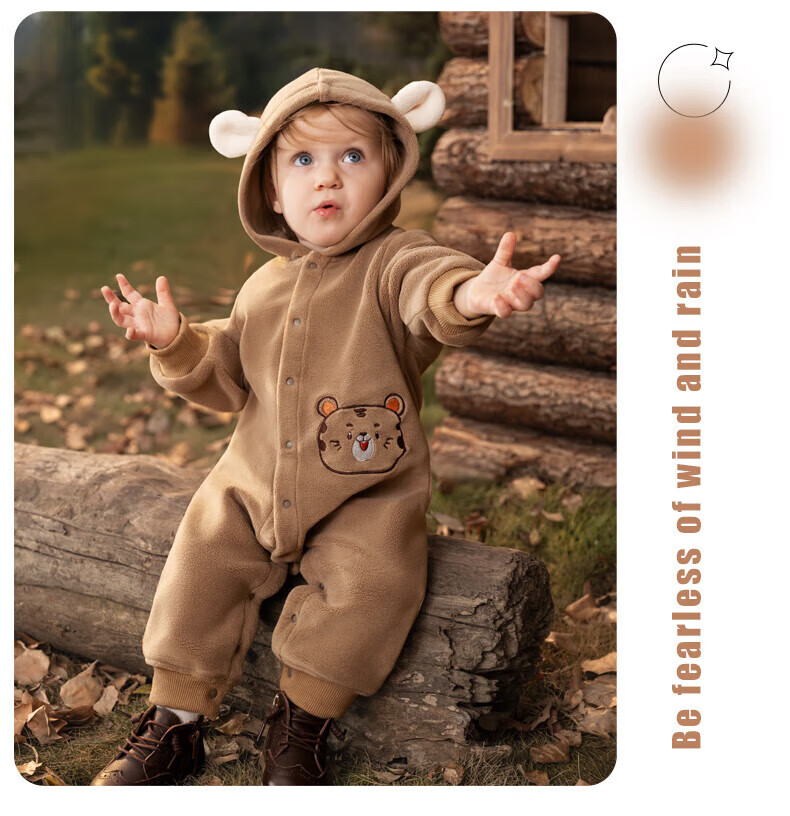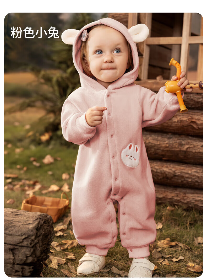 欧孕(OUYUN)宝宝秋装保暖加绒连体衣男女宝宝冬季外出服哈衣撸猫绒爬爬服 瞌睡小狗【软糯撸猫绒】 100cm