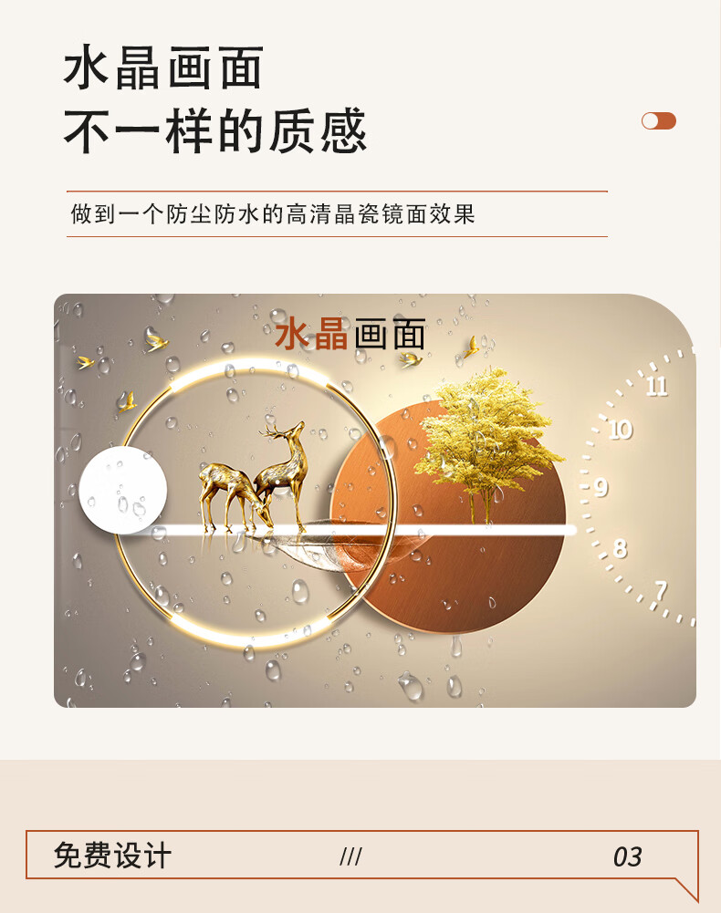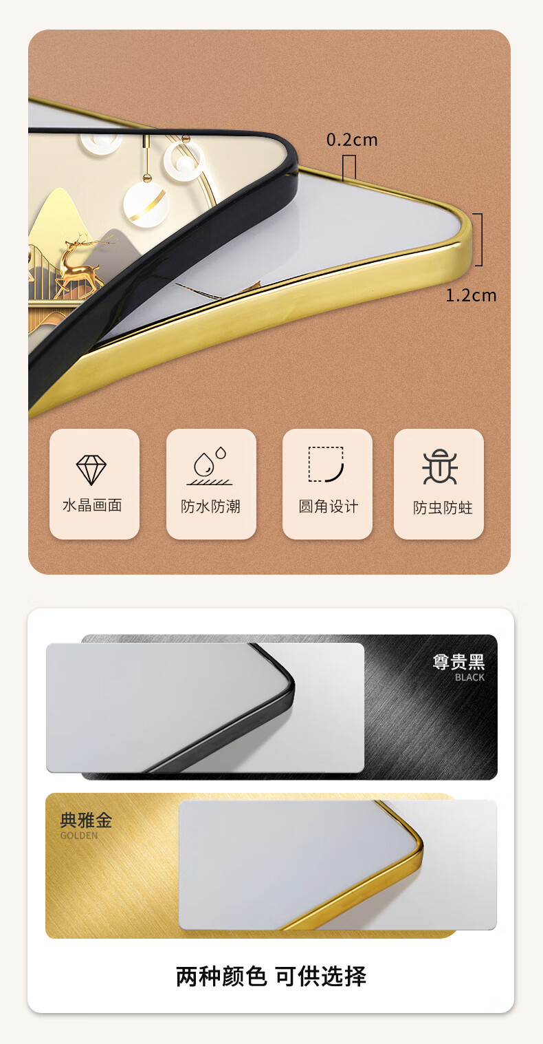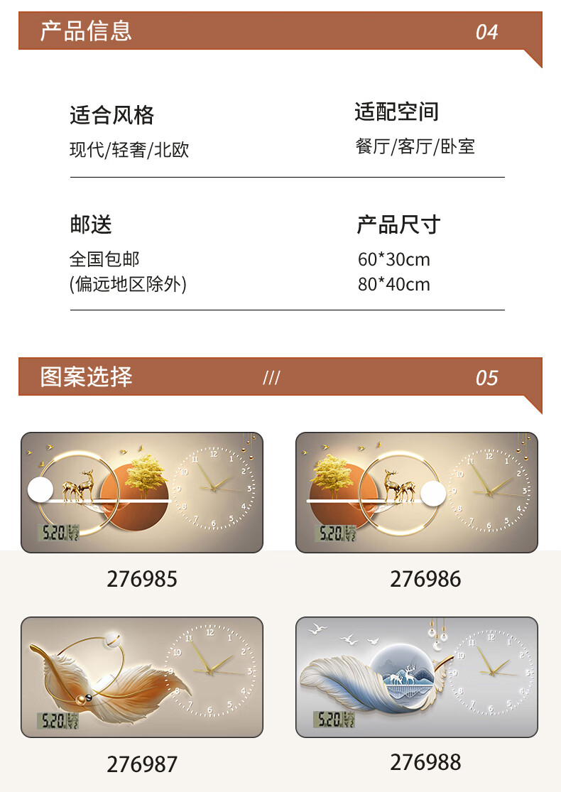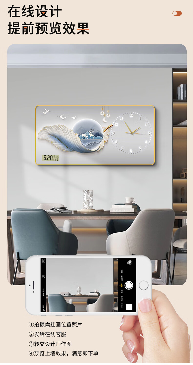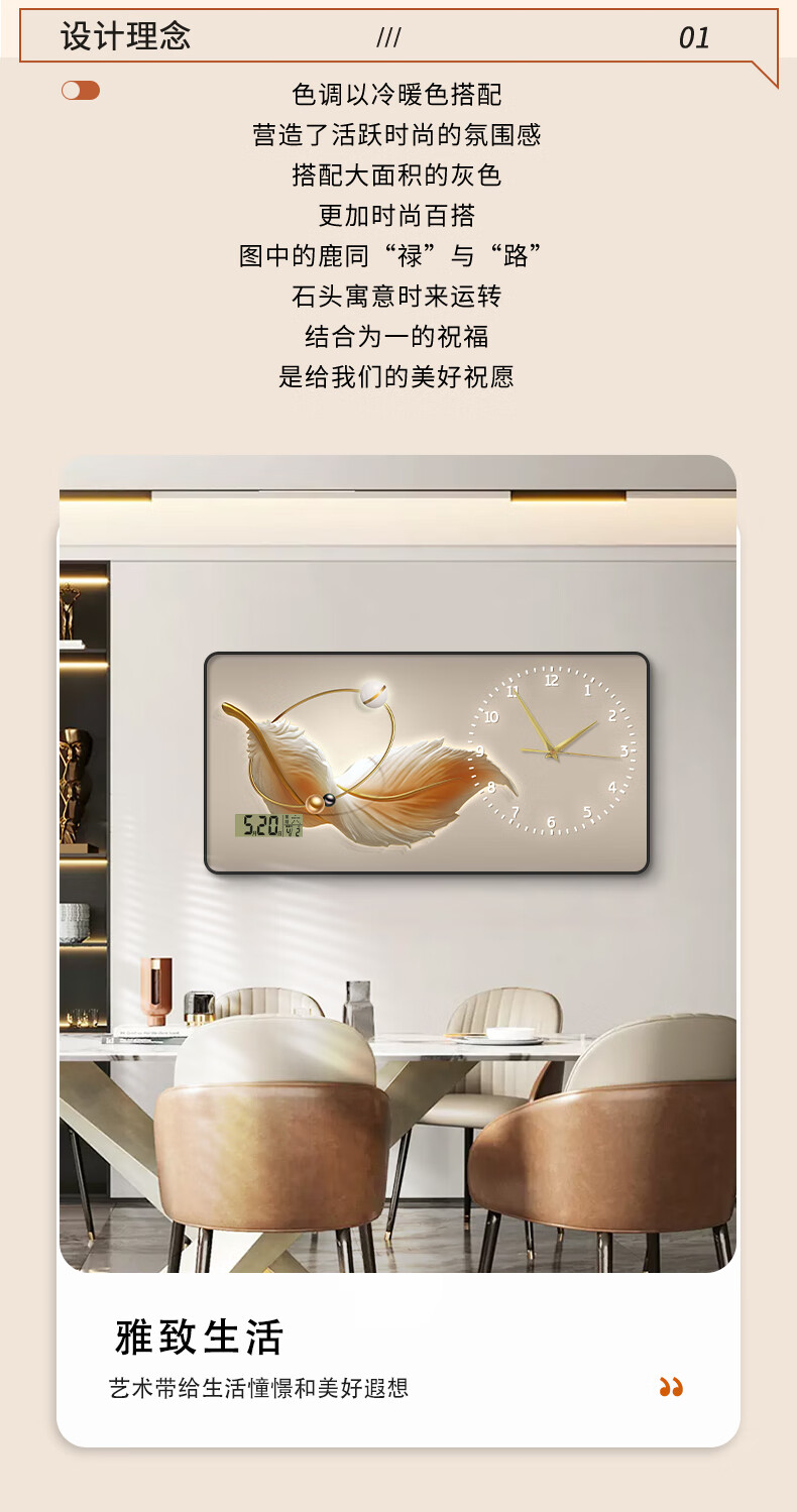 立始2025新款轻奢挂钟感挂表餐厅装饰画钟表挂墙饭厅静音创意时钟 福禄安康小号 日历+温度 黑框 水晶画面+电子屏