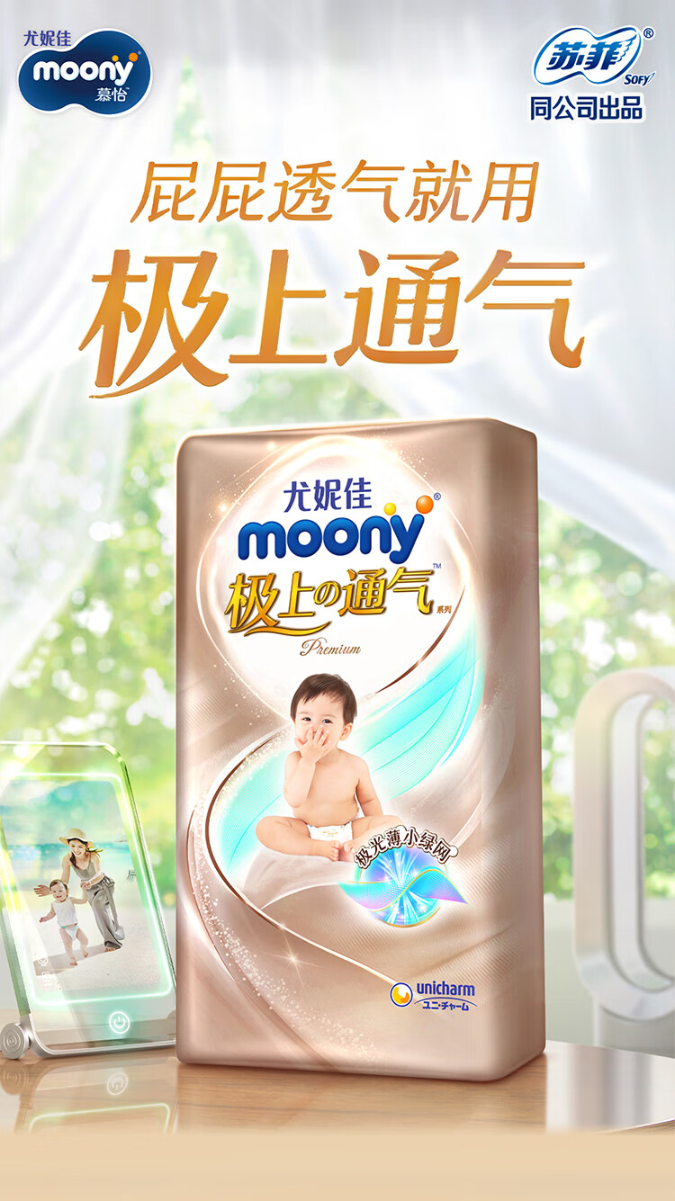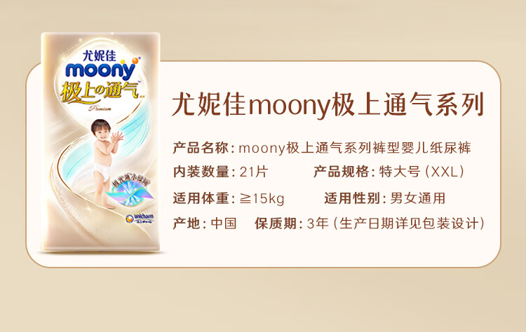 MOONY尤妮佳极上系列极光薄拉拉裤XXL21片(15kg以上)中包装散热尿不湿