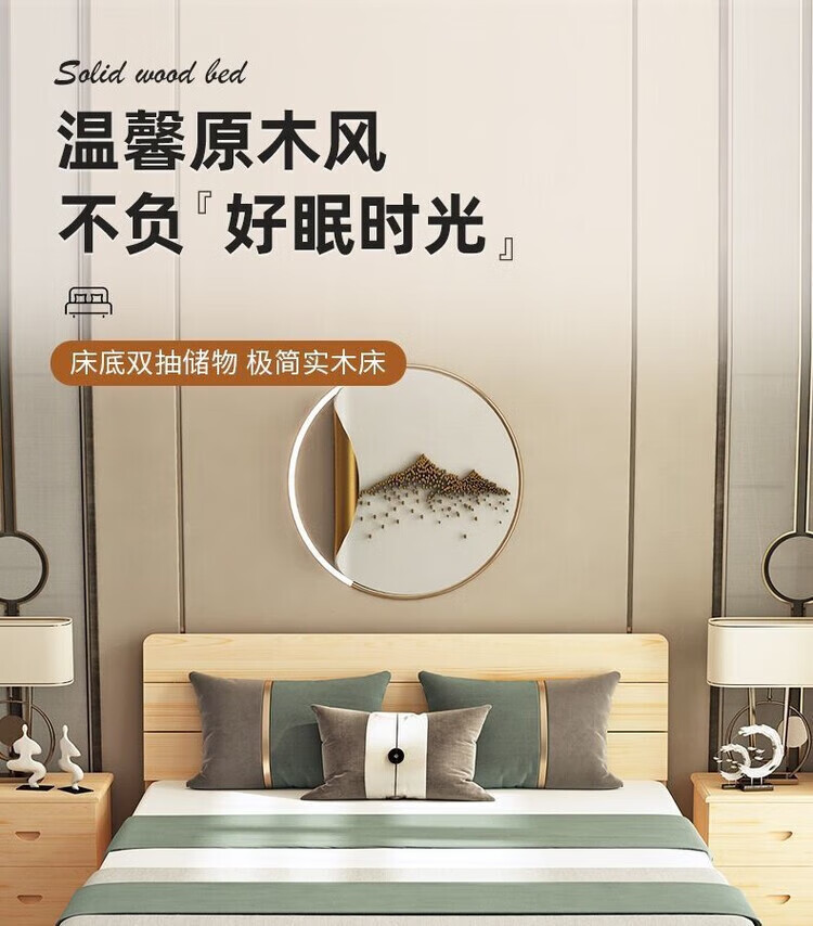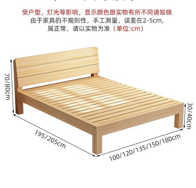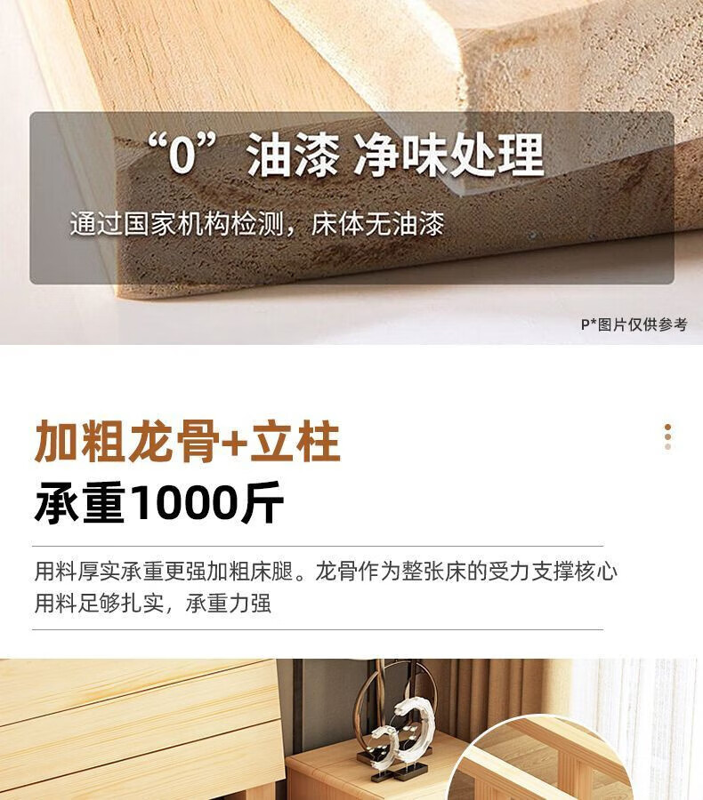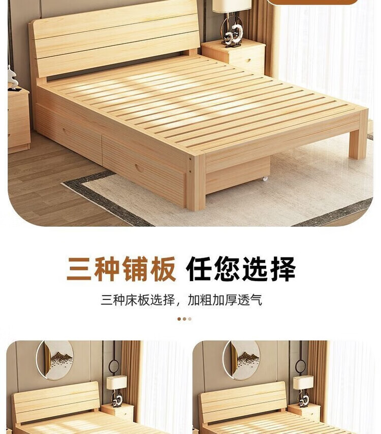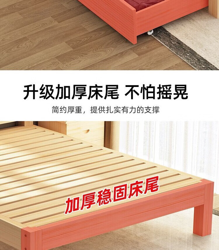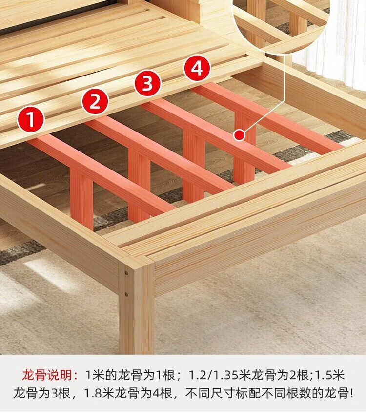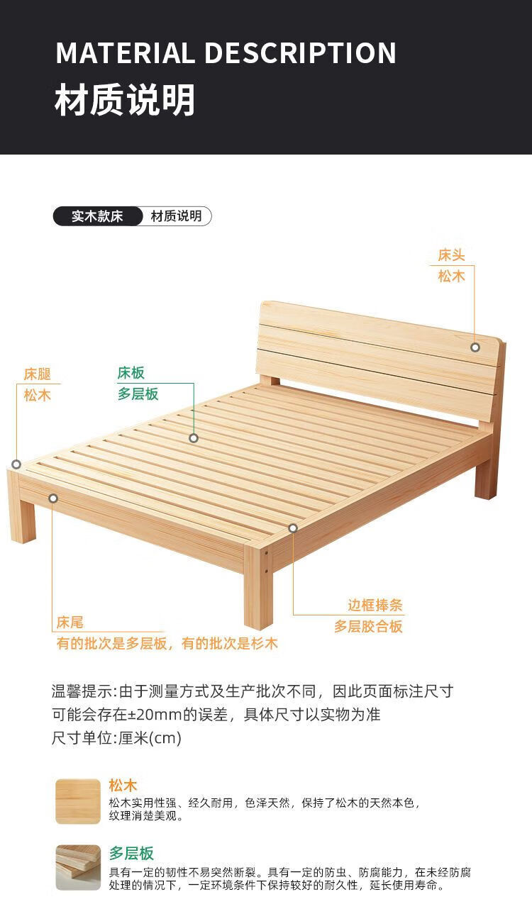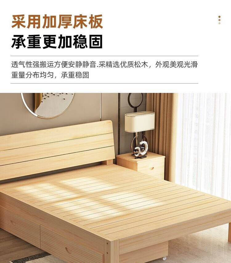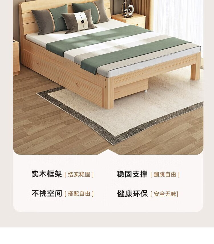 倘然之家实木床现代简约1.5米家用双人床成人主卧木床1.8米简易床1m单人床 【全实木加厚】实木床30高+入户 1000mm*1900mm 框架结构