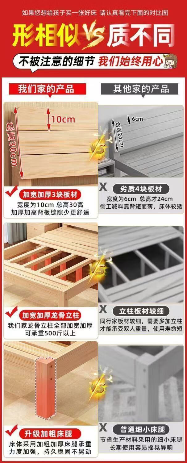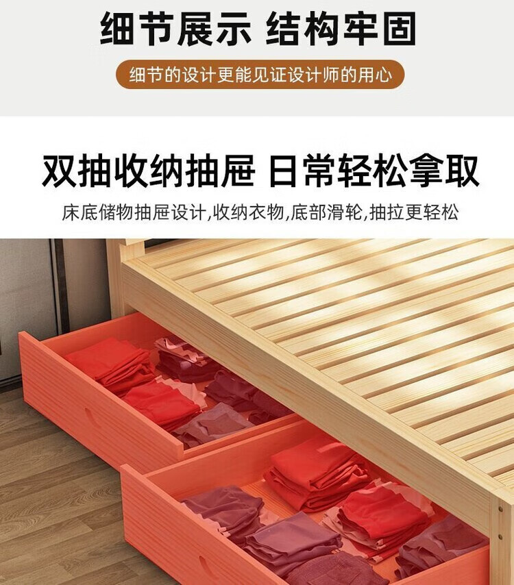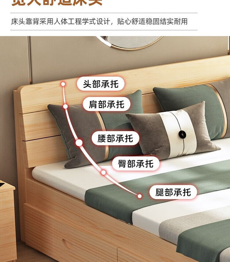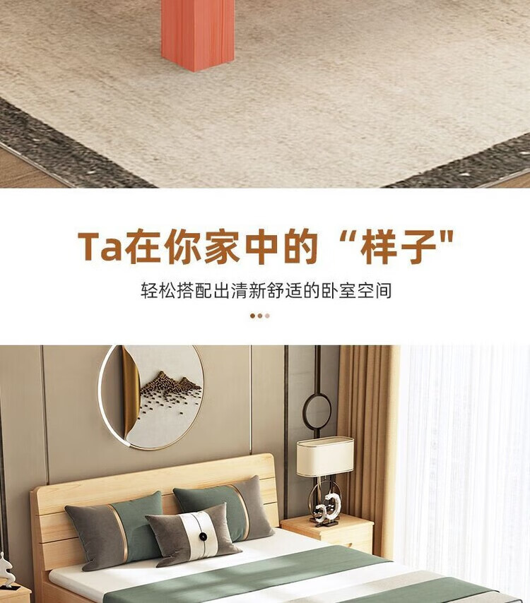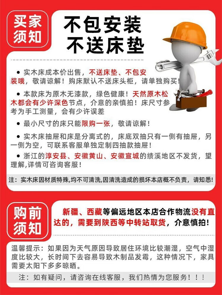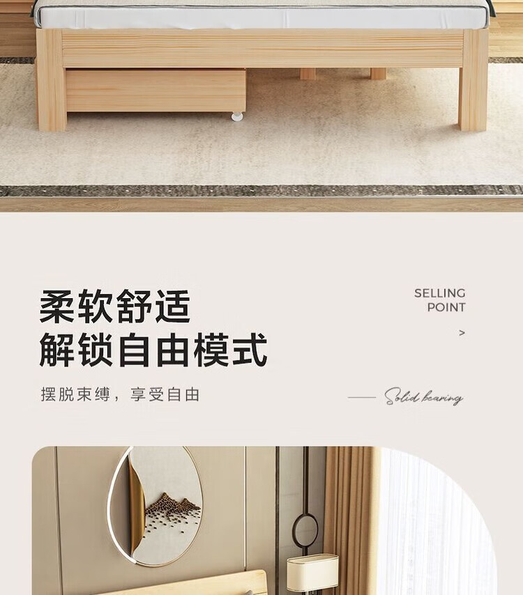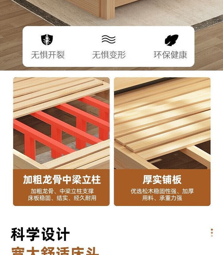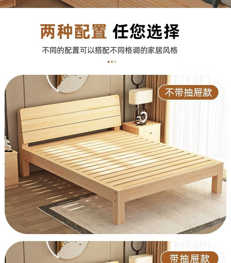 倘然之家实木床现代简约1.5米家用双人床成人主卧木床1.8米简易床1m单人床 【全实木加厚】实木床30高+入户 1000mm*1900mm 框架结构