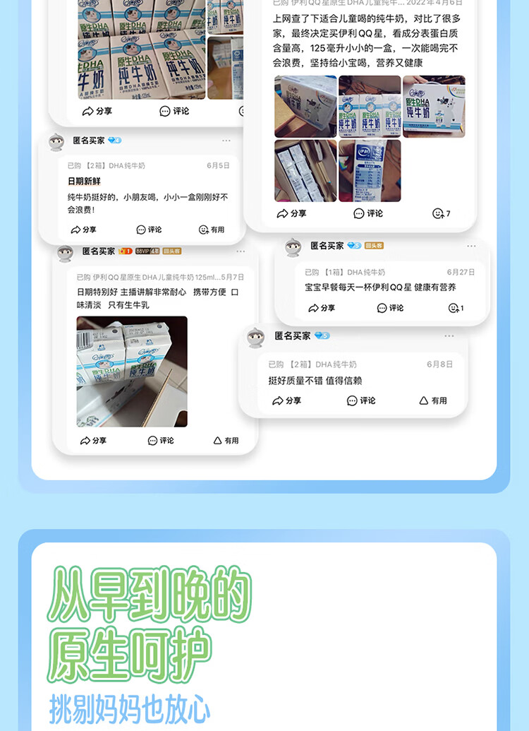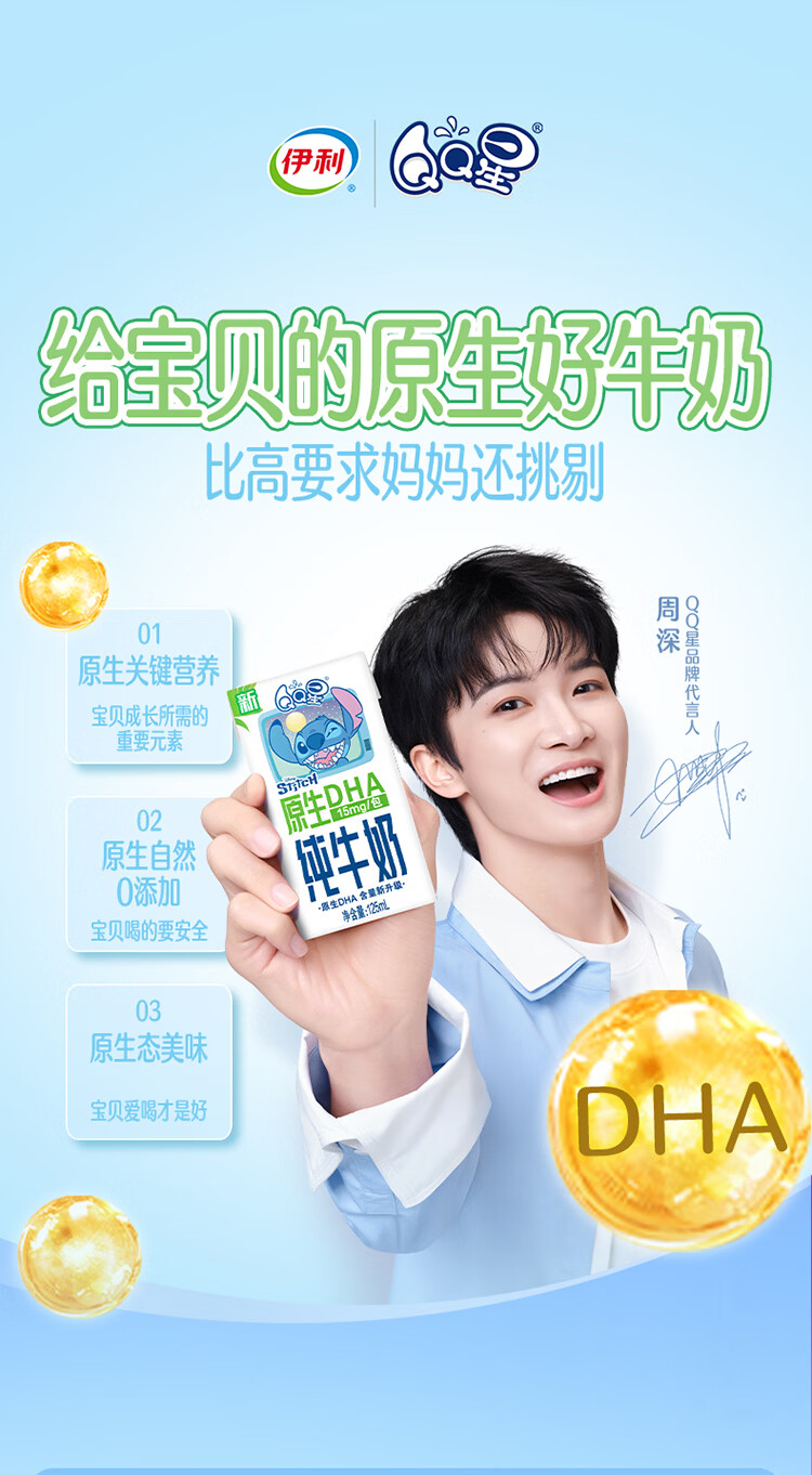 QQ星伊利原生DHA儿童纯牛奶125ml*16盒 年货礼盒【周深同款QQ星】
