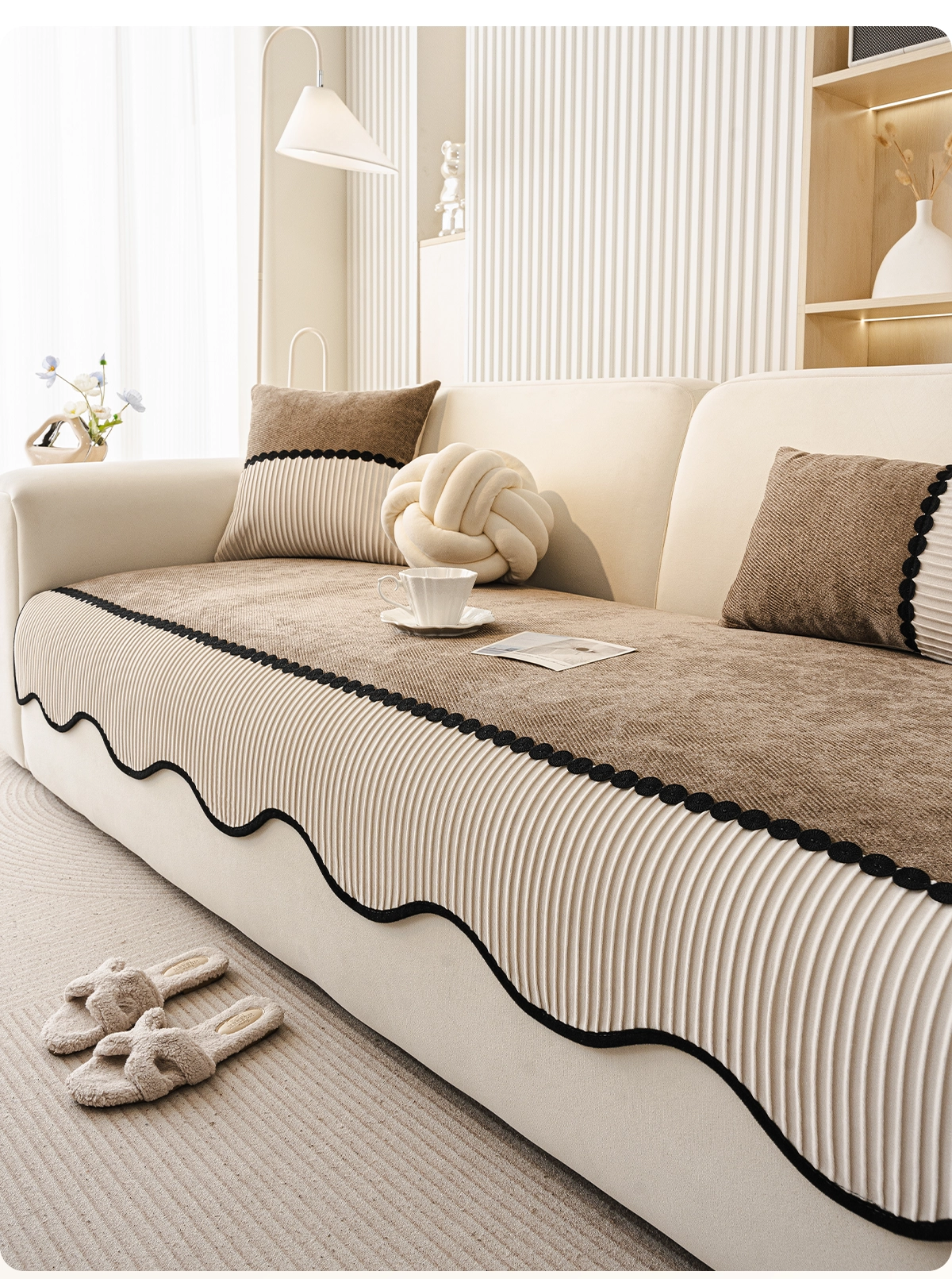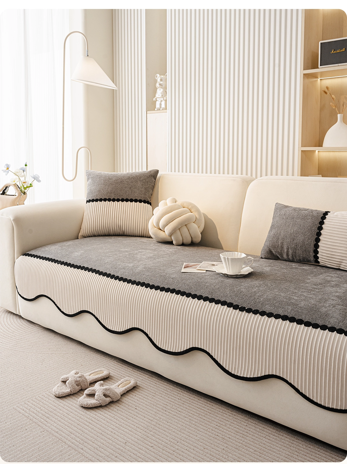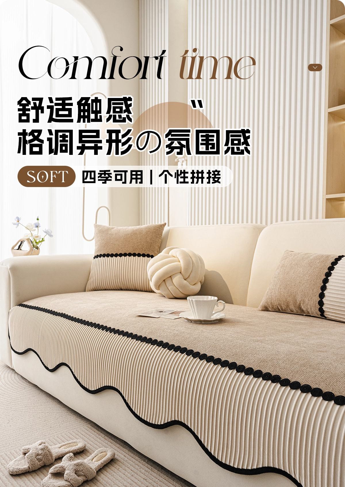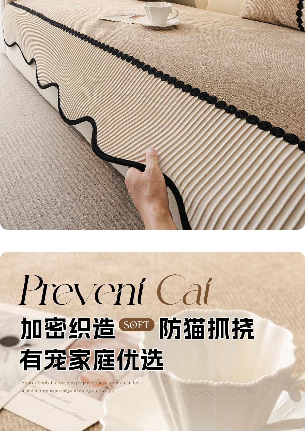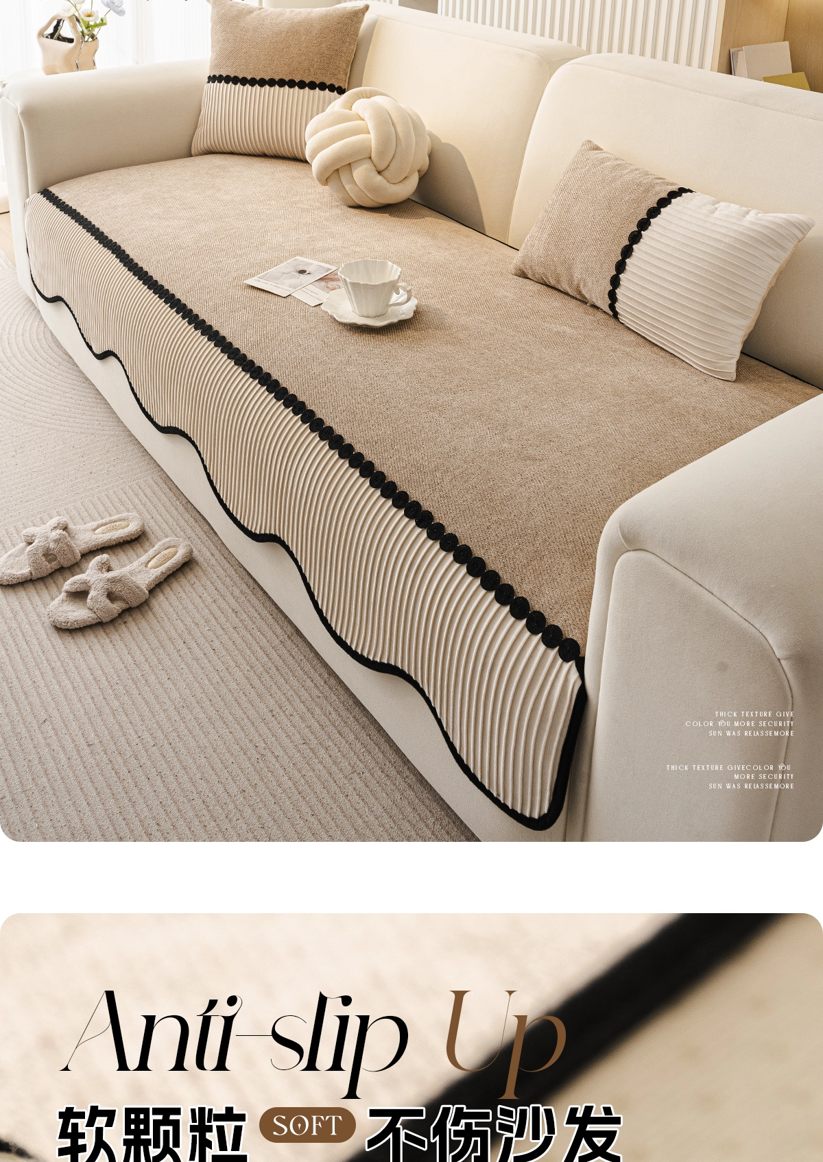 无印良品沙发垫四季通用防猫抓沙发座垫防滑皮沙发专用垫异形直排沙发坐垫 瑞泽-卡其【新升级雪尼尔亲肤材质轻奢异形高级感】 90X120