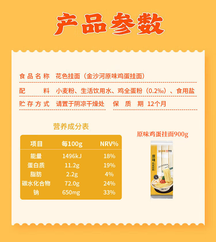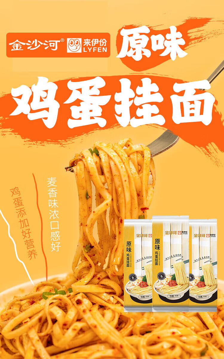 金沙河来伊份 挂面 面条 原味鸡蛋挂面 龙须面 清汤面 900g*3袋