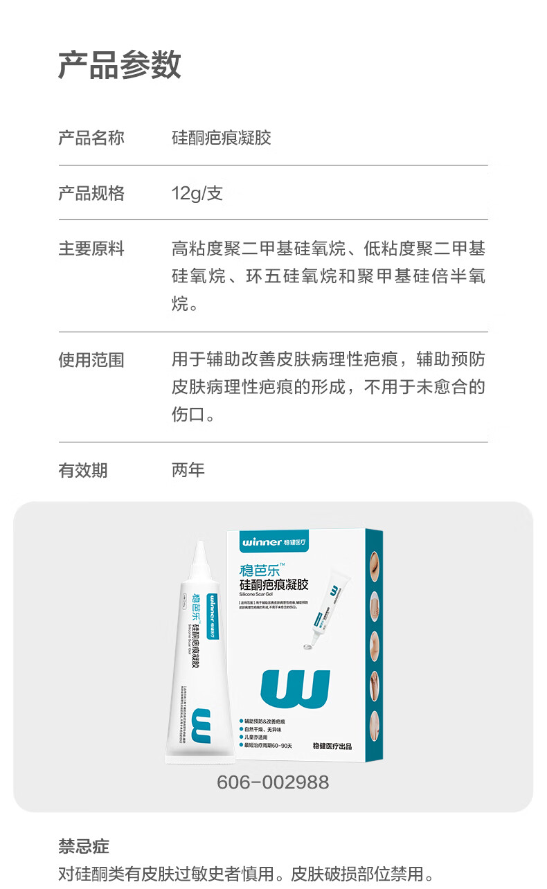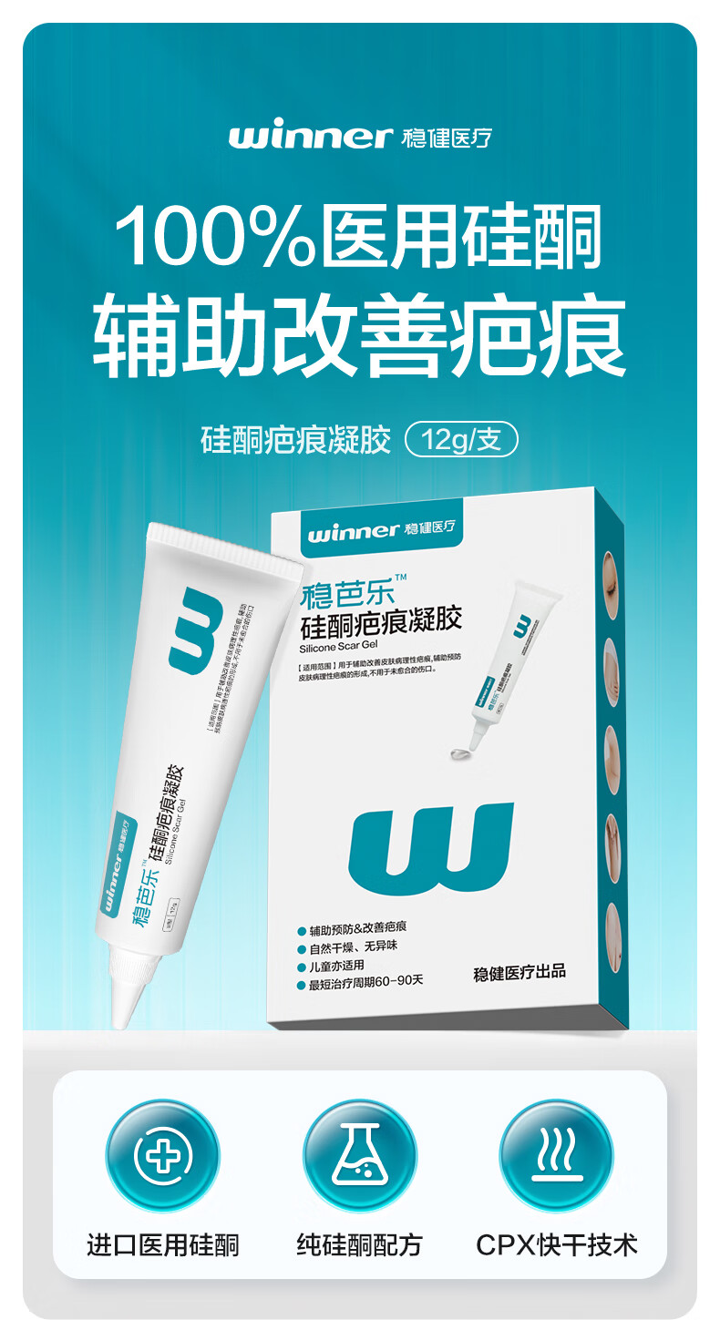 稳健硅酮疤痕凝胶Ⅱ型12g/支医美双眼皮激光术后辅助修复烧烫伤疤痕膏